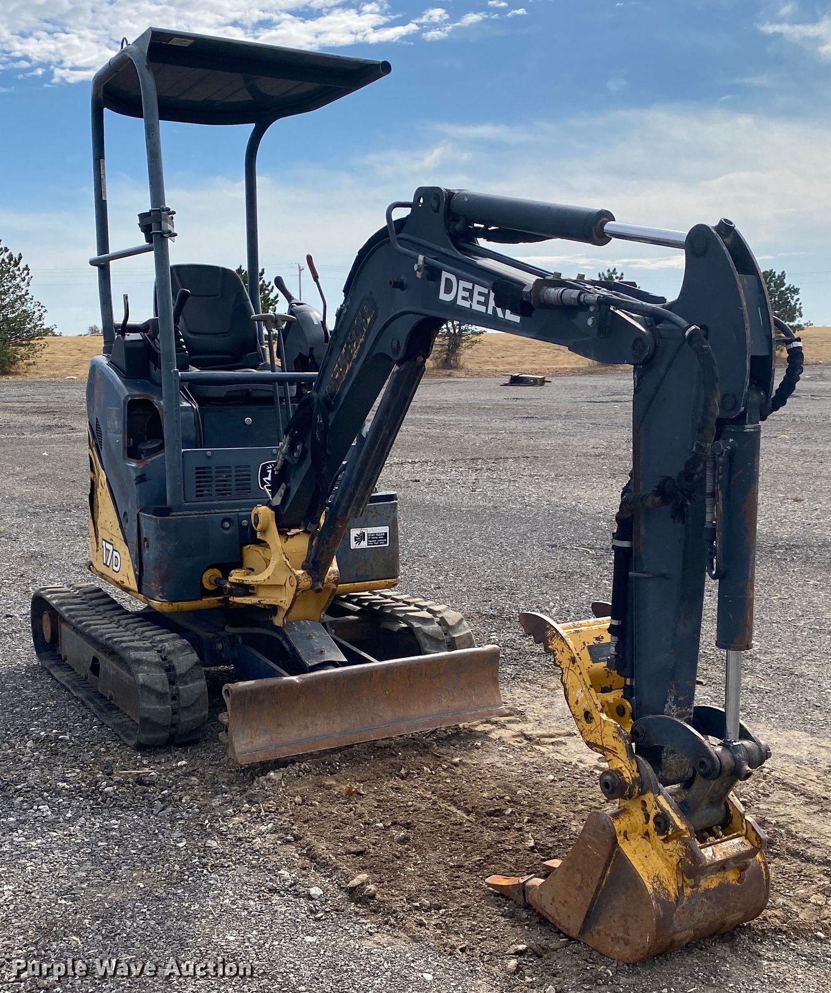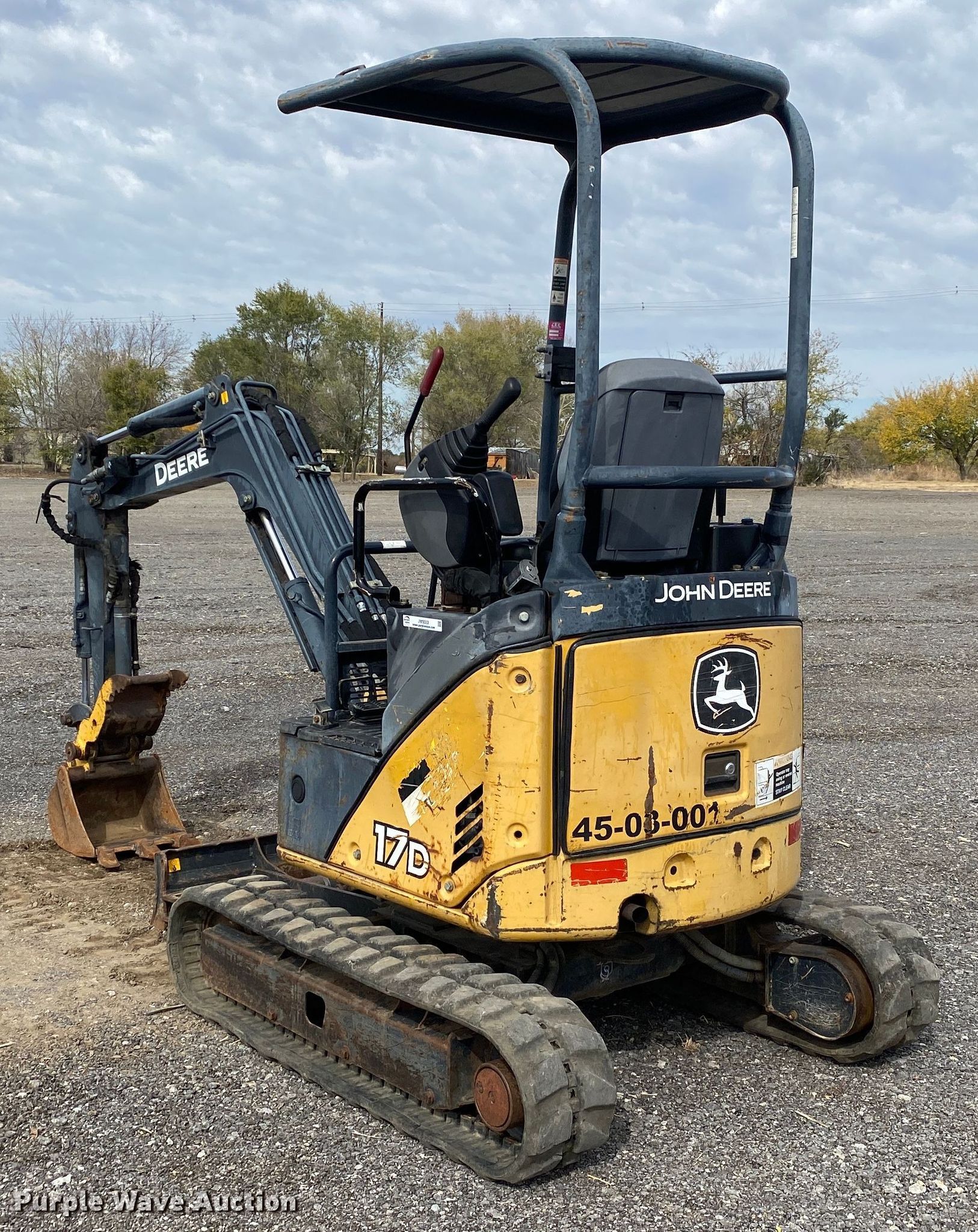 Purple Wave is selling a used Mini Excavator in Oklahoma. This item is a 2008 John Deere 17D mini excavator with the following: Hours: 2,254 on meter, Serial: FF017DX220352