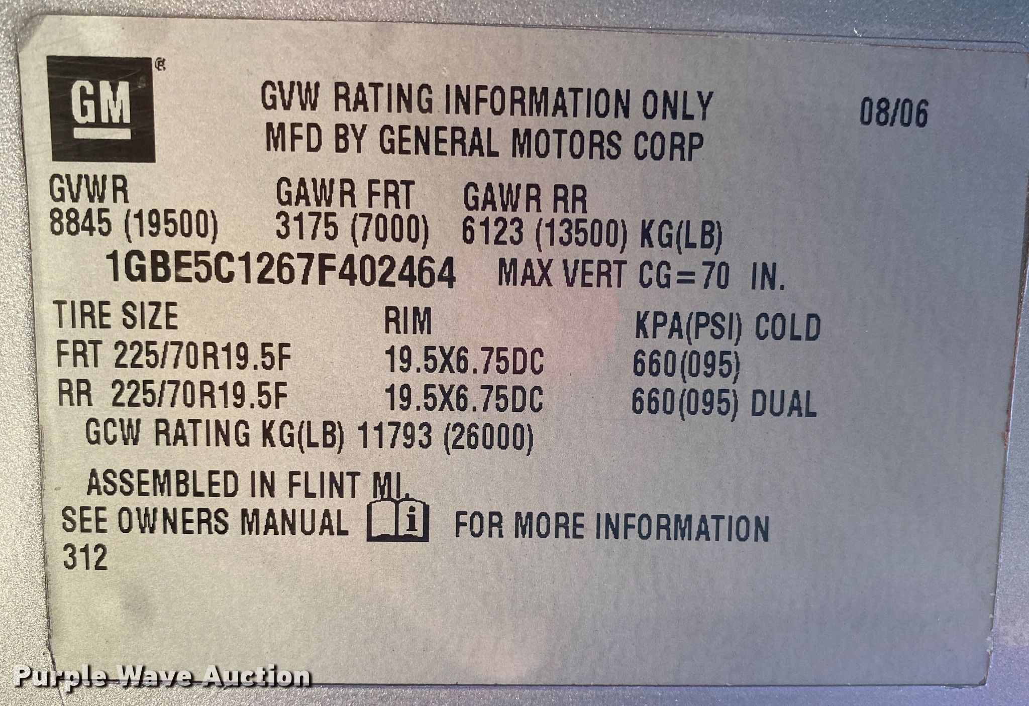 - VIN: 1GBE5C1267F402464
