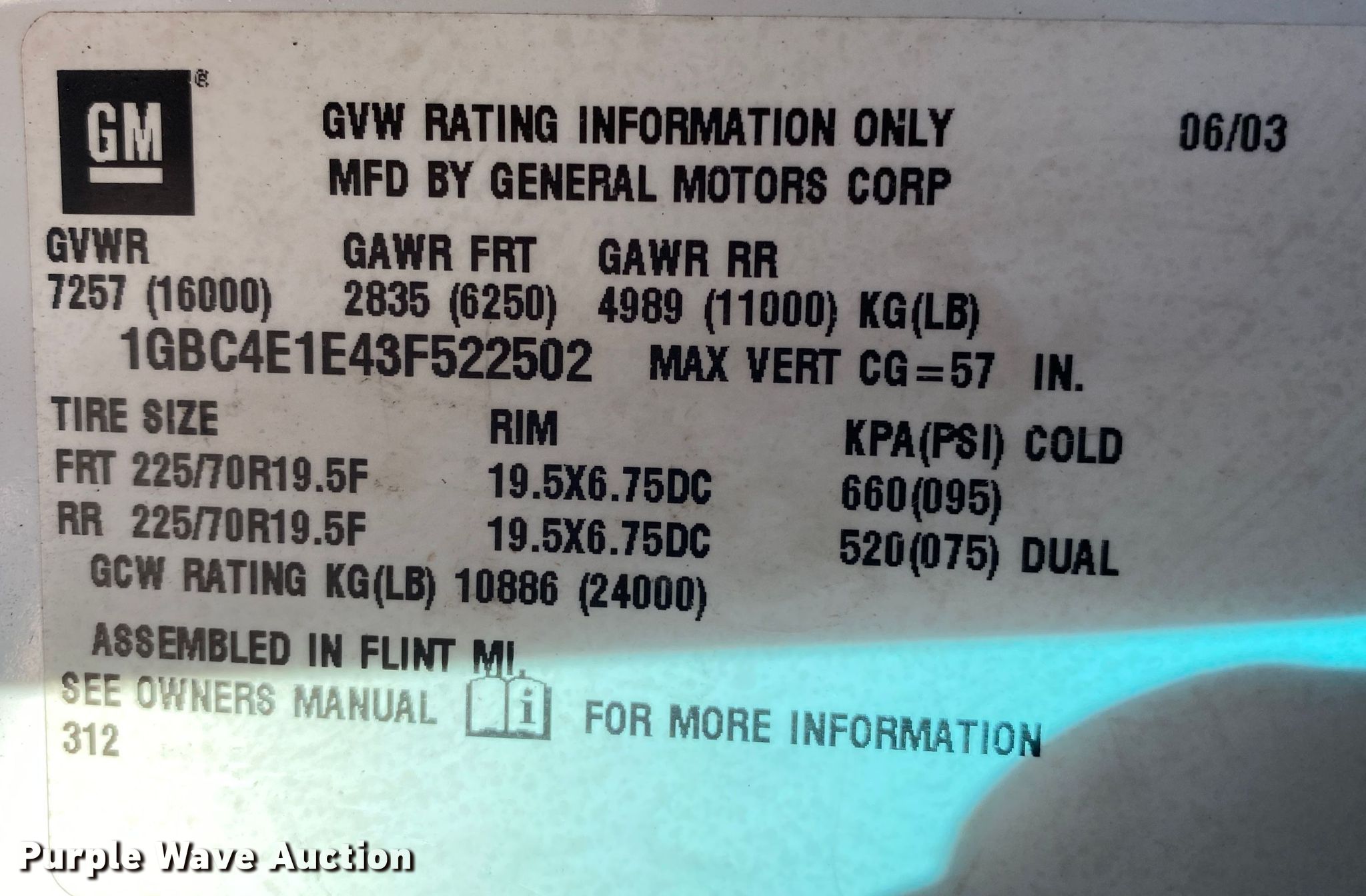 - VIN: 1GBC4E1E43F522502