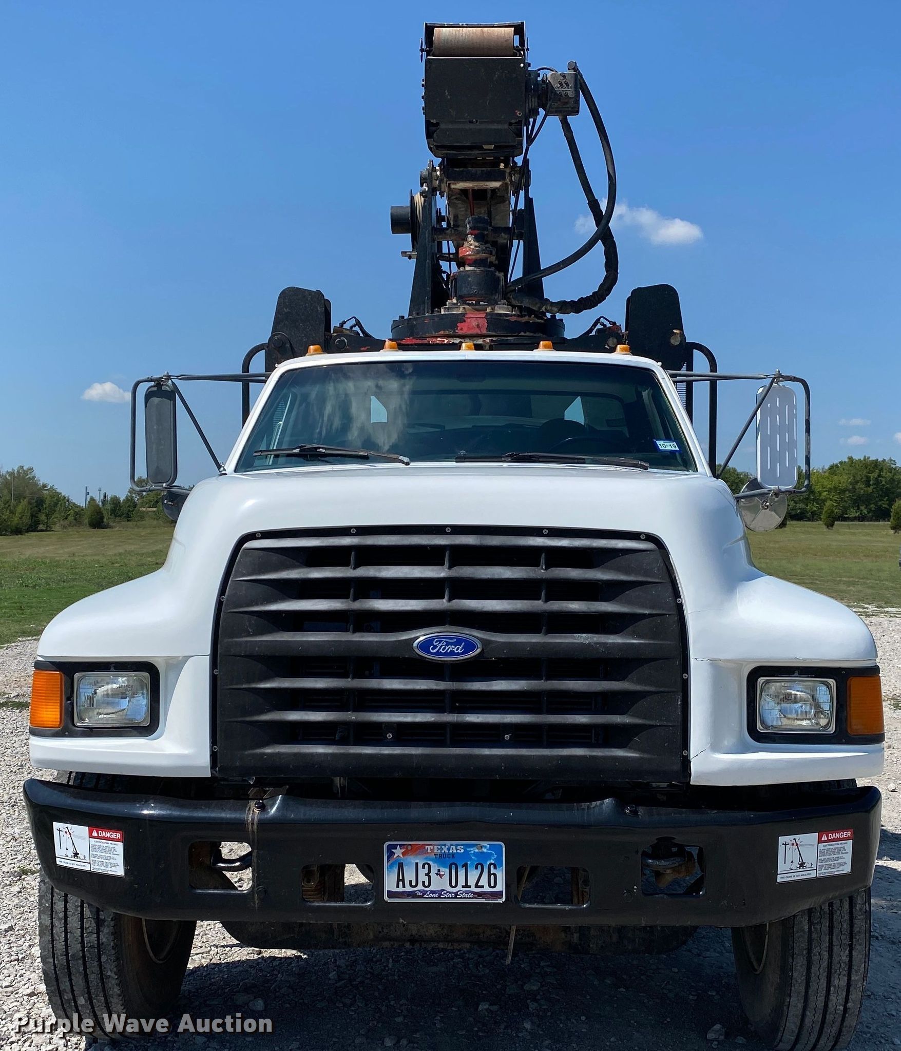 This 1997 Ford F800 crane truck will sell to the highest bidder regardless of price.