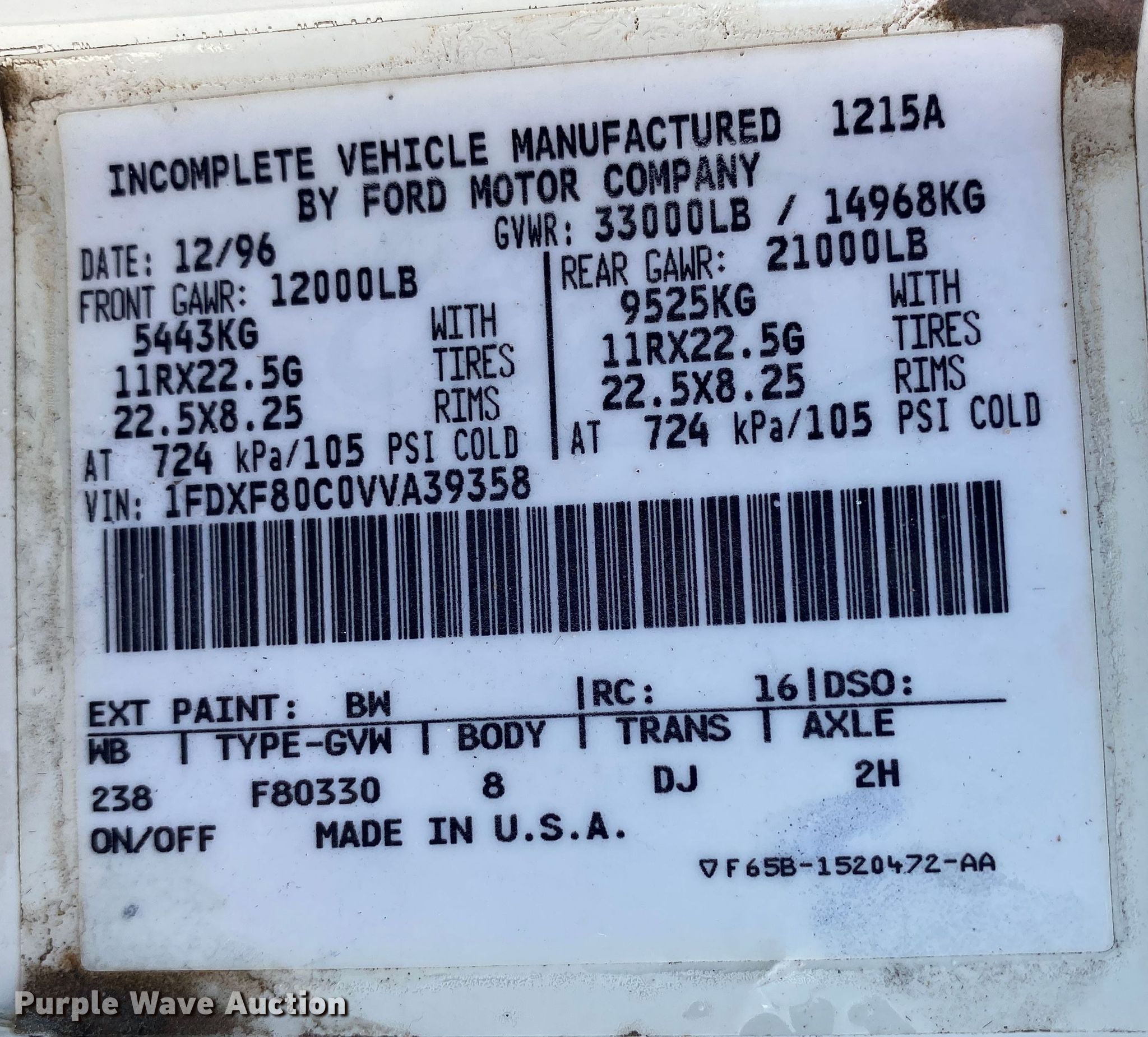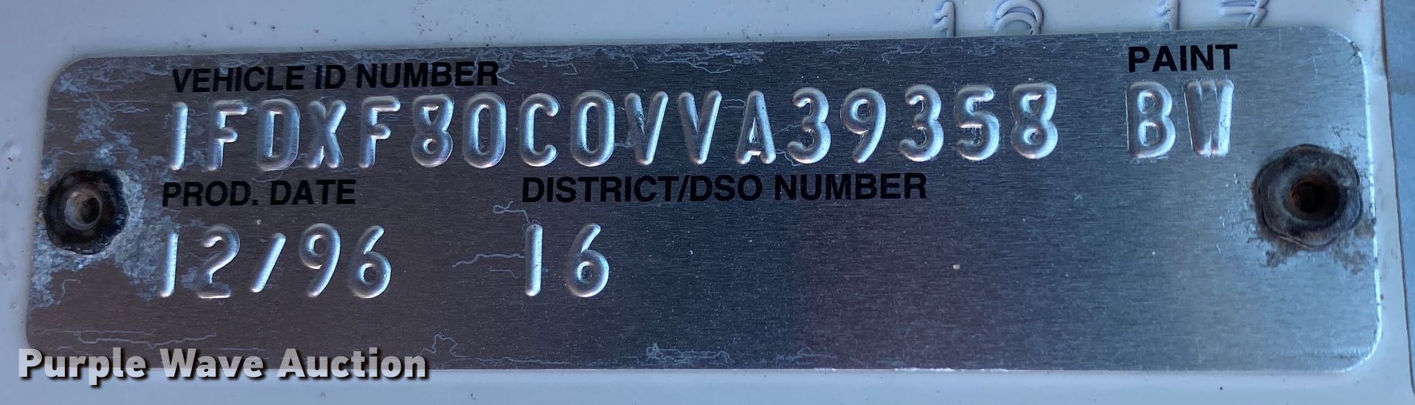 Purple Wave is selling a used Crane Truck in Oklahoma. This item is a 1997 Ford F800 crane truck with the following: Miles: 90,120 on odometer, VIN: 1FDXF80C0VVA39358