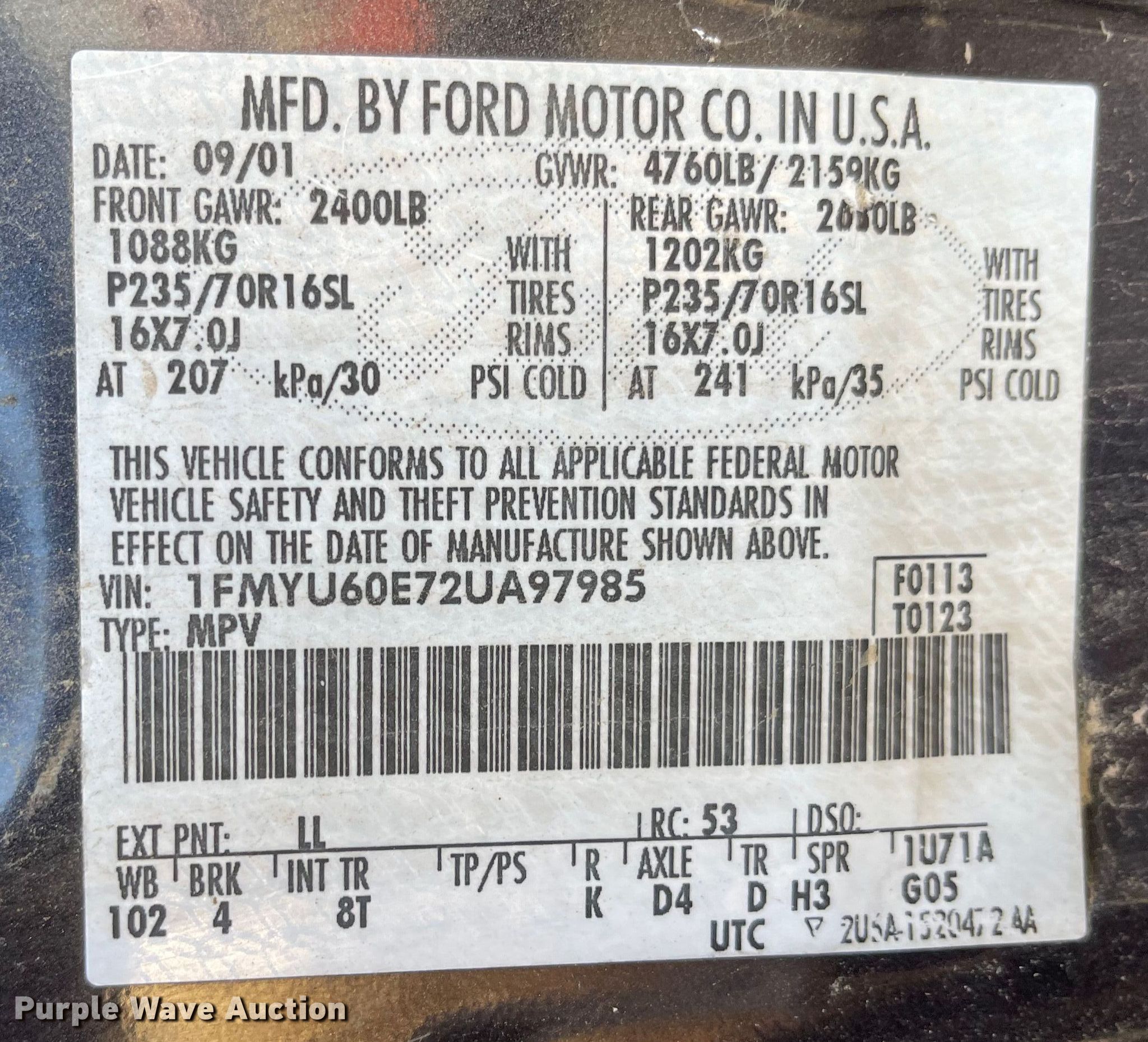 - VIN: 1FMYU60E72UA97985