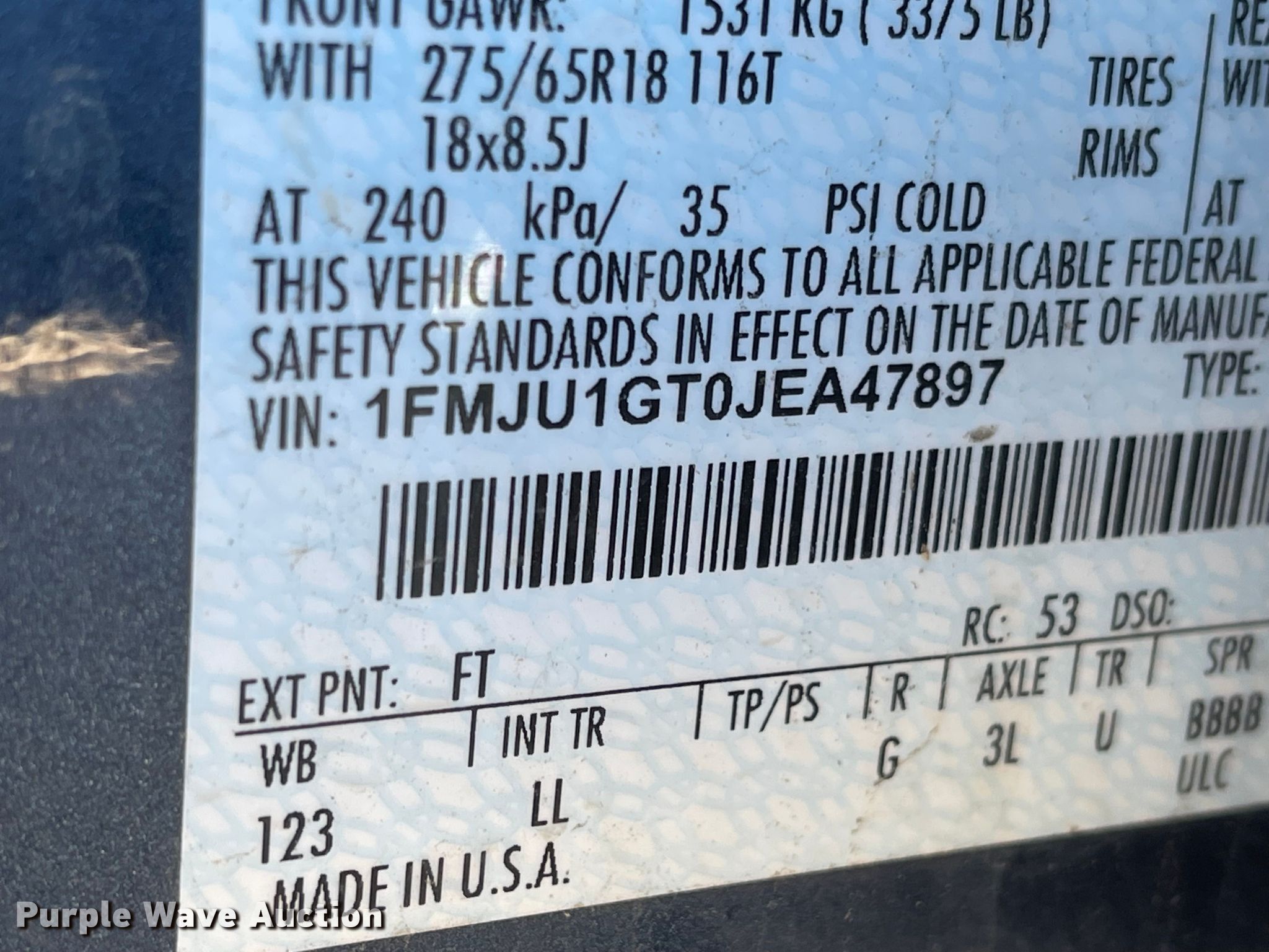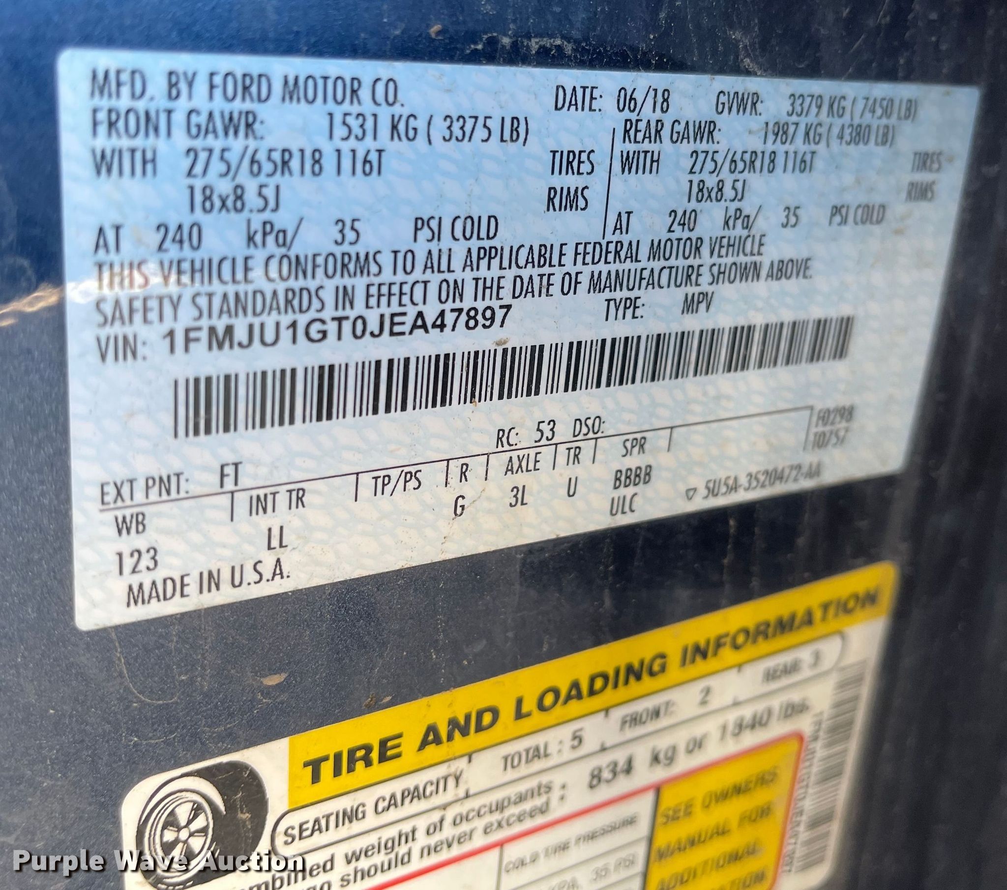 Purple Wave is selling a used Passenger Vehicle in Kansas. This item is a 2018 Ford Expedition SUV with the following: Miles: 89,722 on odometer, VIN: 1FMJU1GT0JEA47897