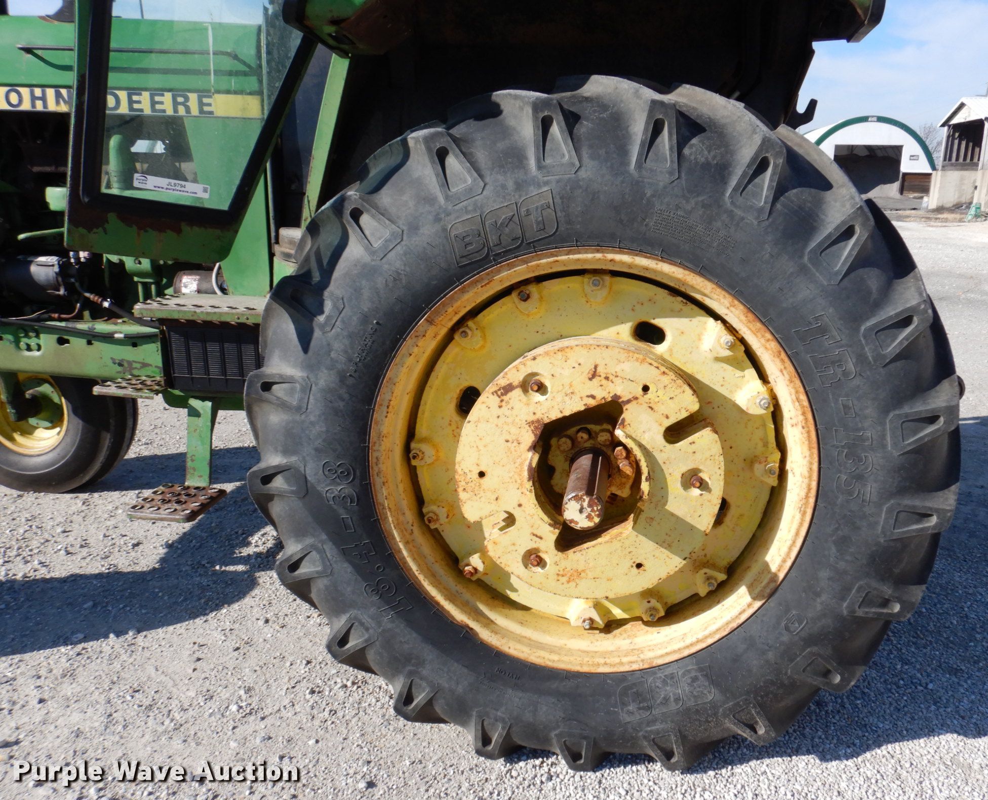 1978 John Deere 4440 tractor. Hours: 7,703 on meter, Serial: 4440H004626R. Engine Cylinders: 6, Fuel type: Diesel. Transmission Quad-range, 16F - 6R, Differential lock. Operators station AC, Heat. Features PTO: 540, 1000, Three point, Seven pin outlet, Hydraulic remote sets Rear: 2, Power beyond (hydraulics). Tires Front: 10.00-16, Rear: 18.4-38, Wheel weights: 6. Notes Glass cracked, Door glass removed but included. Road District 6. 1541 Old Rte 67. Jacksonville, IL 62650