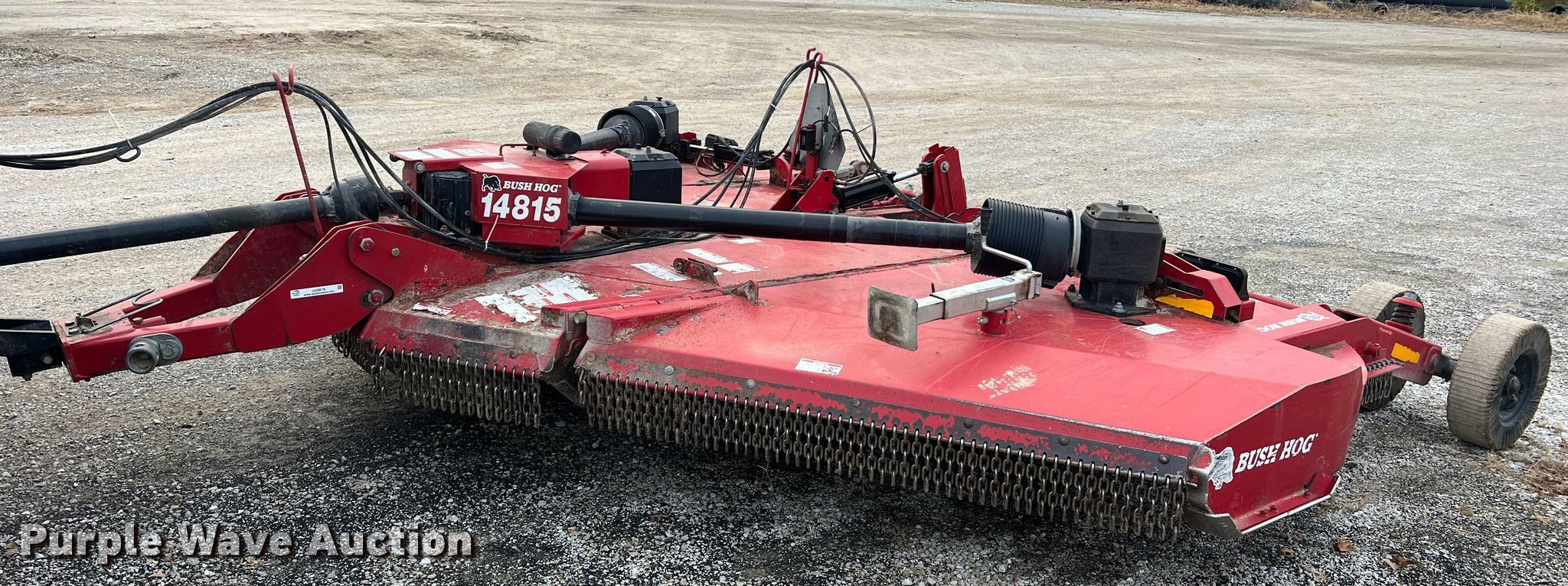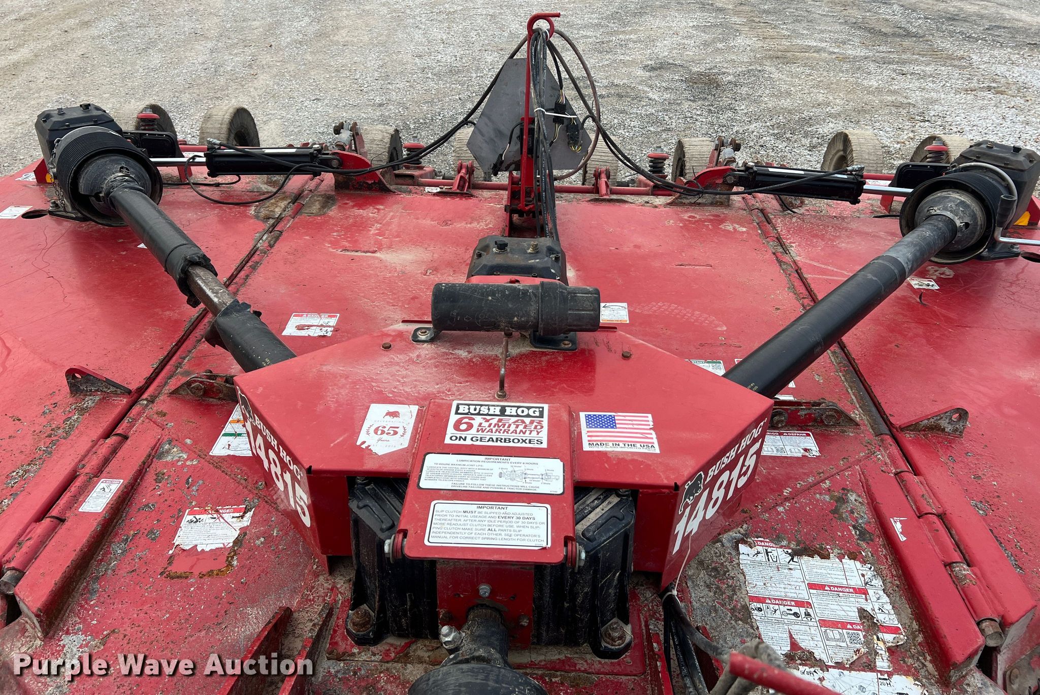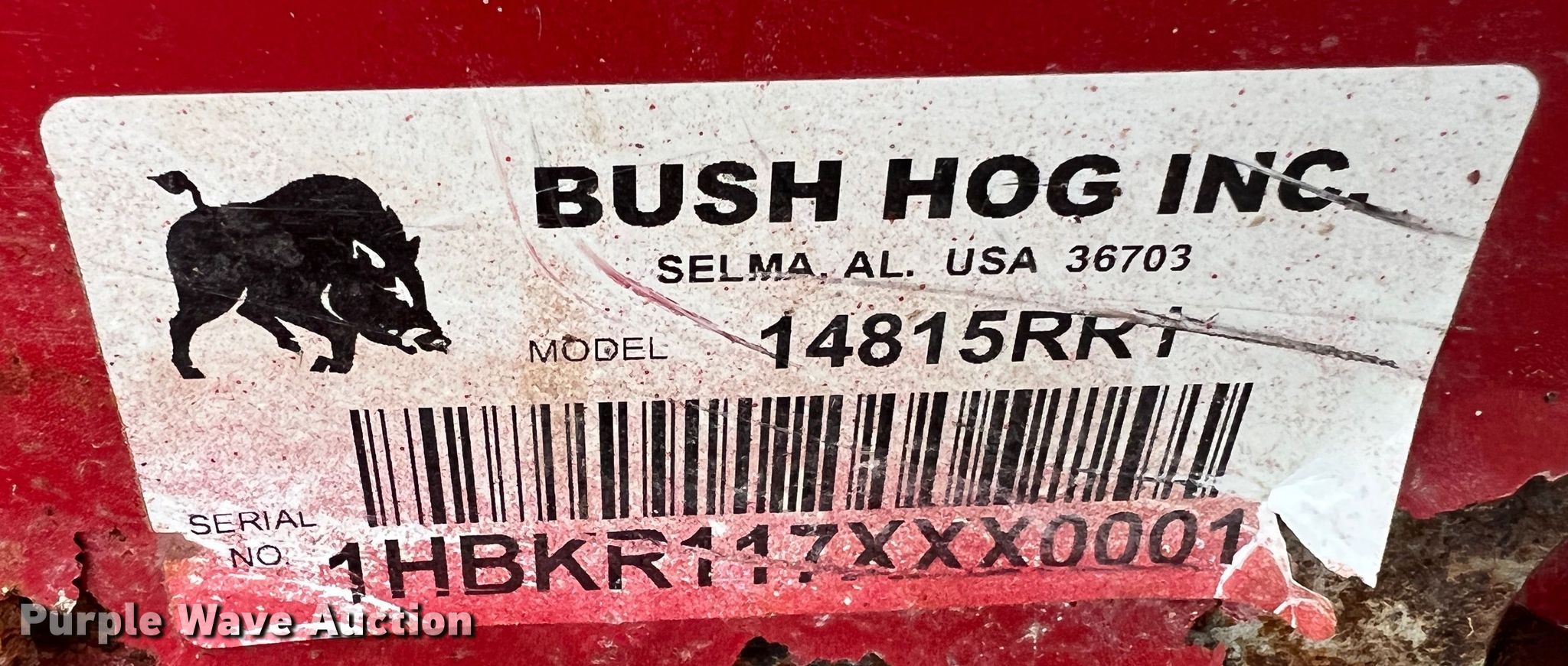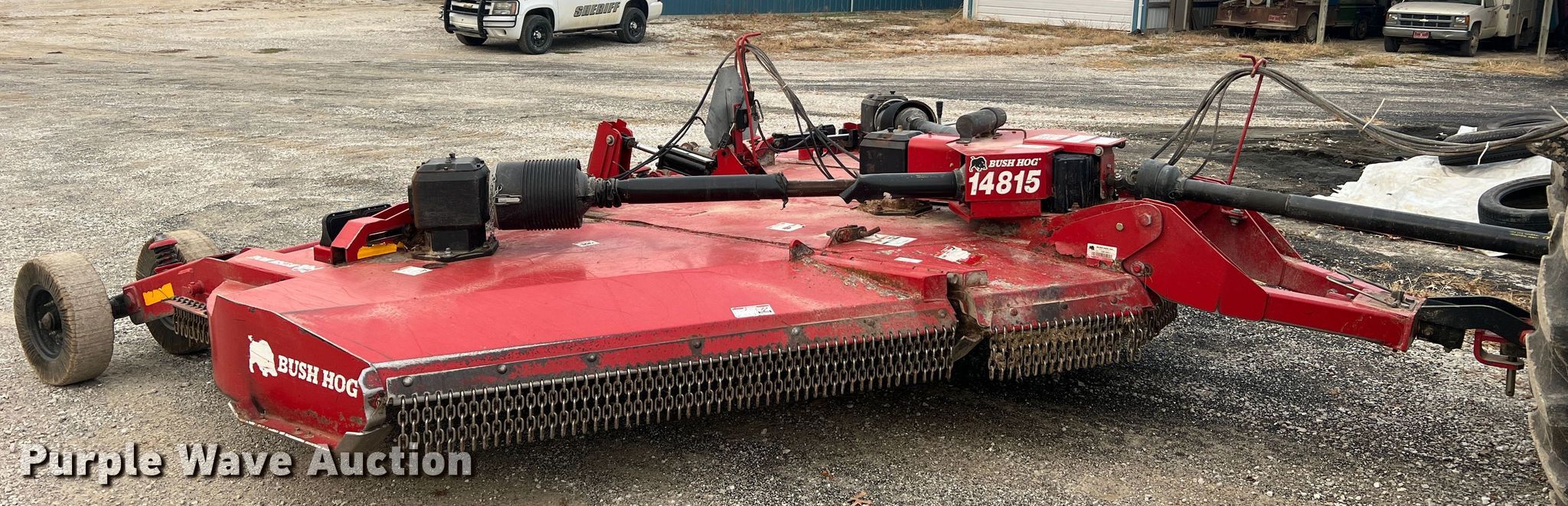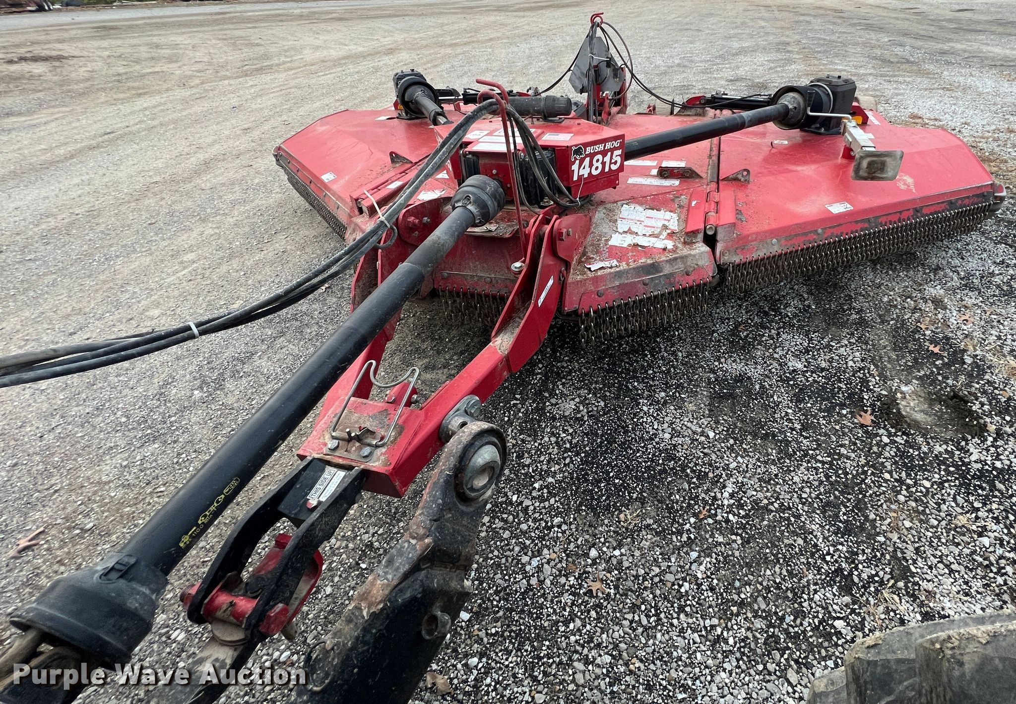 Bush Hog 14815 batwing finish mower. Serial: 1HBKR117XXX0001. Features Width: 15' 3", Hydraulic lift, Hydraulic fold, PTO: 1000. Tires Solid. Howard County. 349 Highway 240. Fayette, MO 65248
