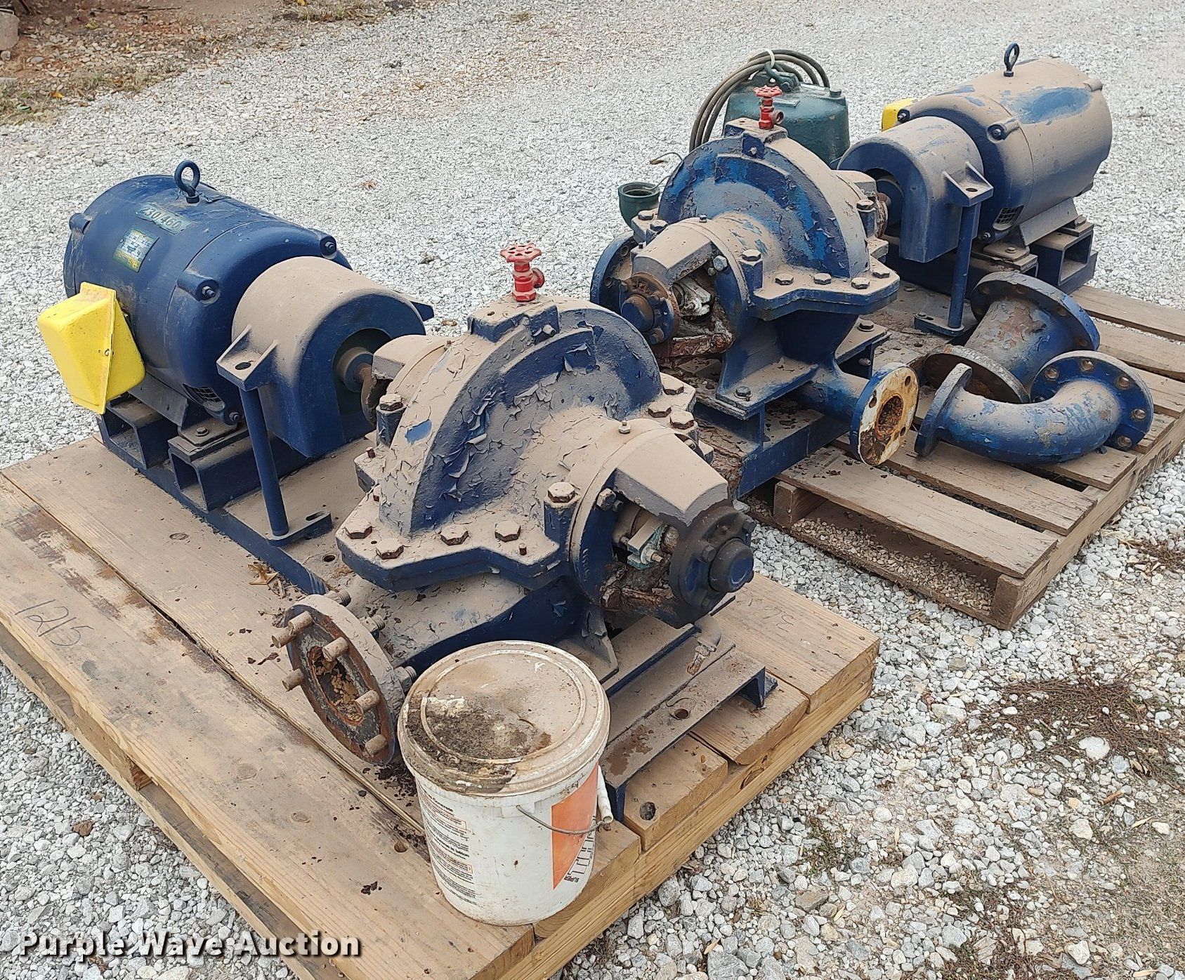 Purple Wave is selling a used Pump in Kansas. This item is a (3) pumps with the following: (2) pumps, Marathon Electric motor, HP: 30, Volts: 230/460, Phase: Three, Pump seals need replaced, Goulds WP1512-01 pump, HP: 1.5, Volts: 230, Phase: Single