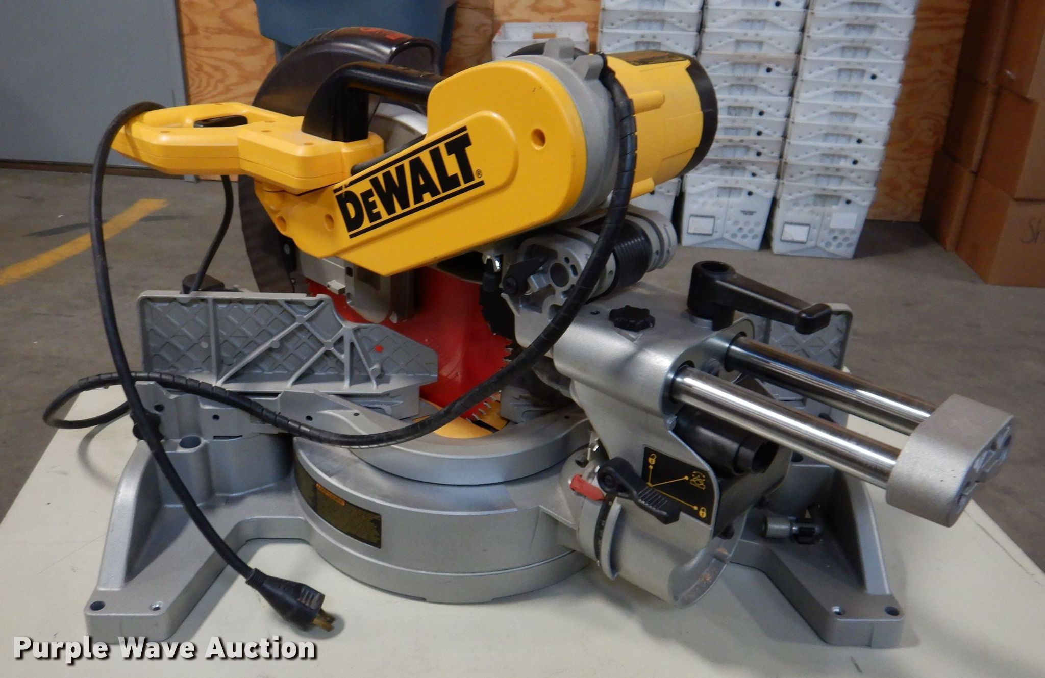 Purple Wave is selling a used Tools in Iowa. This item is a DeWalt DW718 miter saw with the following: Blade: 12", Needs torsion spring