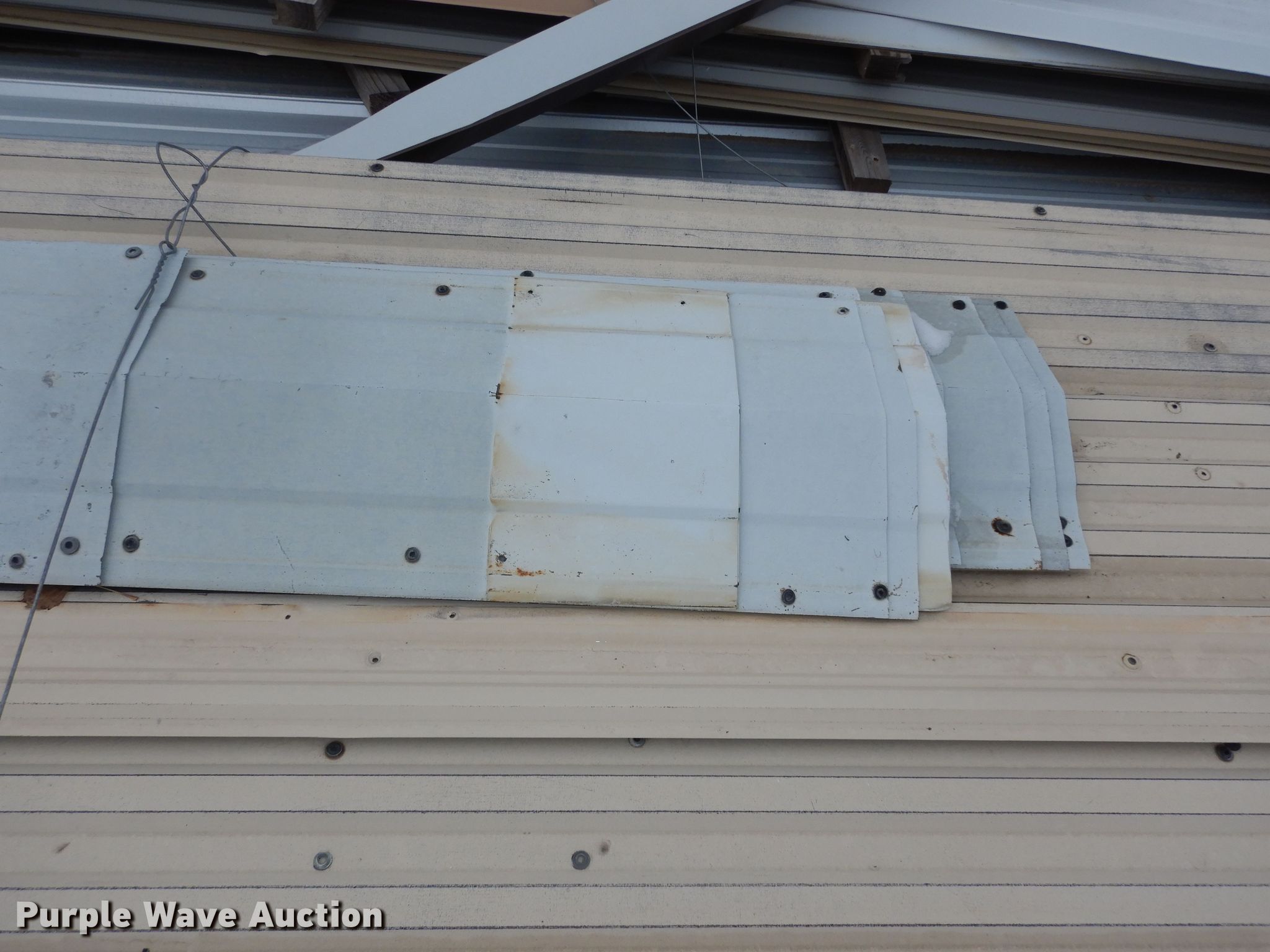 Purple Wave is selling a used Building Materials in Kansas. This item is a Tin with the following: 10'L to 28'2"L, 15"W to 38"W, Some damaged