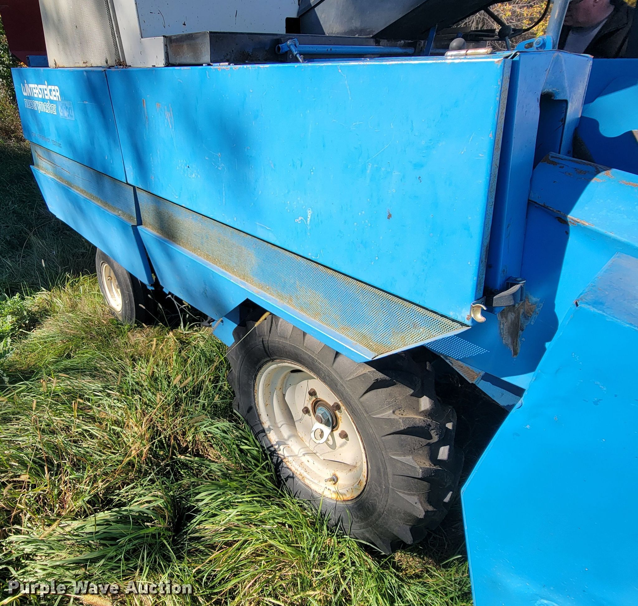 Wintersteiger Nurserymaster Elite plot combine. Hours: Unknown, Serial: 1400/87/07/01, Unit #: SD15592. Engine Volkswagen, Cylinders: 4, Fuel type: Gas. Transmission Hydrostatic, 2F - 2R. Features Concaves: Small wire, Rigid head Width: 5', Reel: Finger Hydraulic reel height control.. Tires Front: 7.50-16, Rear: 7.0/85-10. Notes Unknown operating condition. South Dakota State University. 1525 Stadium Rd. Brookings, SD 57006