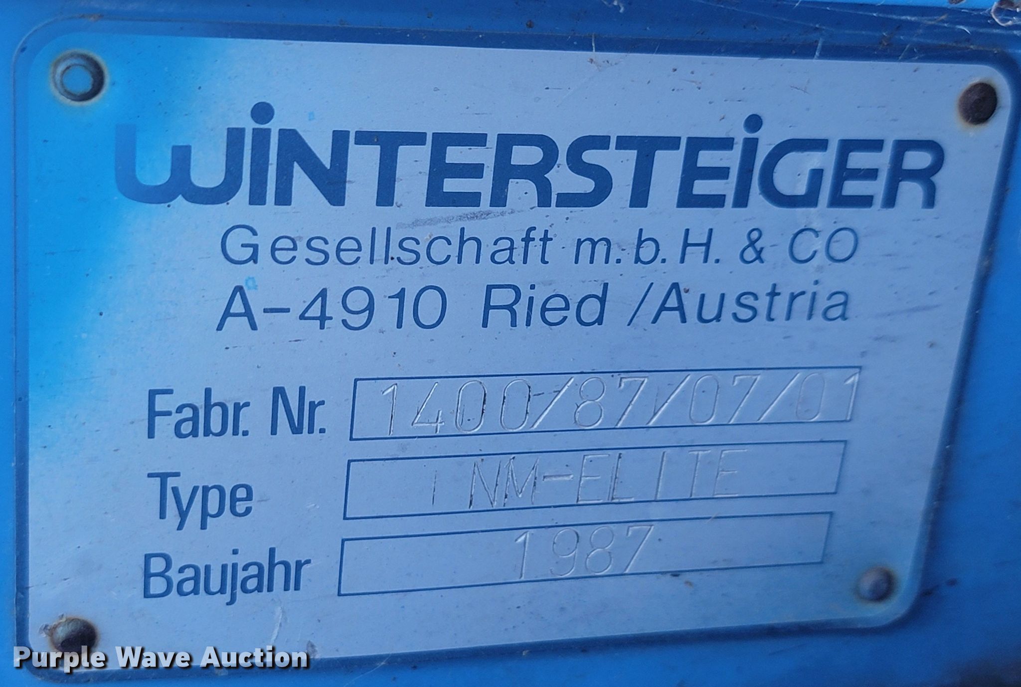 Purple Wave is selling a used Combine in South Dakota. This item is a Wintersteiger Nurserymaster Elite plot combine with the following: Hours: Unknown, Serial: 1400/87/07/01, Unit #: SD15592