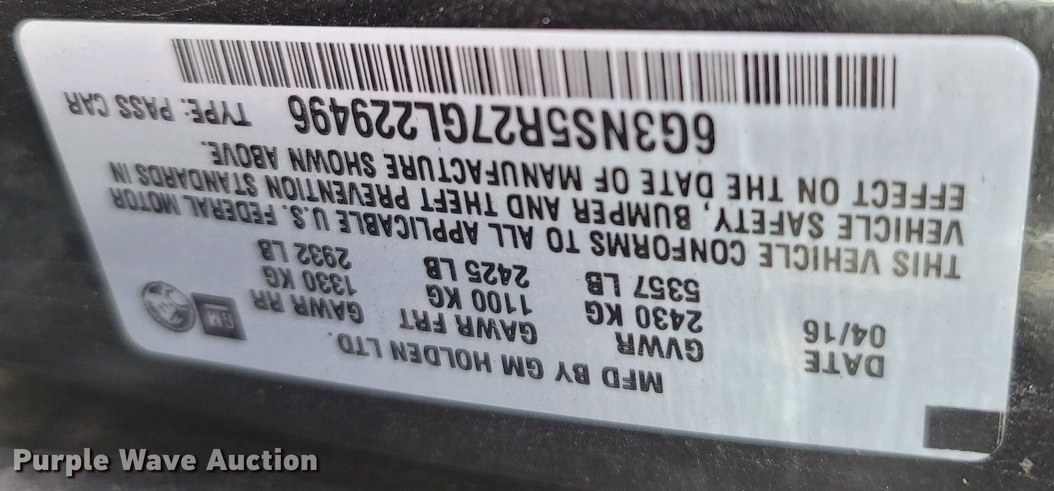 - VIN: 6G3NS5R27GL229496
