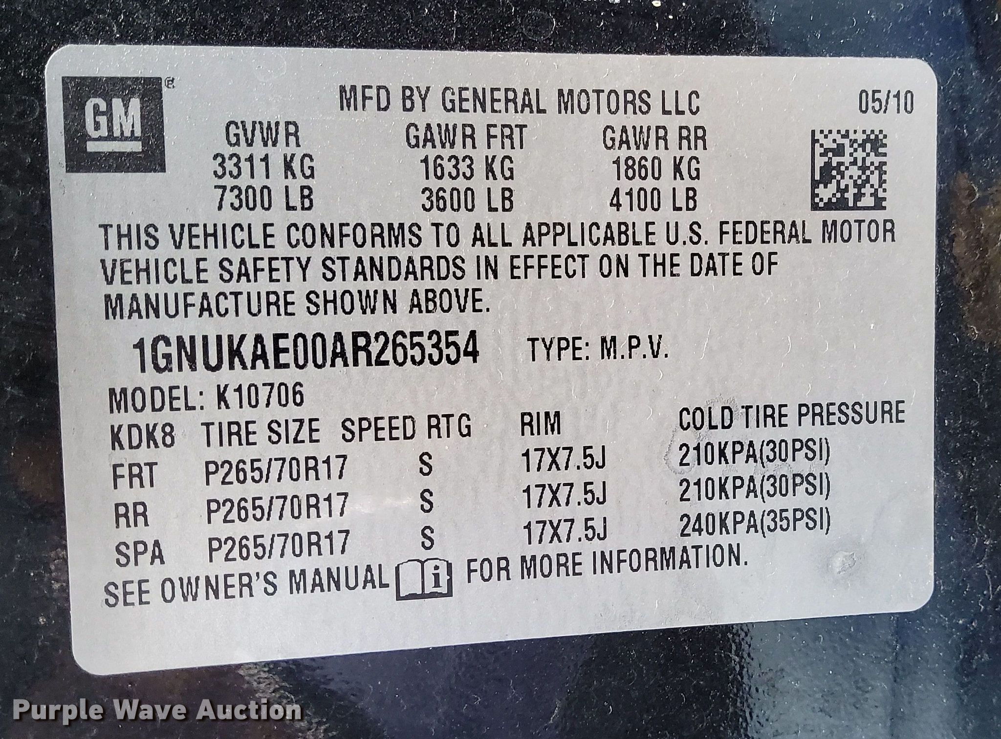 - VIN: 1GNUKAE00AR265354