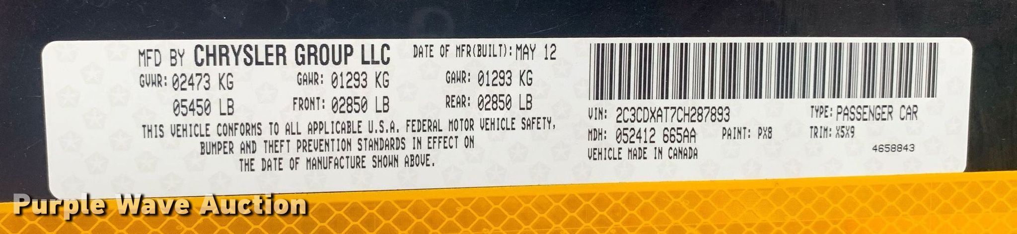 • VIN: 2C3CDXAT7CH287893