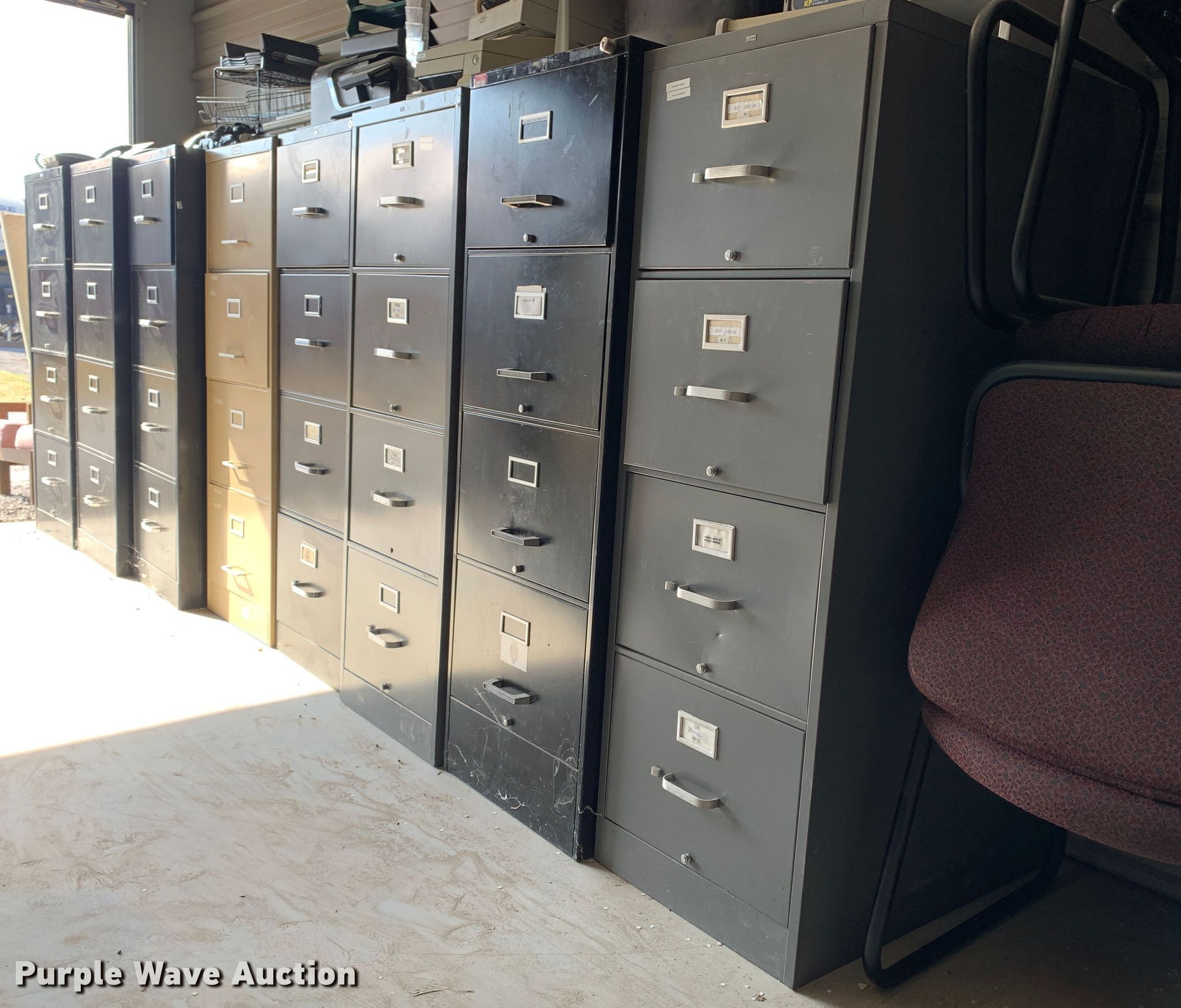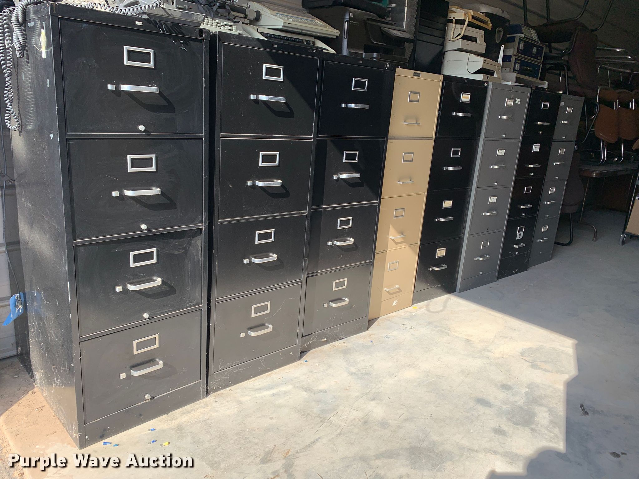 Purple Wave is selling a used Office Supplies and Equip. in Oklahoma. This item is a (15) file cabinets with the following: (14) four drawer, Two drawer