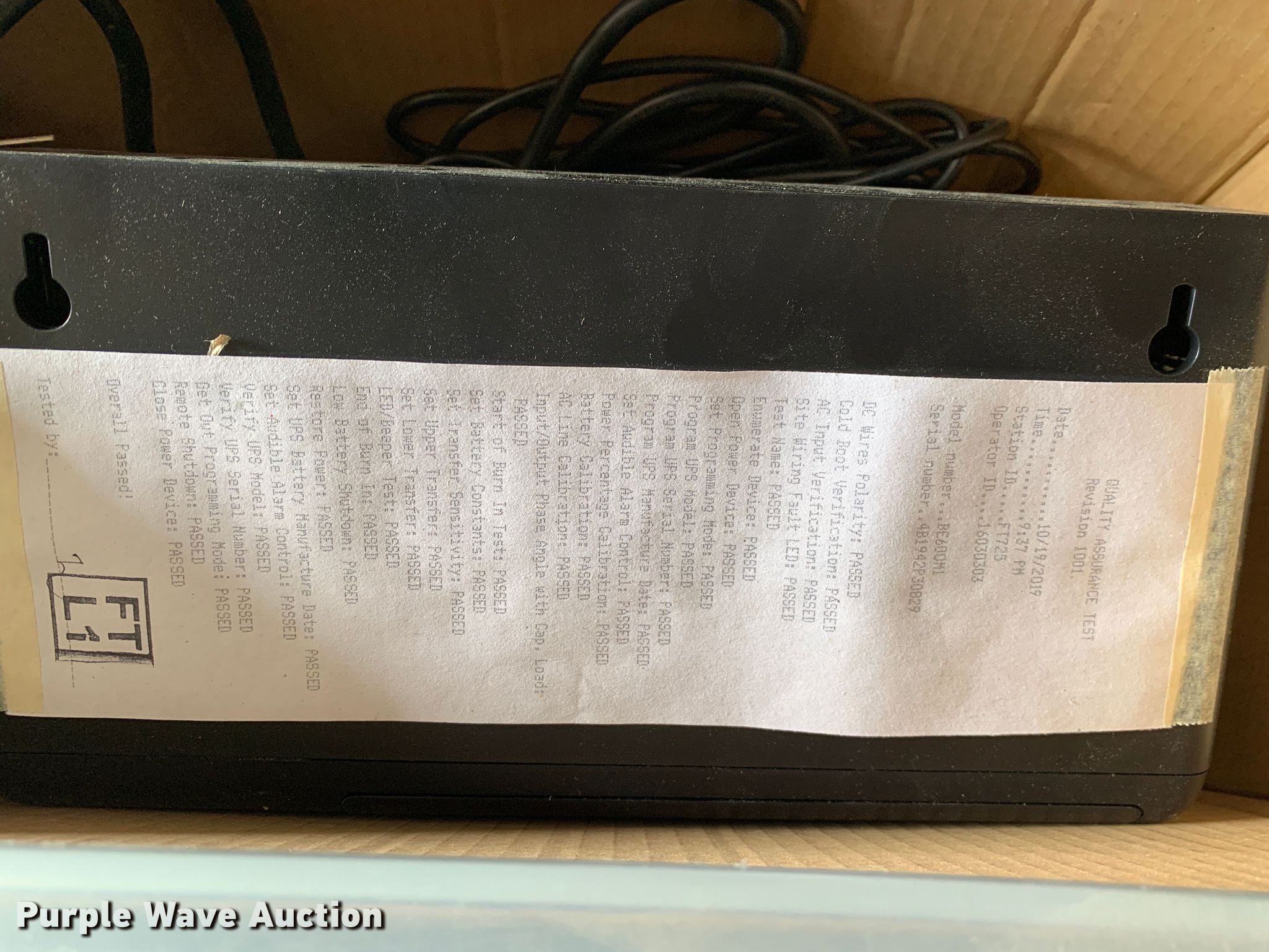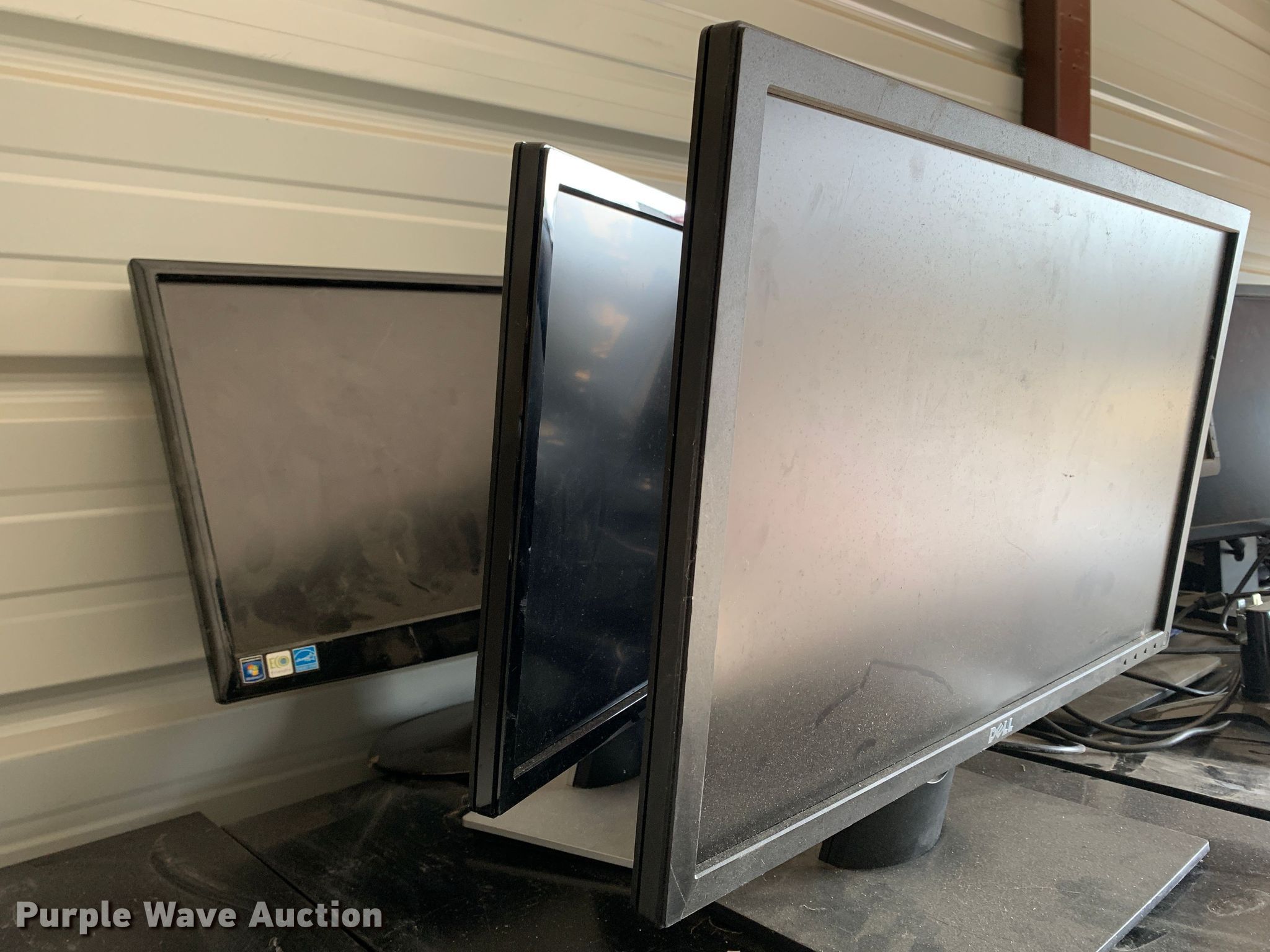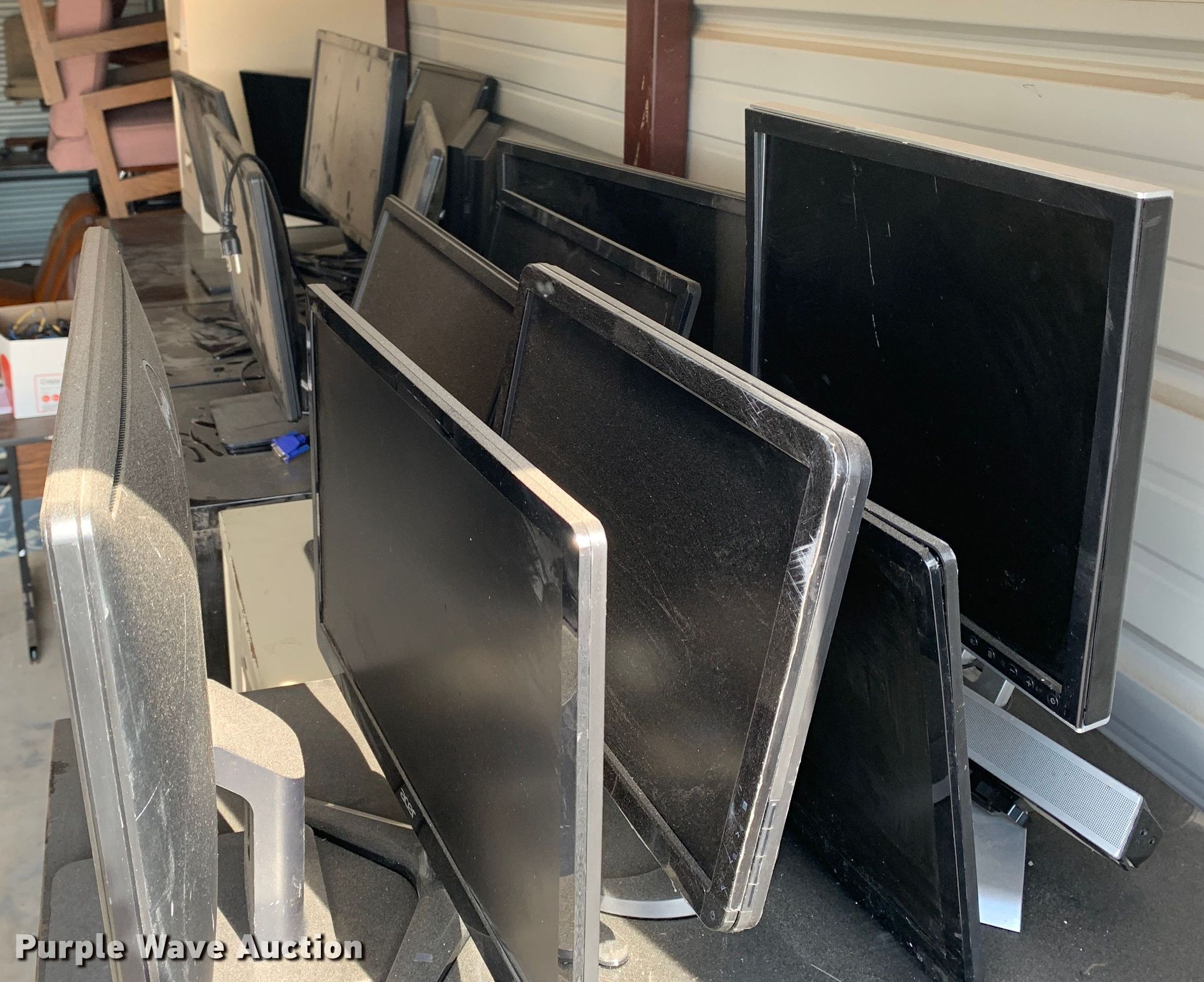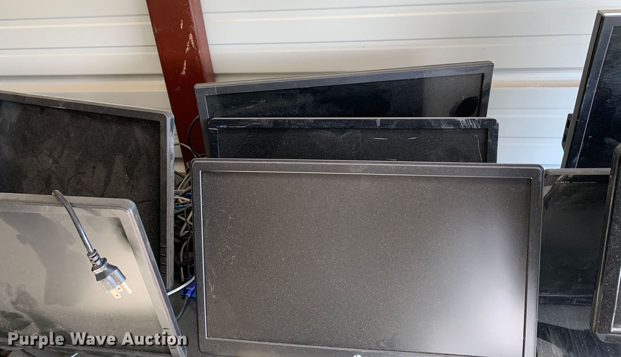 Purple Wave is selling a used Electronics in Oklahoma. This item is a Electronics with the following: (14) monitors, (7) keyboards, Power adapters, Cords, Battery backups, Surge protectors, Charge guards, Headsets, RFM 200 power supply, Fujitsu port replicator, NTN case guard, Radios and more