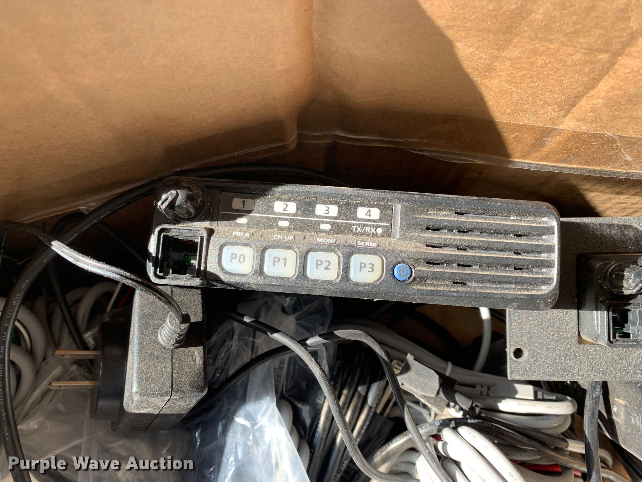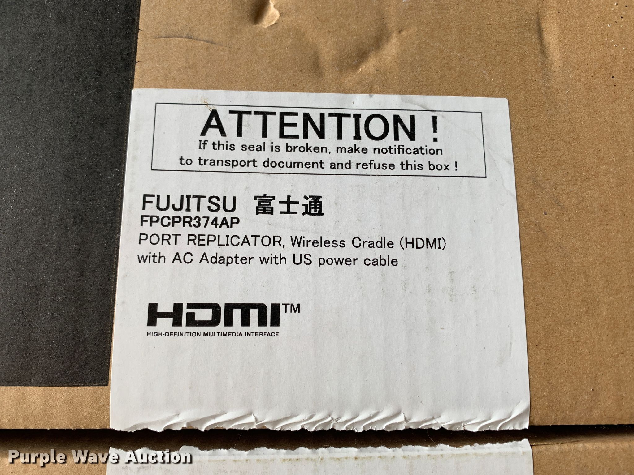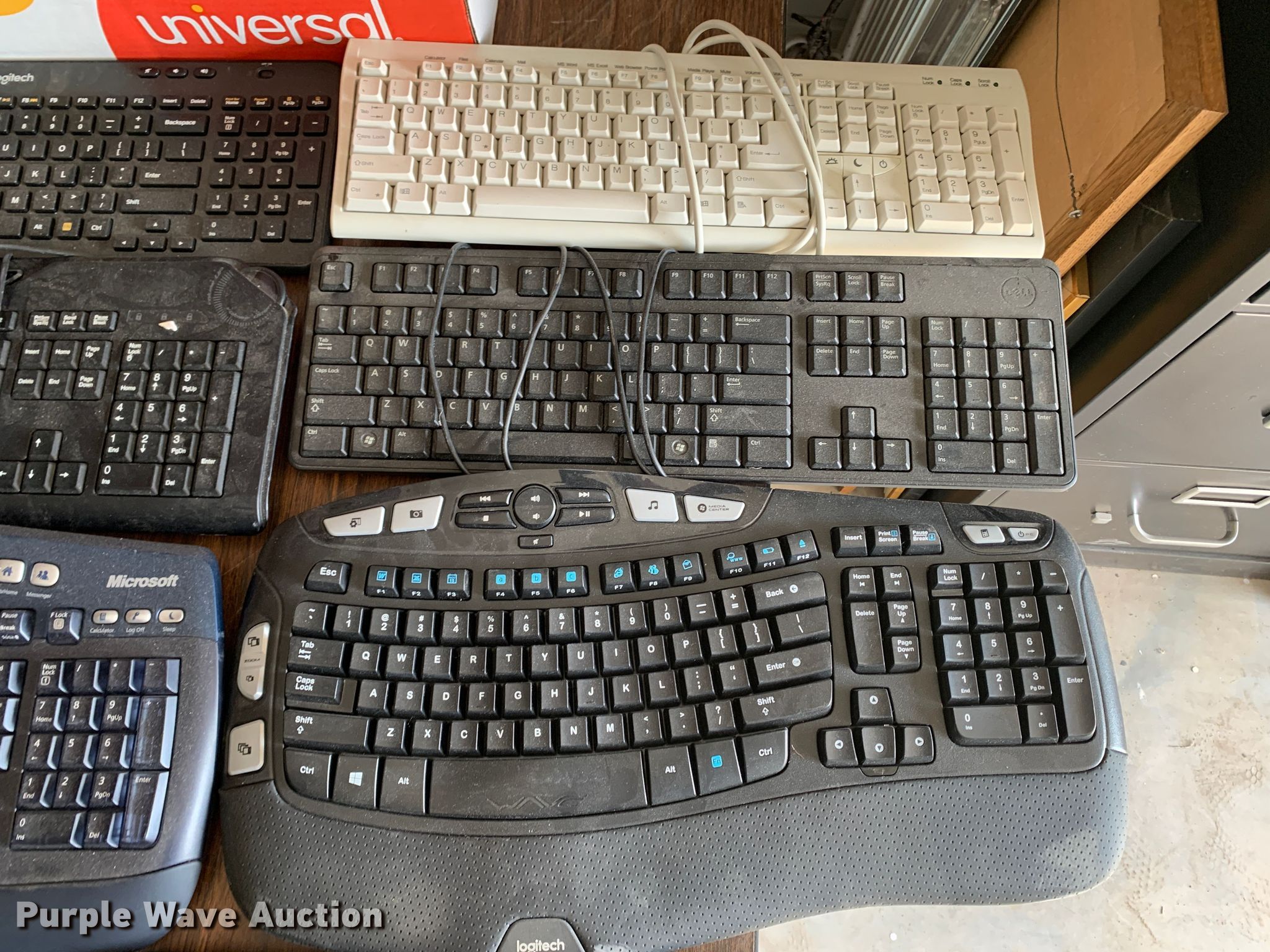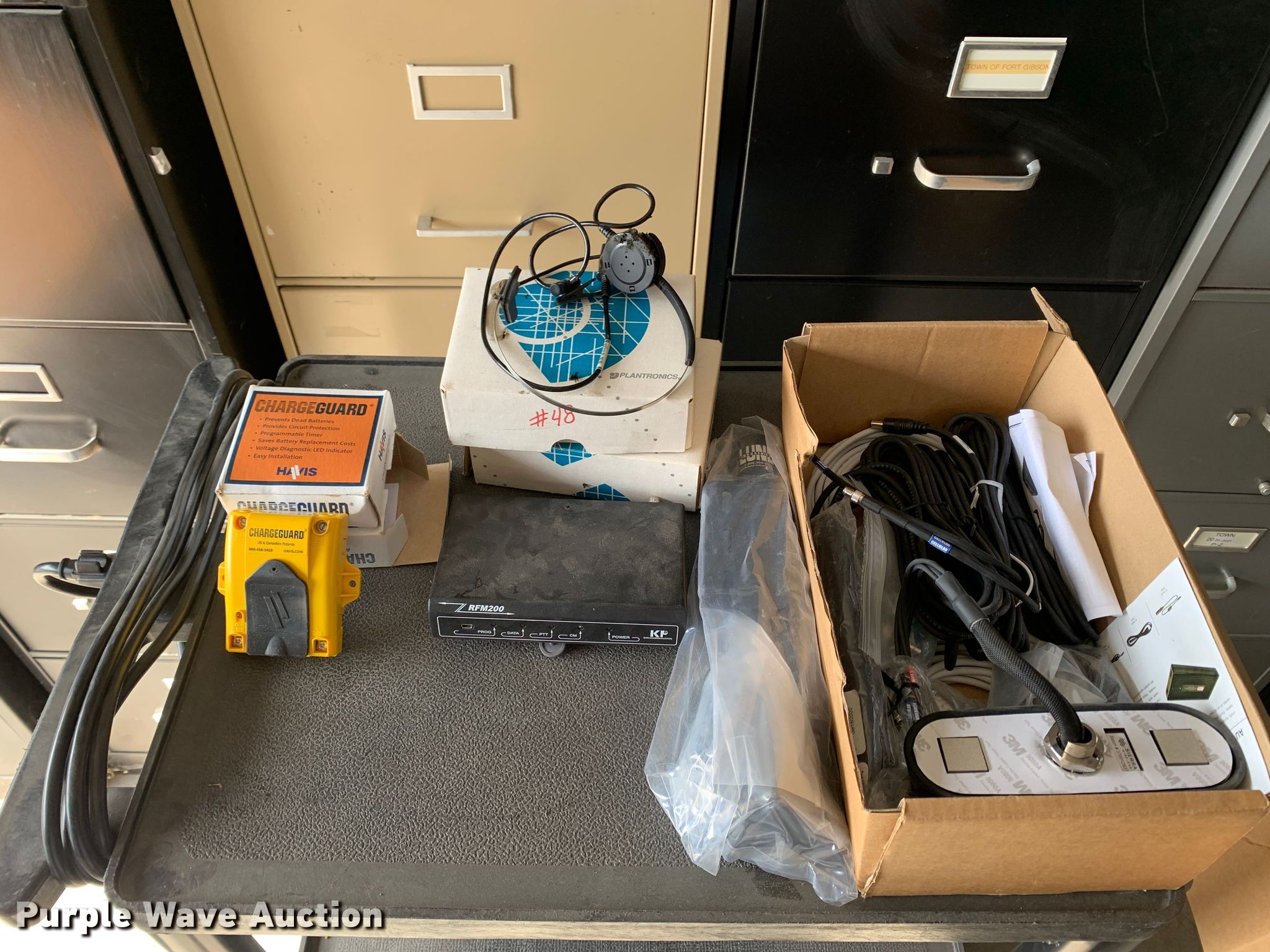 Purple Wave is selling a used Electronics in Oklahoma. This item is a Electronics with the following: (14) monitors, (7) keyboards, Power adapters, Cords, Battery backups, Surge protectors, Charge guards, Headsets, RFM 200 power supply, Fujitsu port replicator, NTN case guard, Radios and more