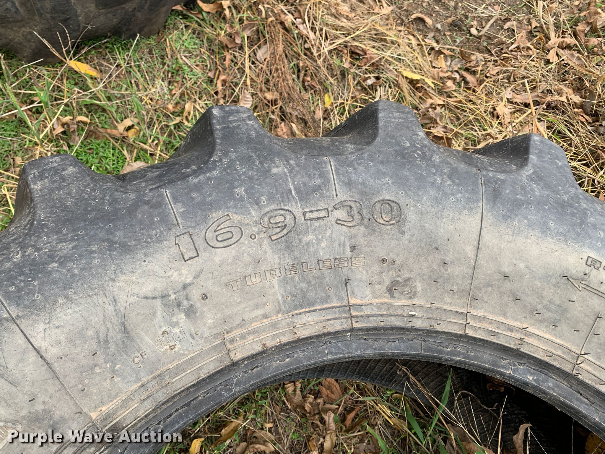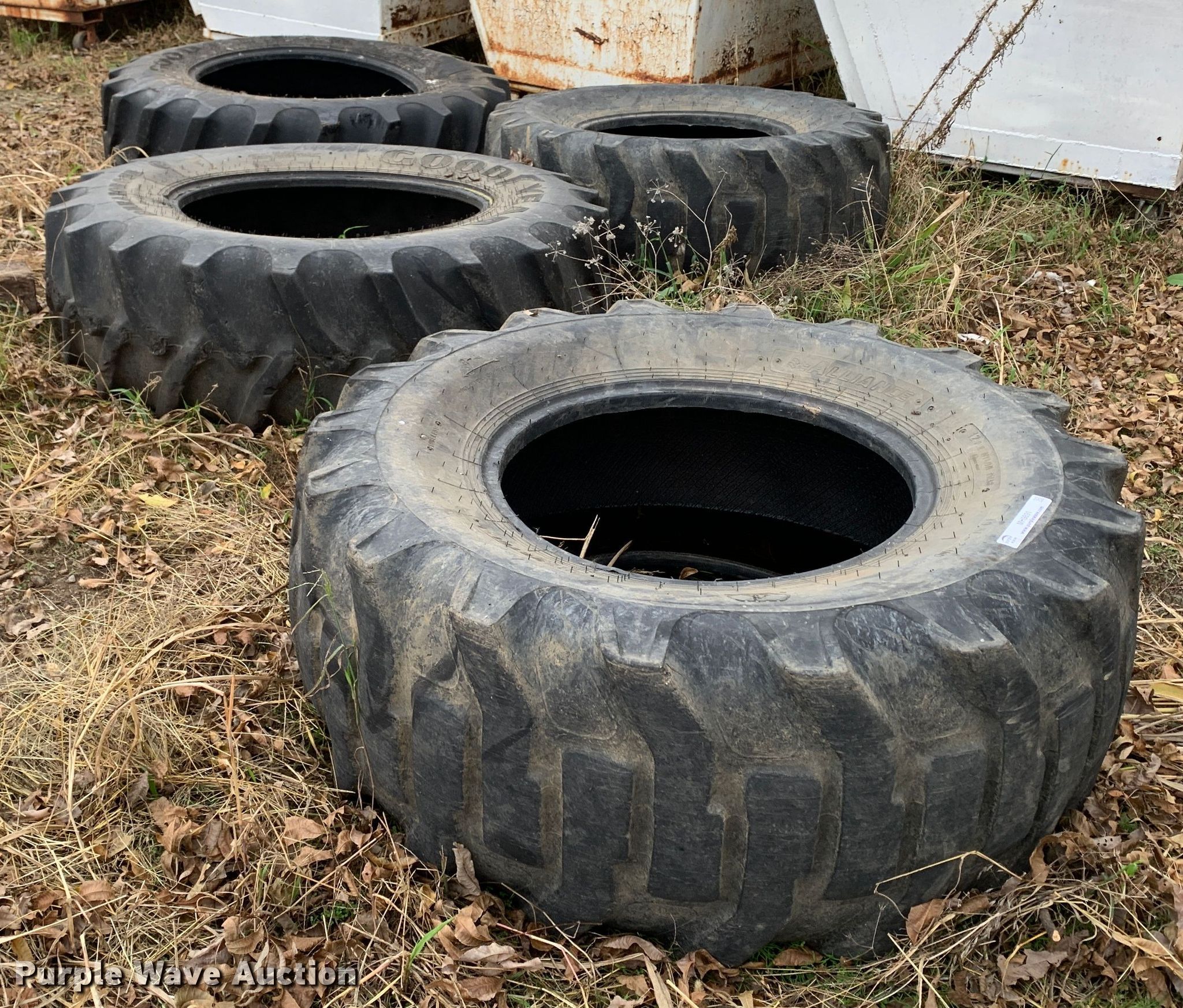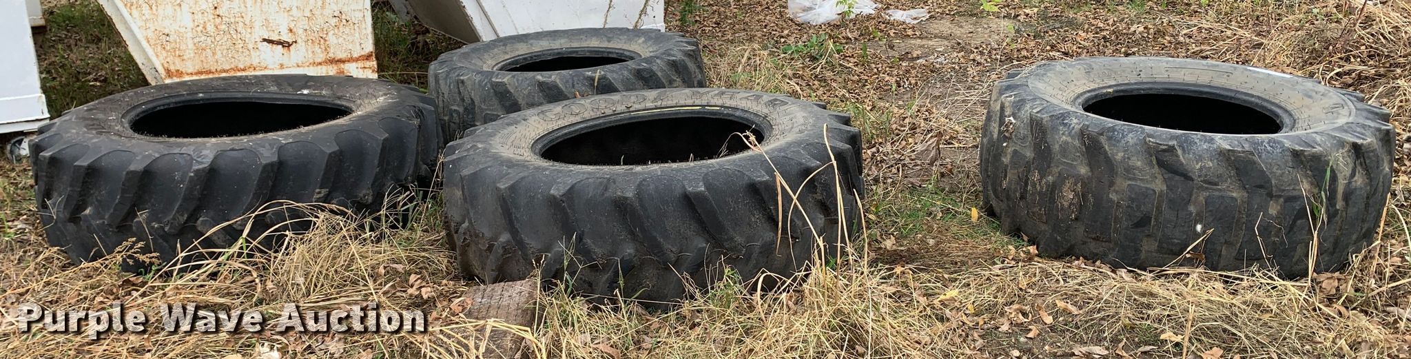 Purple Wave is selling a used Industrial Tires or Tracks in Oklahoma. This item is a (4) tires with the following: 19.5L-24, (3) 16.9-30
