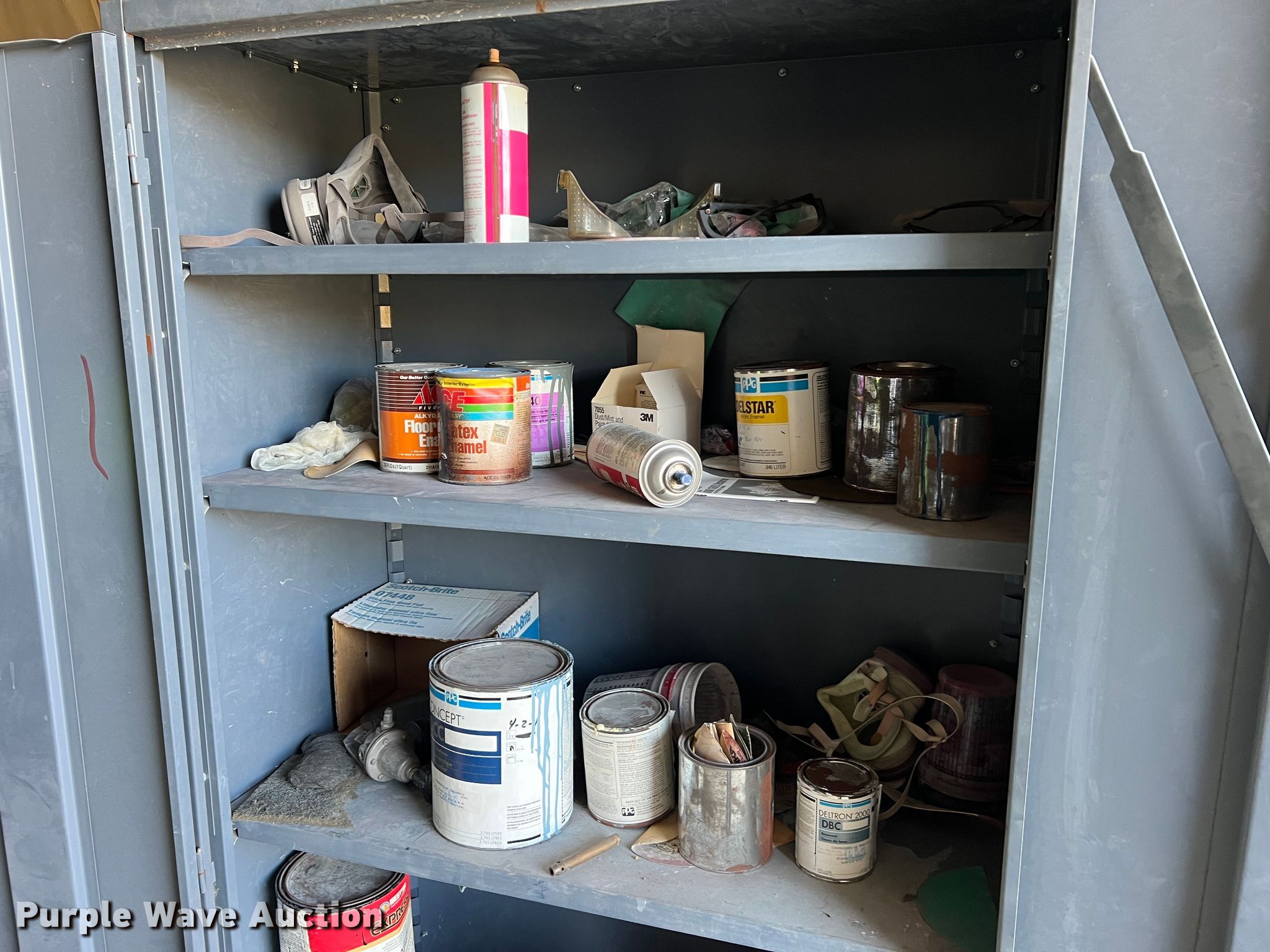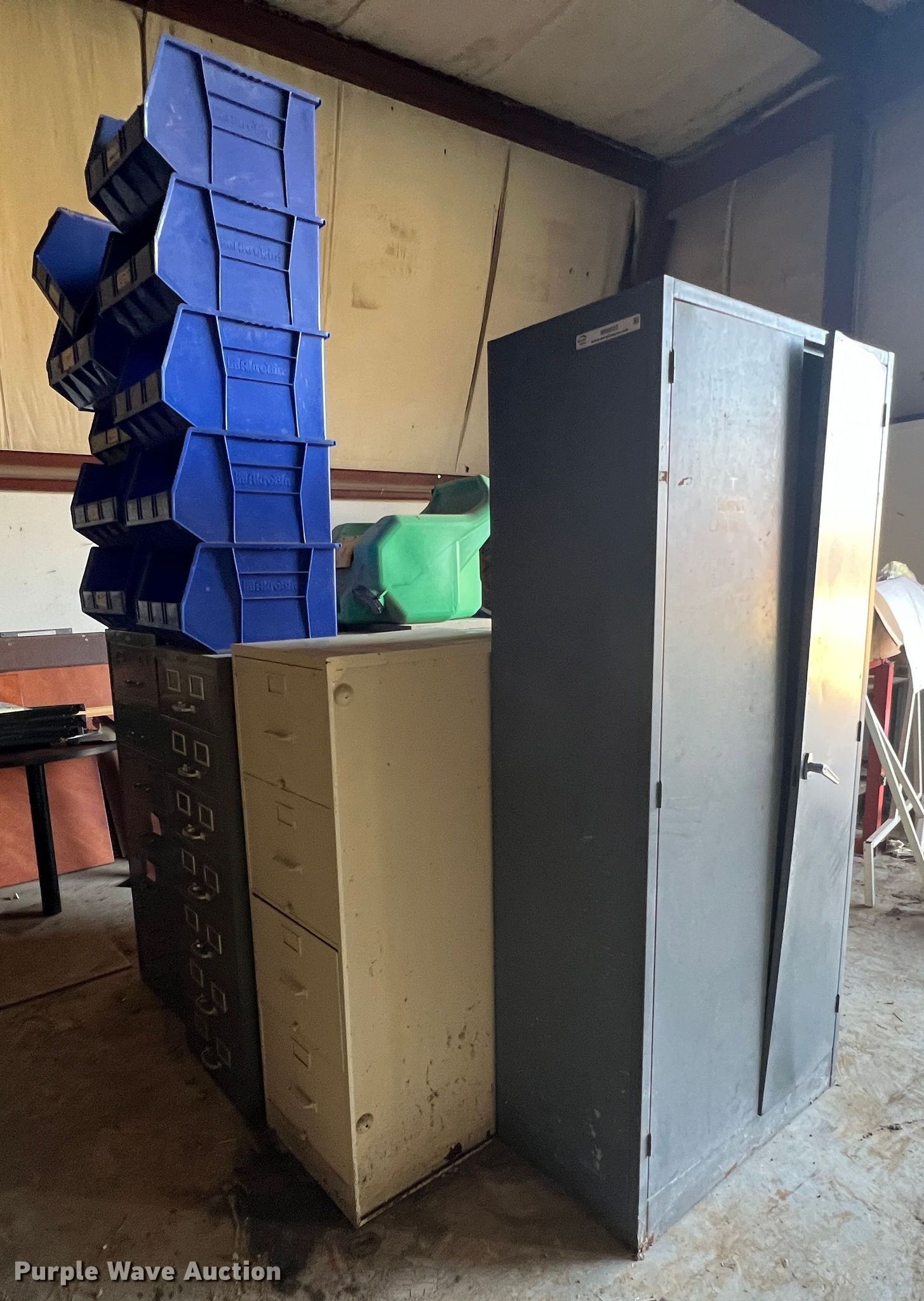 Purple Wave is selling a used Office Supplies and Equip. in Missouri. This item is a Office equipment with the following: (5) filing cabinets, Metal cabinet, (10) plastic bins, Eye wash system