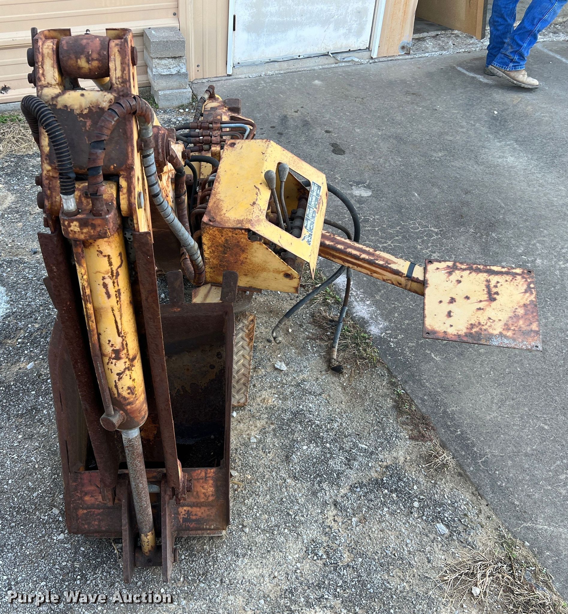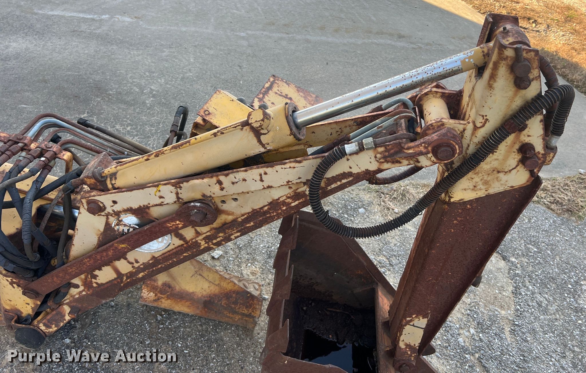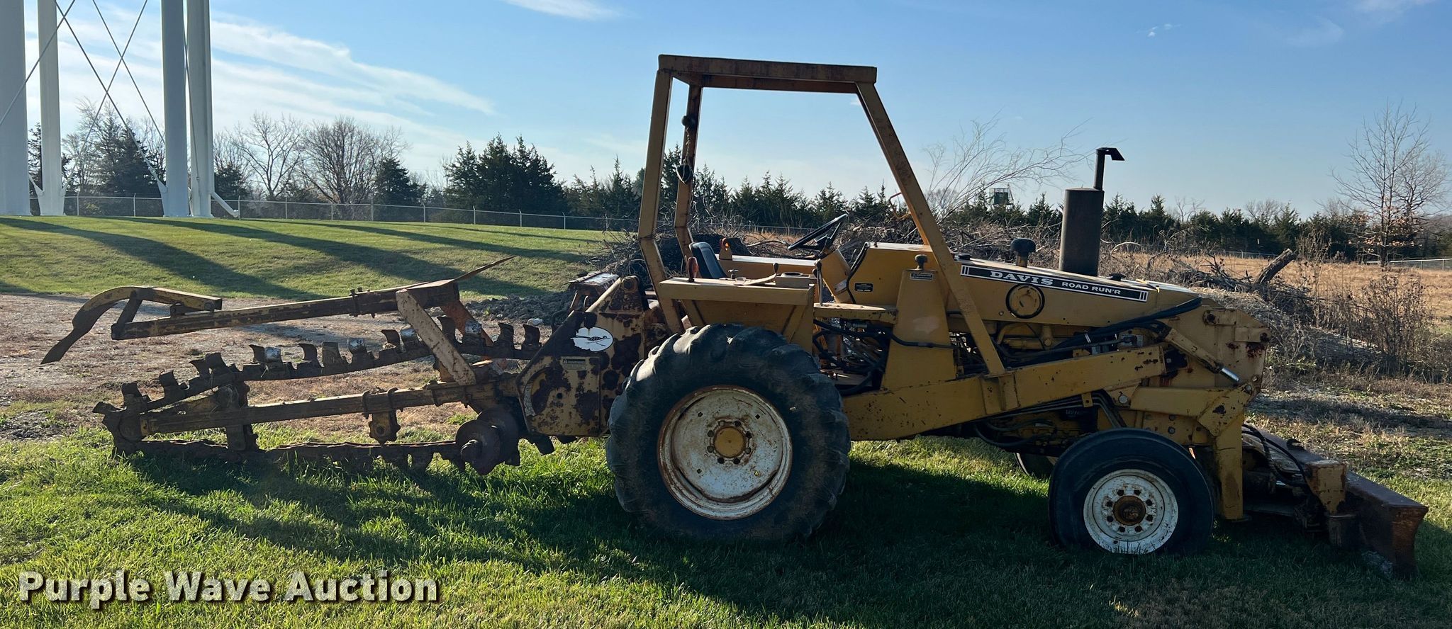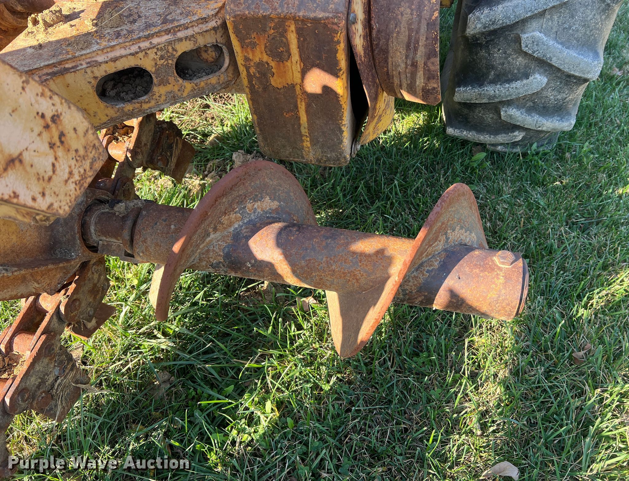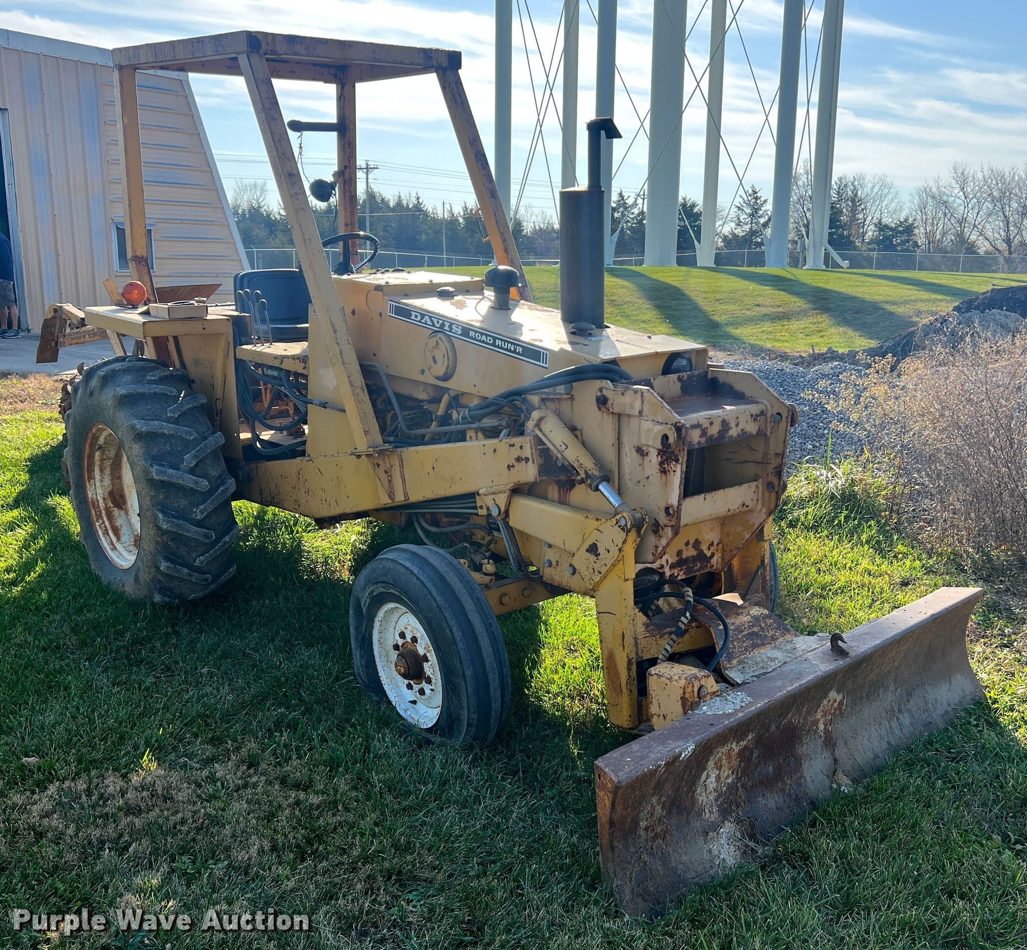 Davis Road Run'r trencher. Hours: 1,399 on meter, Serial: R623685. Engine Cylinders: 4, Fuel type: Diesel. Transmission Manual, 4F - 4R. Operators station Canopy. Features Trencher Estimated dig depth: 99", Cutting width: 7", Teeth: Dirt, Manual crumber, Backhoe Model: RD100, Serial: Q1540134, Bucket width: 20", Backfill blade Width: 83". Tires Front: 7.50-16, Rear: 14.0-24. Notes Front tires flat, Non-operational unit. 10821 North Highway Vv. Columbia, MO 65202