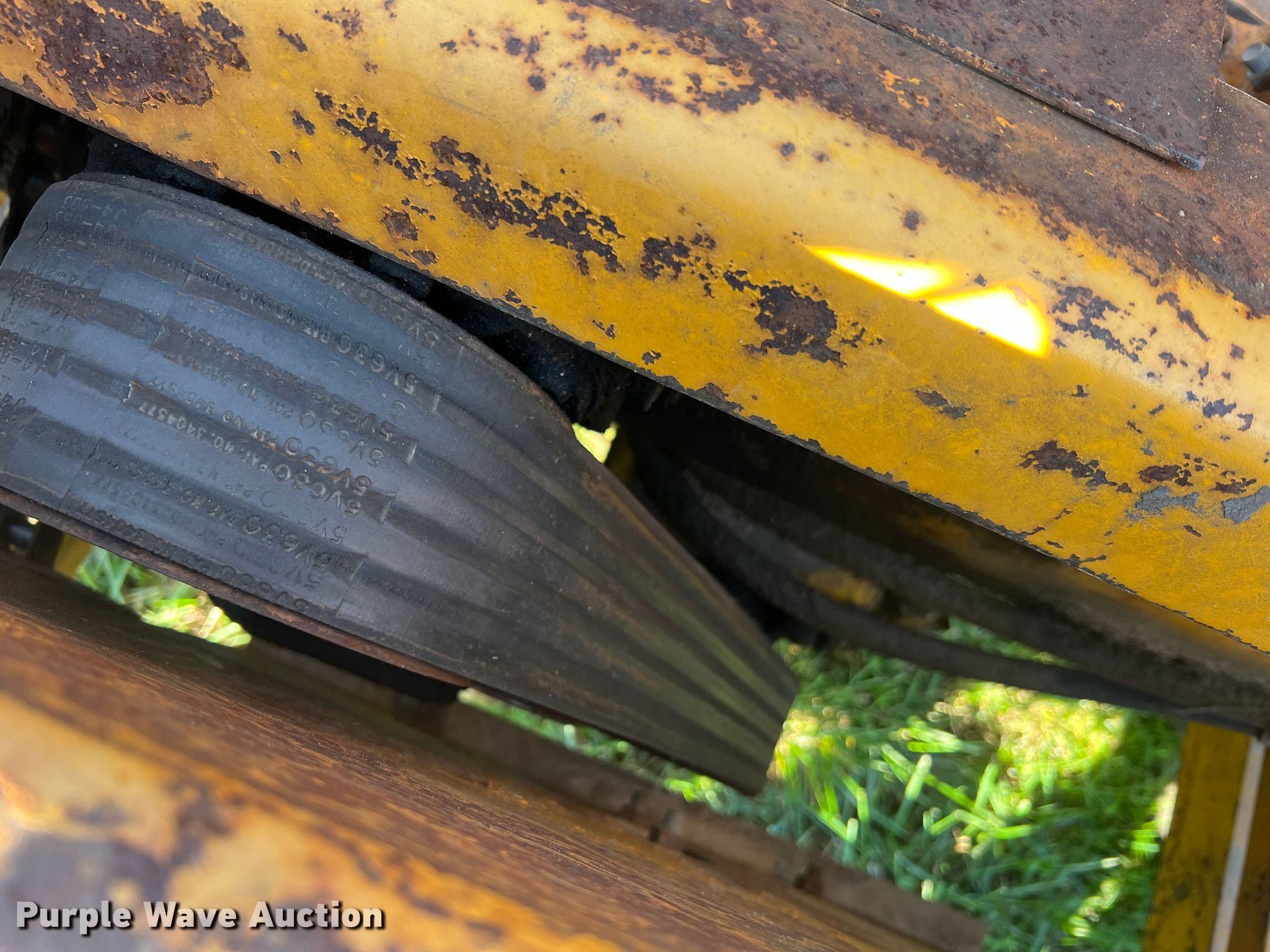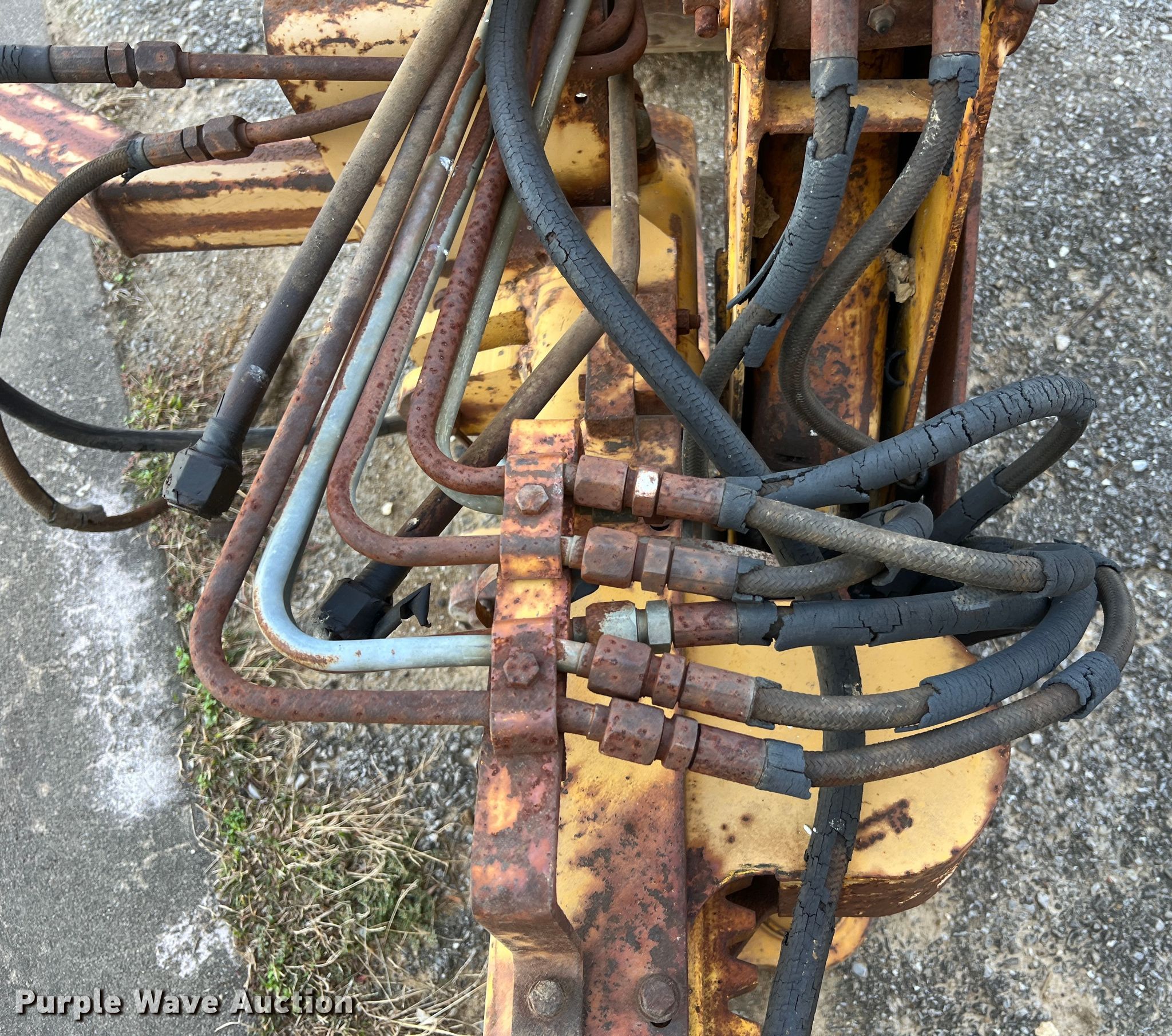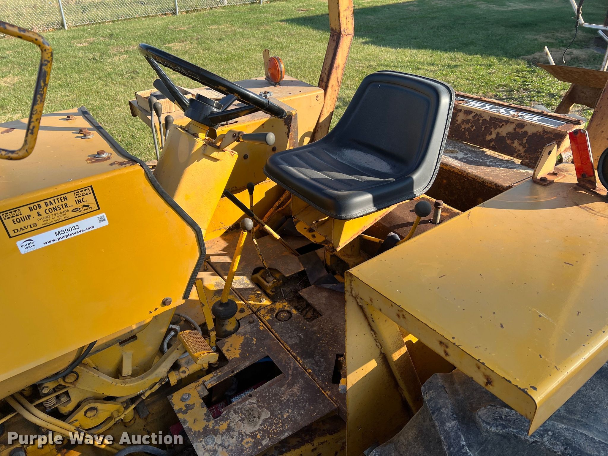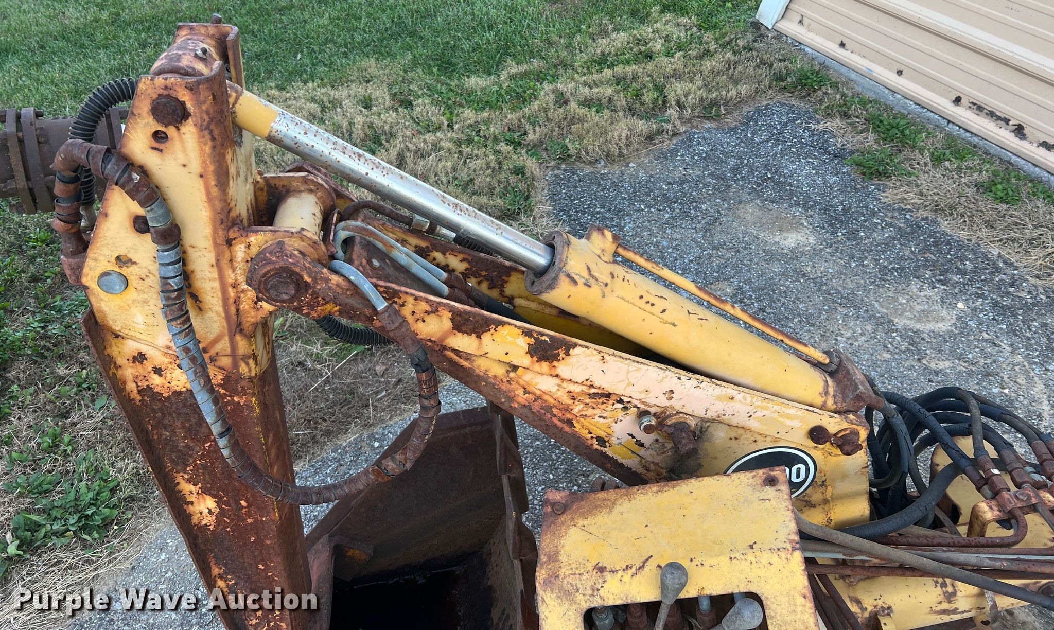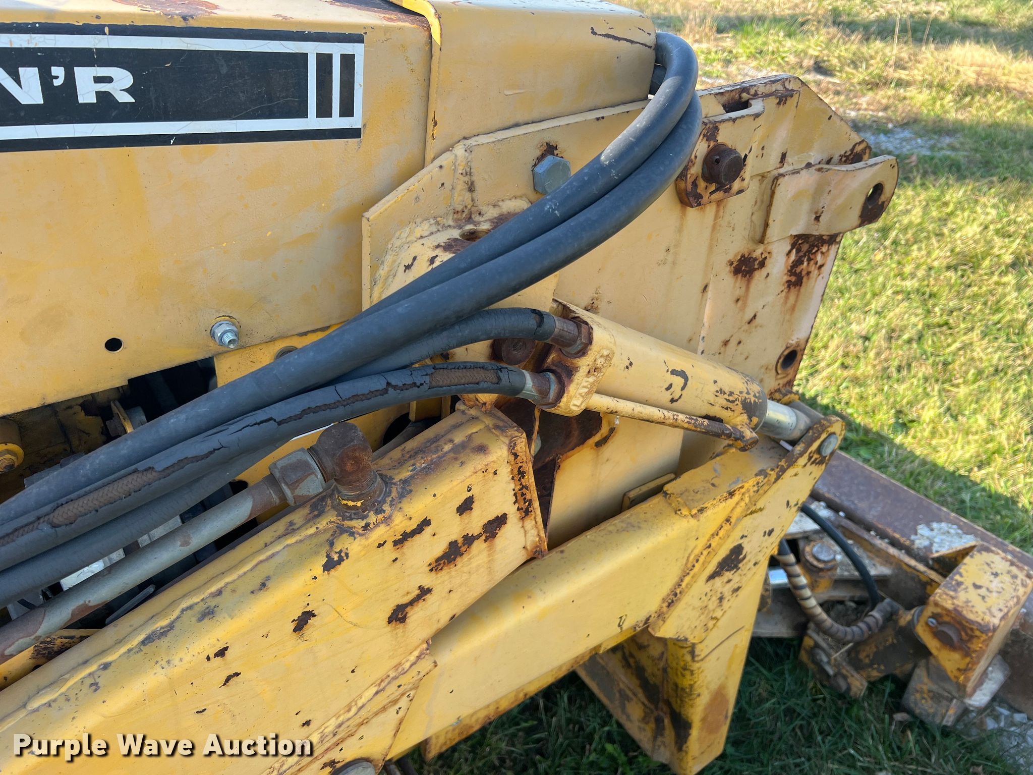 Davis Road Run'r trencher. Hours: 1,399 on meter, Serial: R623685. Engine Cylinders: 4, Fuel type: Diesel. Transmission Manual, 4F - 4R. Operators station Canopy. Features Trencher Estimated dig depth: 99", Cutting width: 7", Teeth: Dirt, Manual crumber, Backhoe Model: RD100, Serial: Q1540134, Bucket width: 20", Backfill blade Width: 83". Tires Front: 7.50-16, Rear: 14.0-24. Notes Front tires flat, Non-operational unit. 10821 North Highway Vv. Columbia, MO 65202