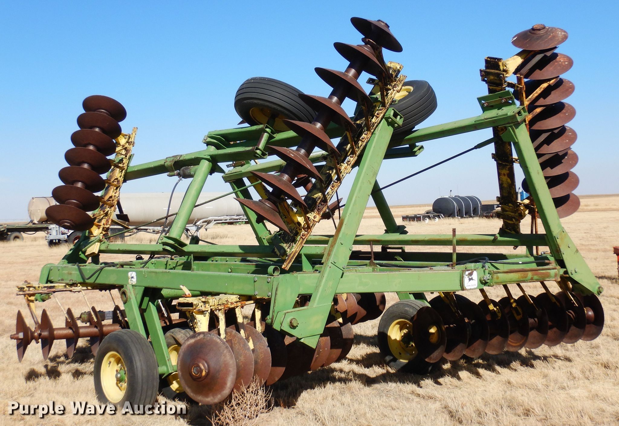 Purple Wave is selling a used Disk in Colorado. This item is a John Deere 330 double off-set disk with the following: Overall width: 25'