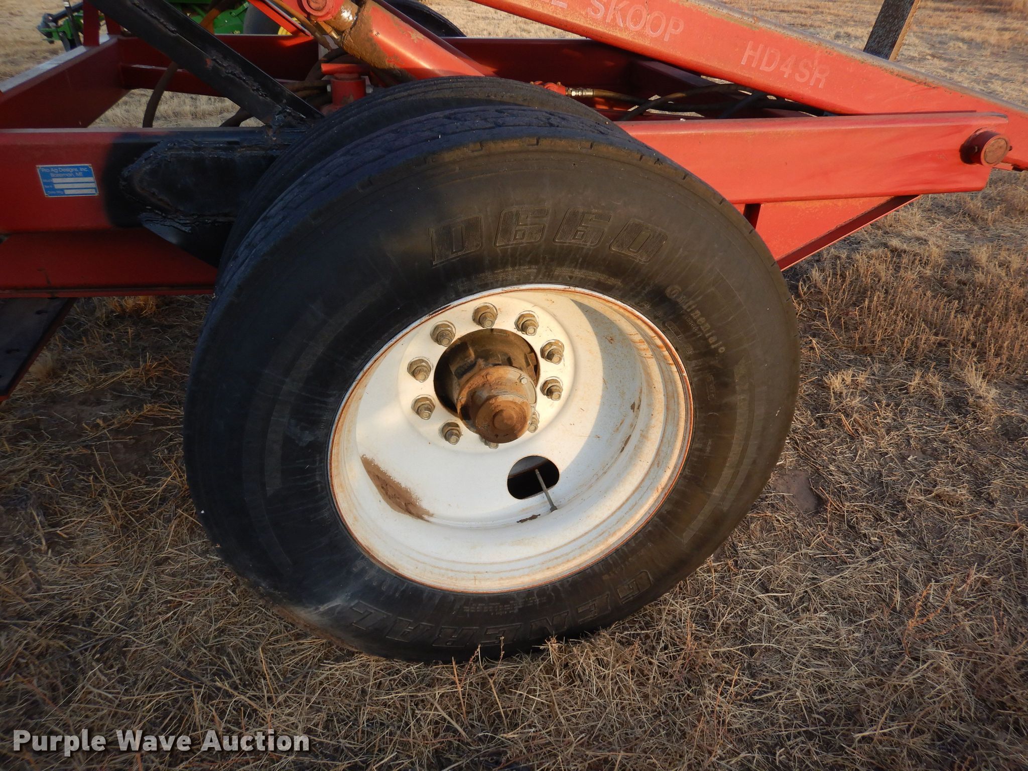Purple Wave is selling a used Hay Handling in Colorado. This item is a 2000 Pro Ag Designs HD4SR bale stacker with the following: Serial: 4-K-0440, Capacity: 9,000 lbs, Tire size: 11R24.5