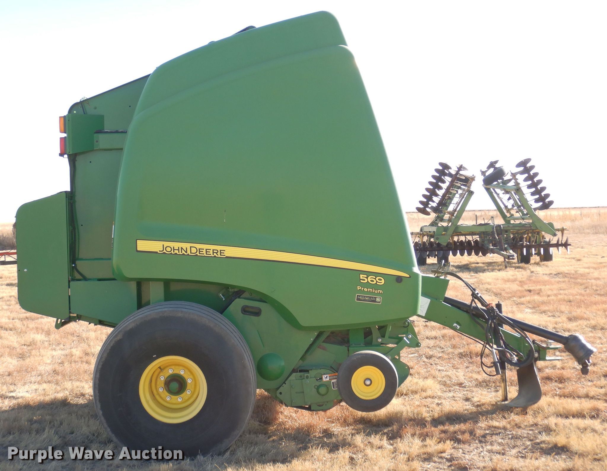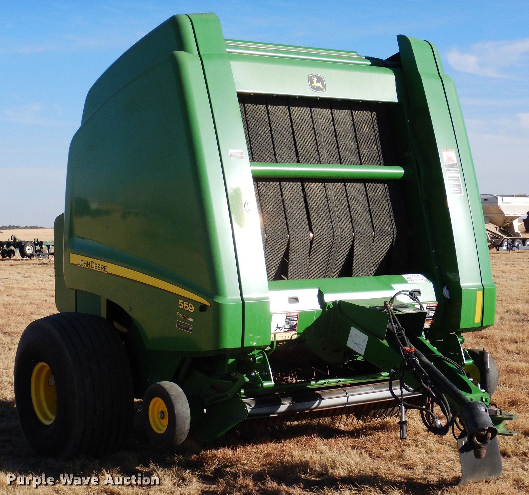 Purple Wave is selling a used Round Baler in Colorado. This item is a 2014 John Deere 569 Premium round baler with the following: Serial: 1E00569DAEE400154
