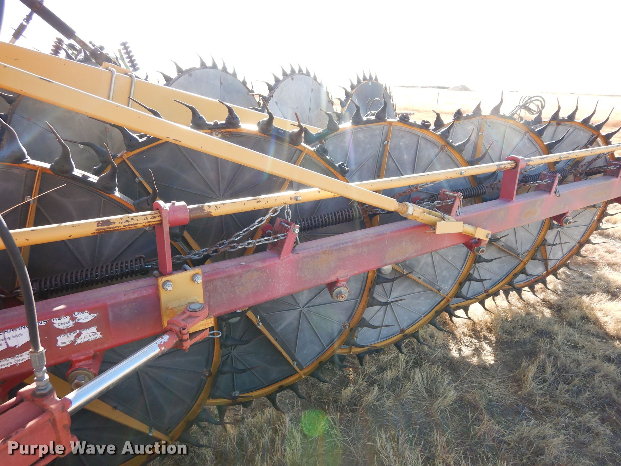 Purple Wave is selling a used Hay Rake in Colorado. This item is a Darf 917FD hay rake with the following: Width: 48', Wheels: 17, Diameter: 48", Hydraulic lift, Hydraulic fold
