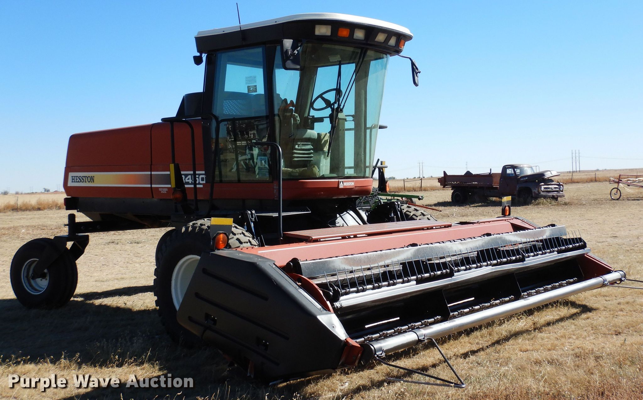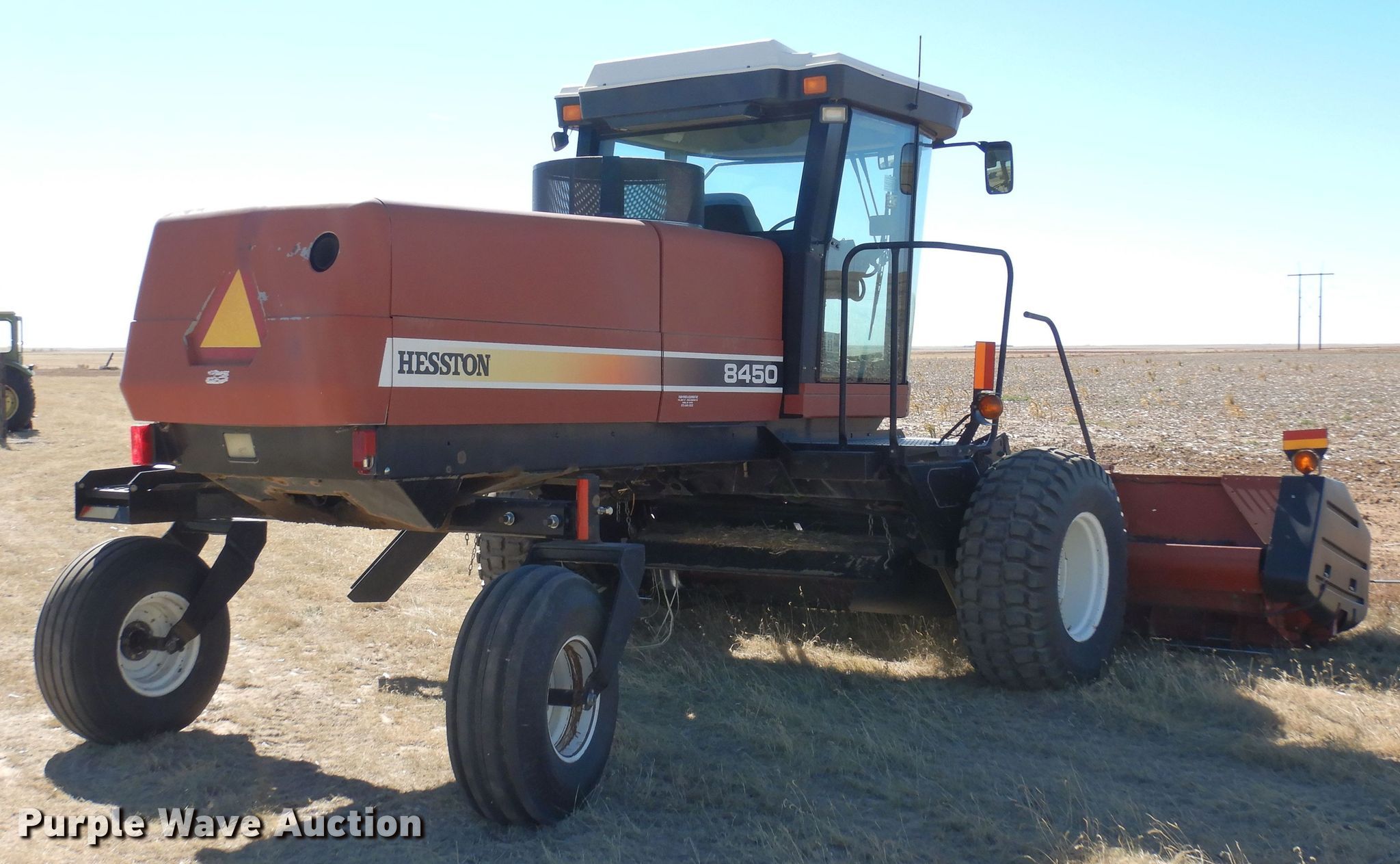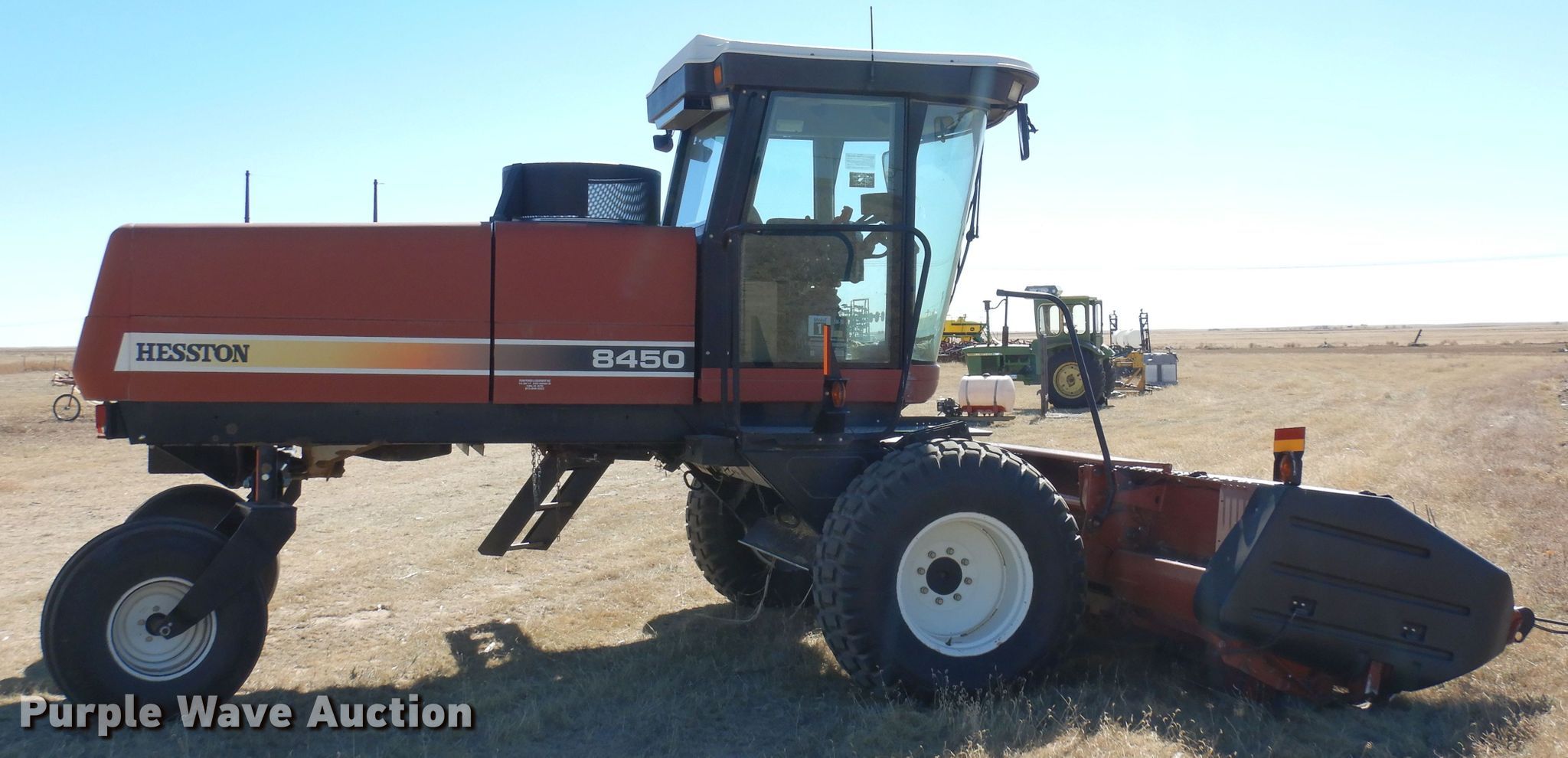Purple Wave is selling a used Windrower Self Propelled in Colorado. This item is a 2002 Hesston 8450 windrower with the following: Engine hours: 4,206 on meter, Serial: HL92209