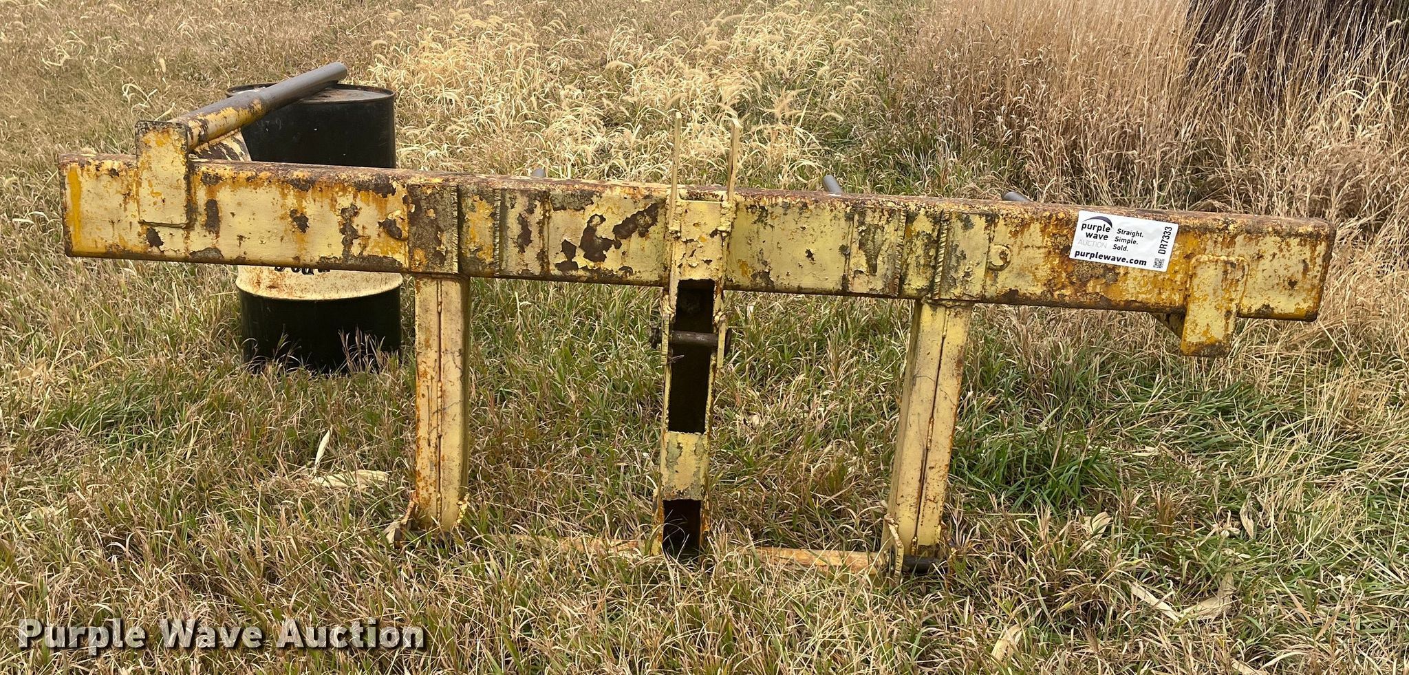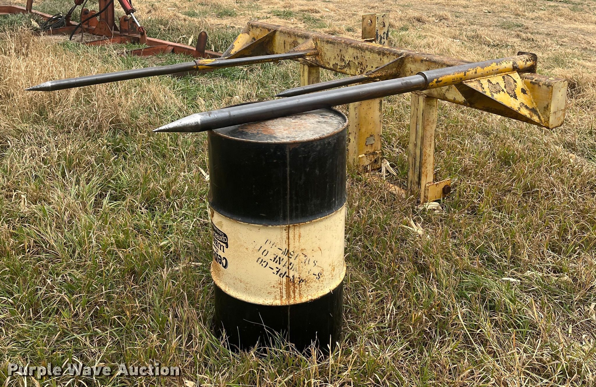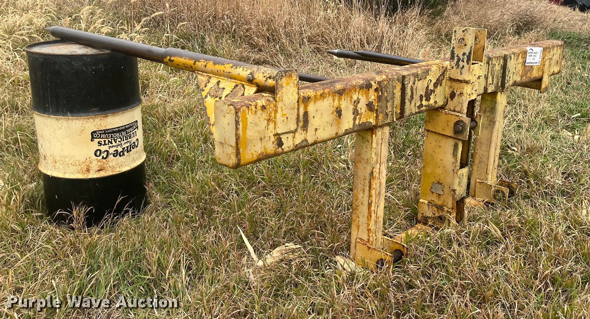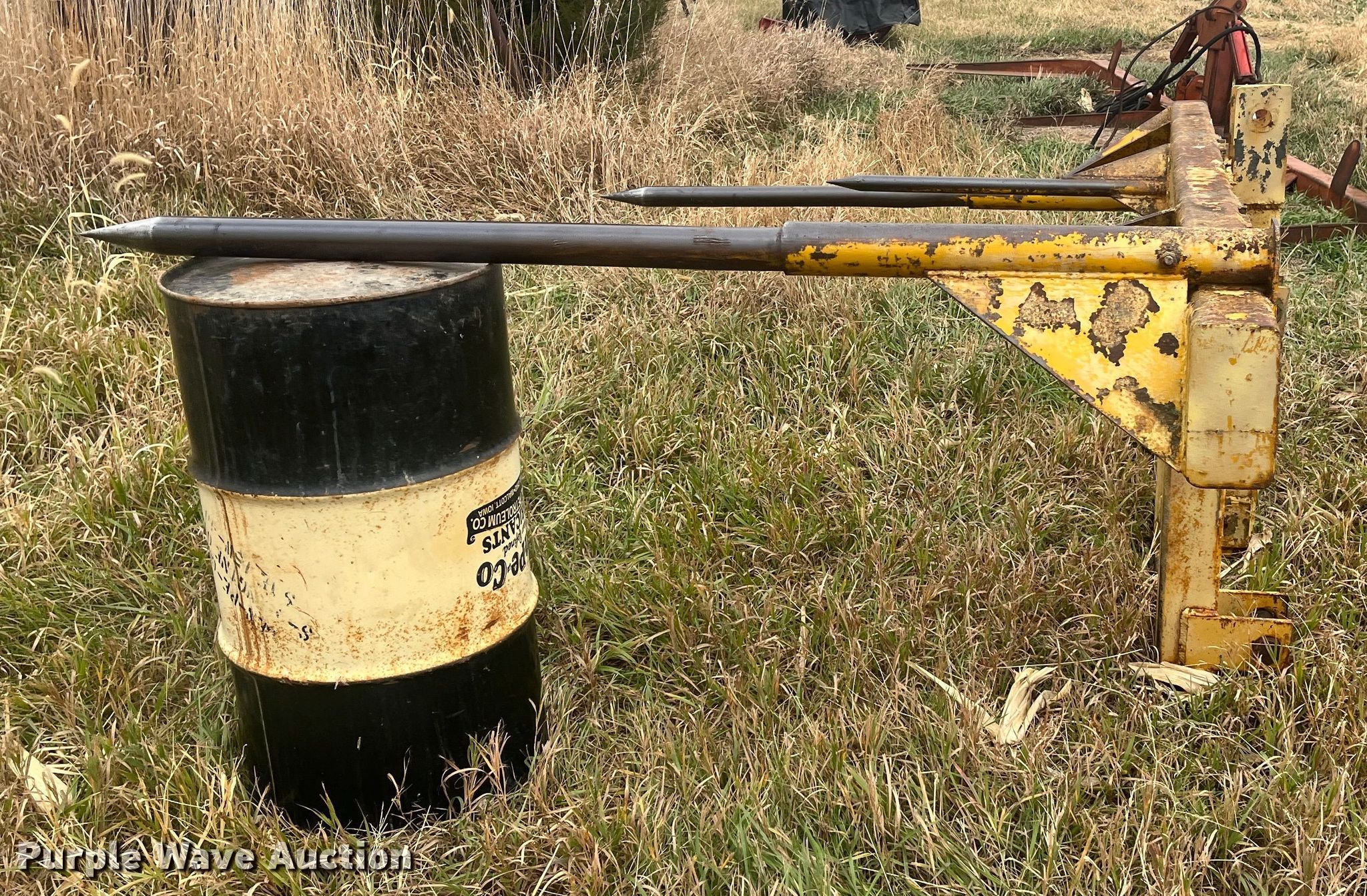 Purple Wave is selling a used Hay Handling in Kansas. This item is a Vermeer bale spear with the following: Dimensions: 8' 5" L x 5' 9" W, Bale capacity: 2, Hitch: Three point