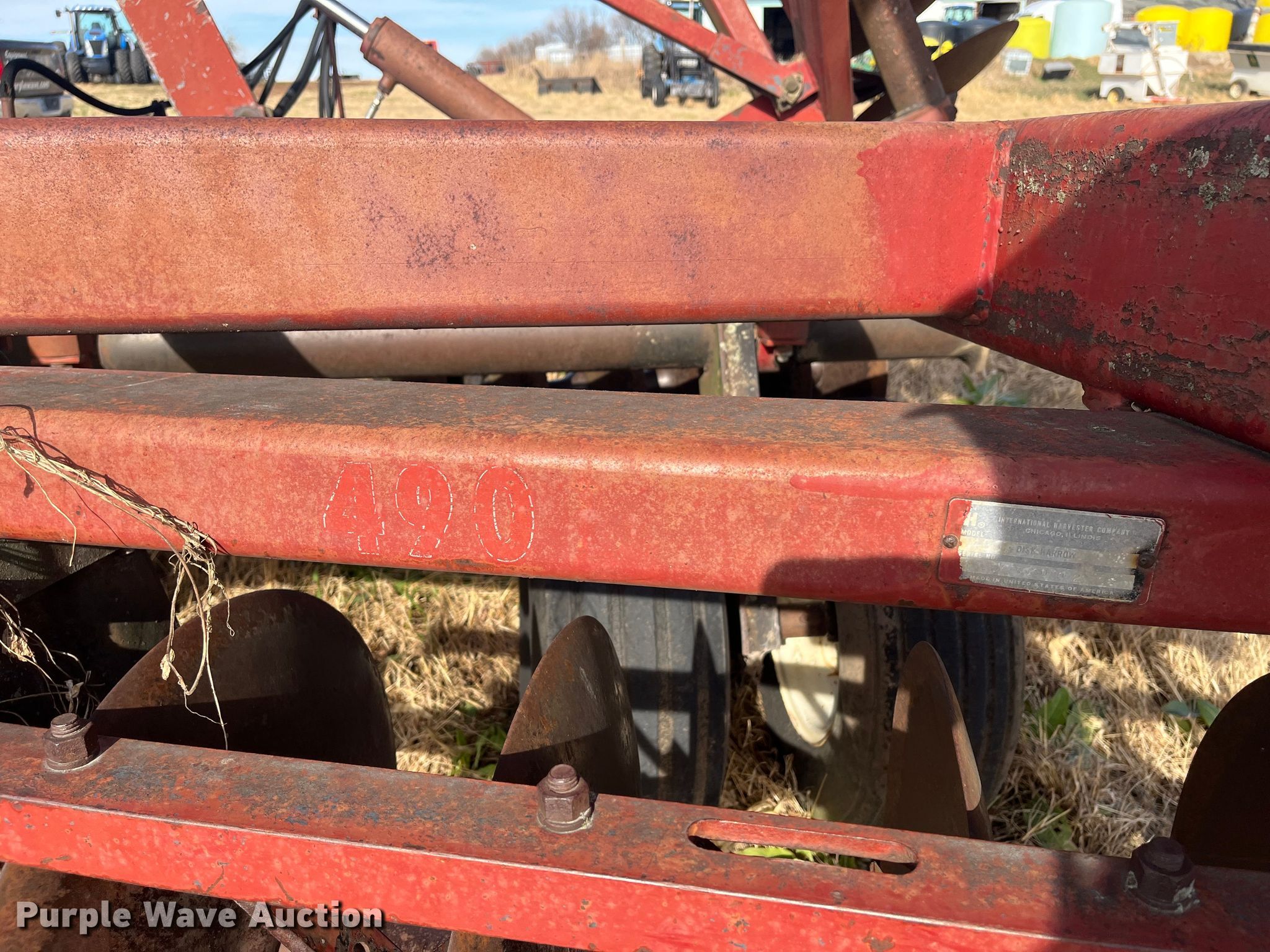 Purple Wave is selling a used Disk in Kansas. This item is a International 490 double off-set disk with the following: Overall width: 28', Serial: 0470000U002289