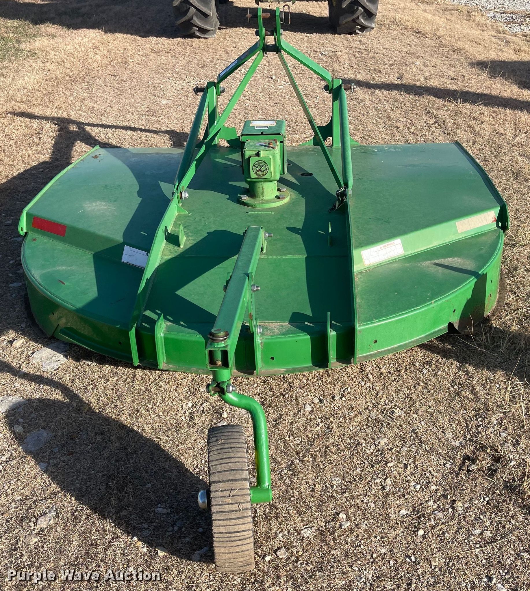 John Deere MX7 rotary mower. Serial: W00MX7X009095. Features Width: 7', PTO: 540, Hitch: Three point. Tires Solid. Lincoln, KS 67455