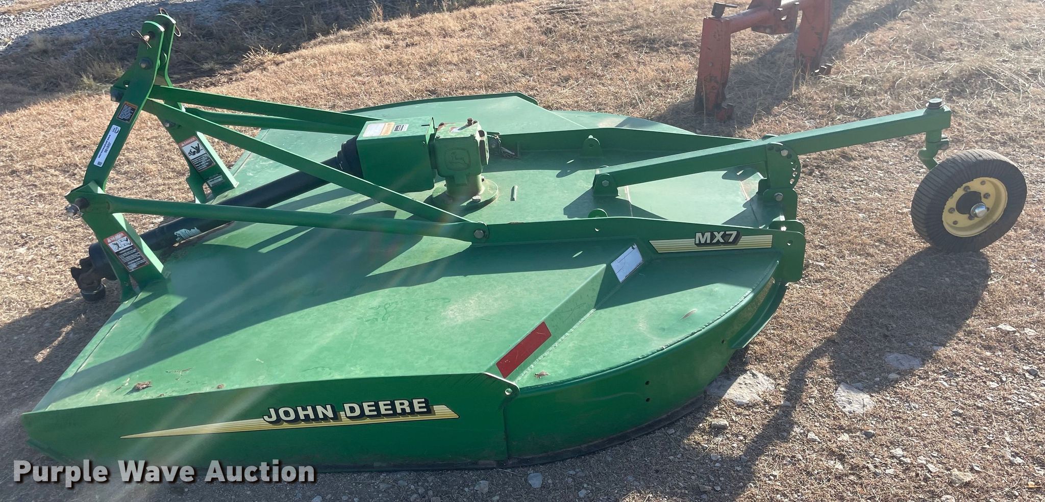 Purple Wave is selling a used Mower, Cutter, Shredder in Kansas. This item is a John Deere MX7 rotary mower with the following: Serial: W00MX7X009095