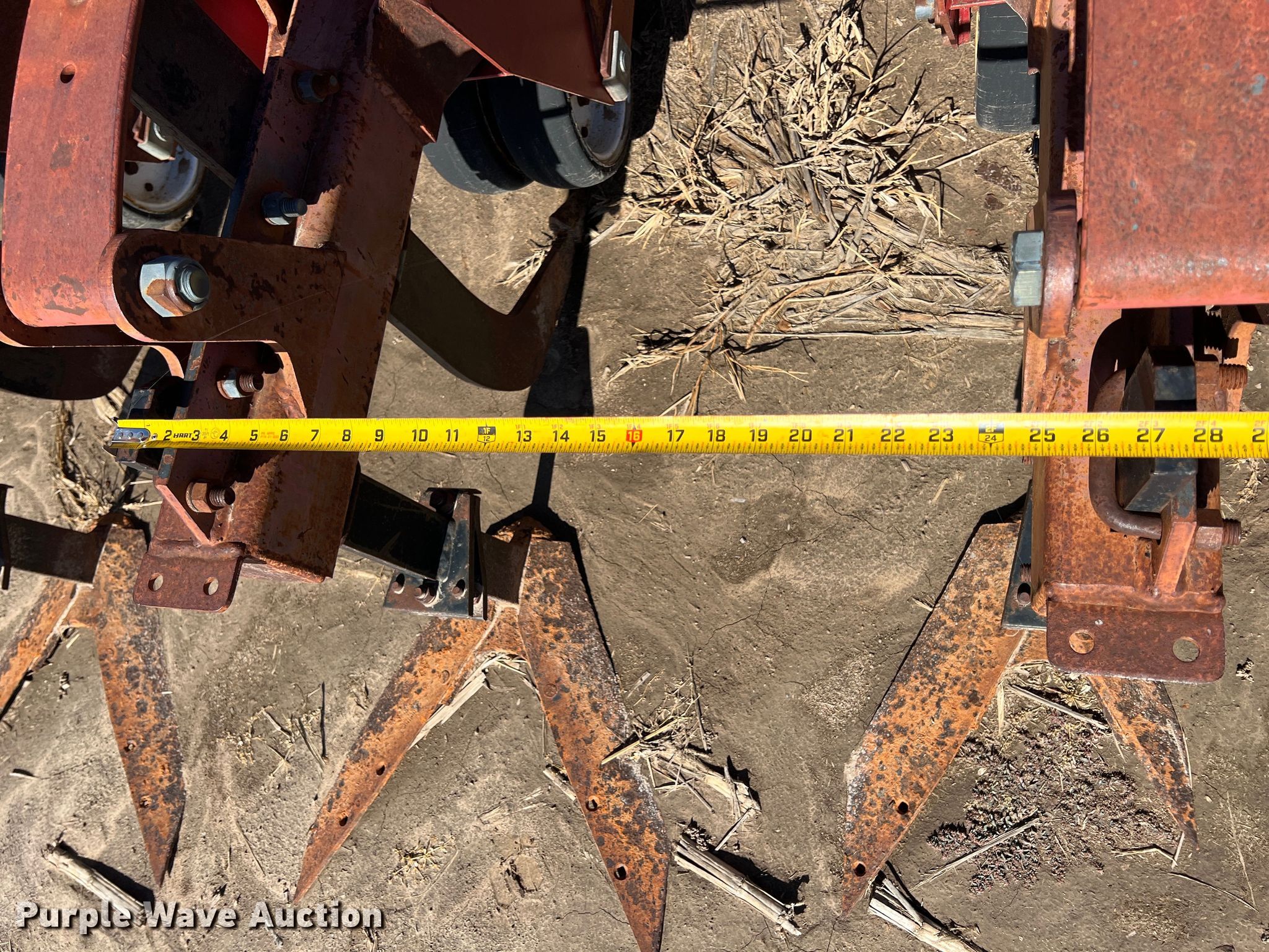 Purple Wave is selling a used Row Crop Cultivator in Oklahoma. This item is a Row crop cultivator with the following: Number of rows: 6, Row spacing: 27", Disk openers: Single, Shanks, Gauge wheels