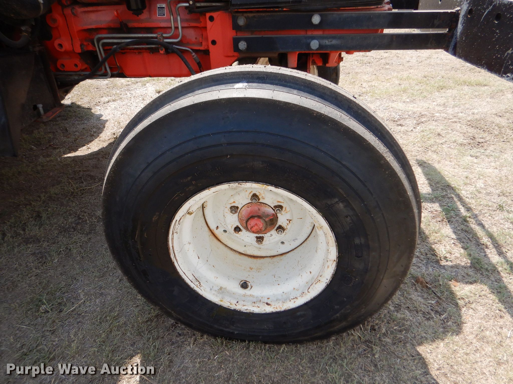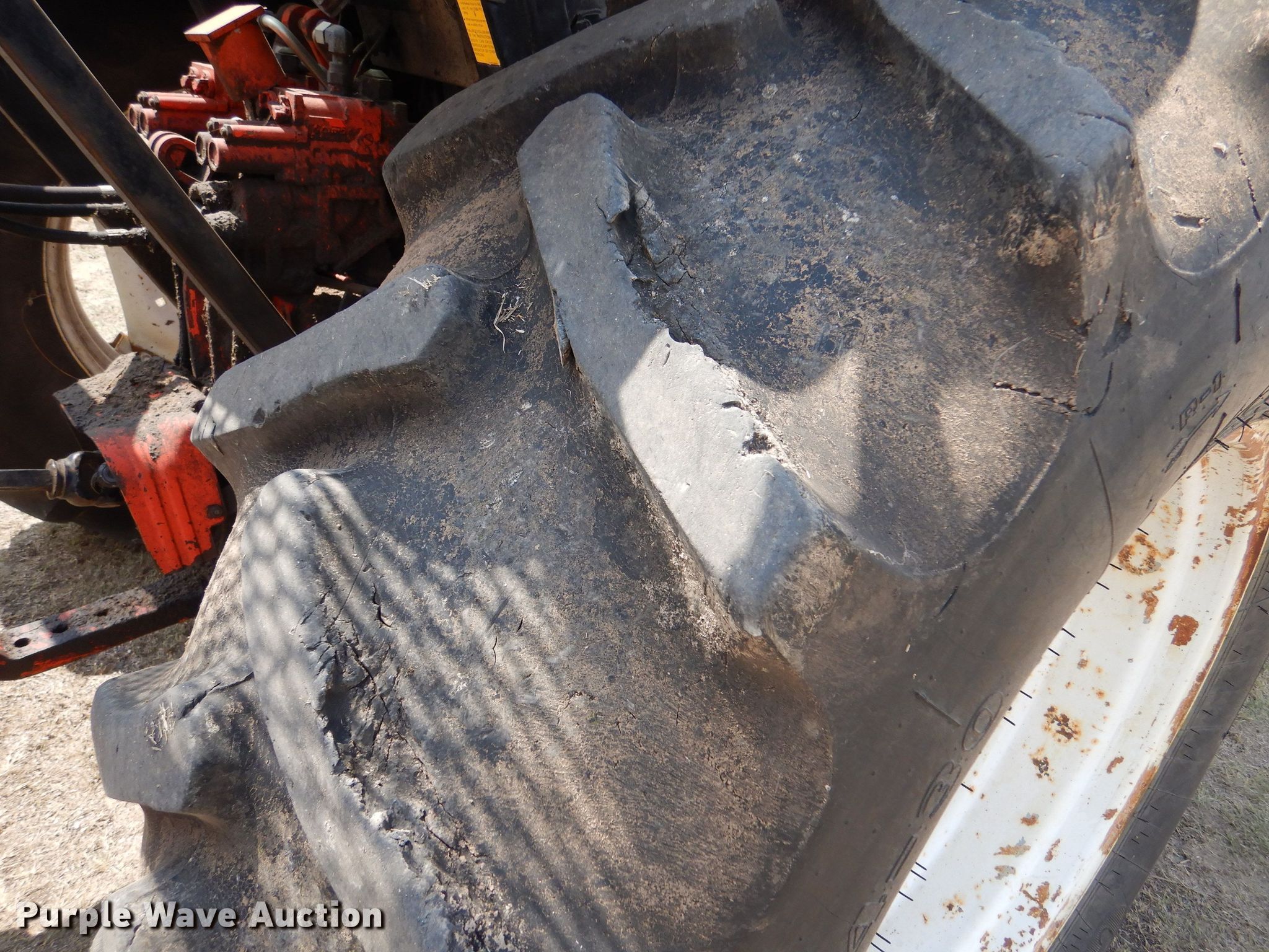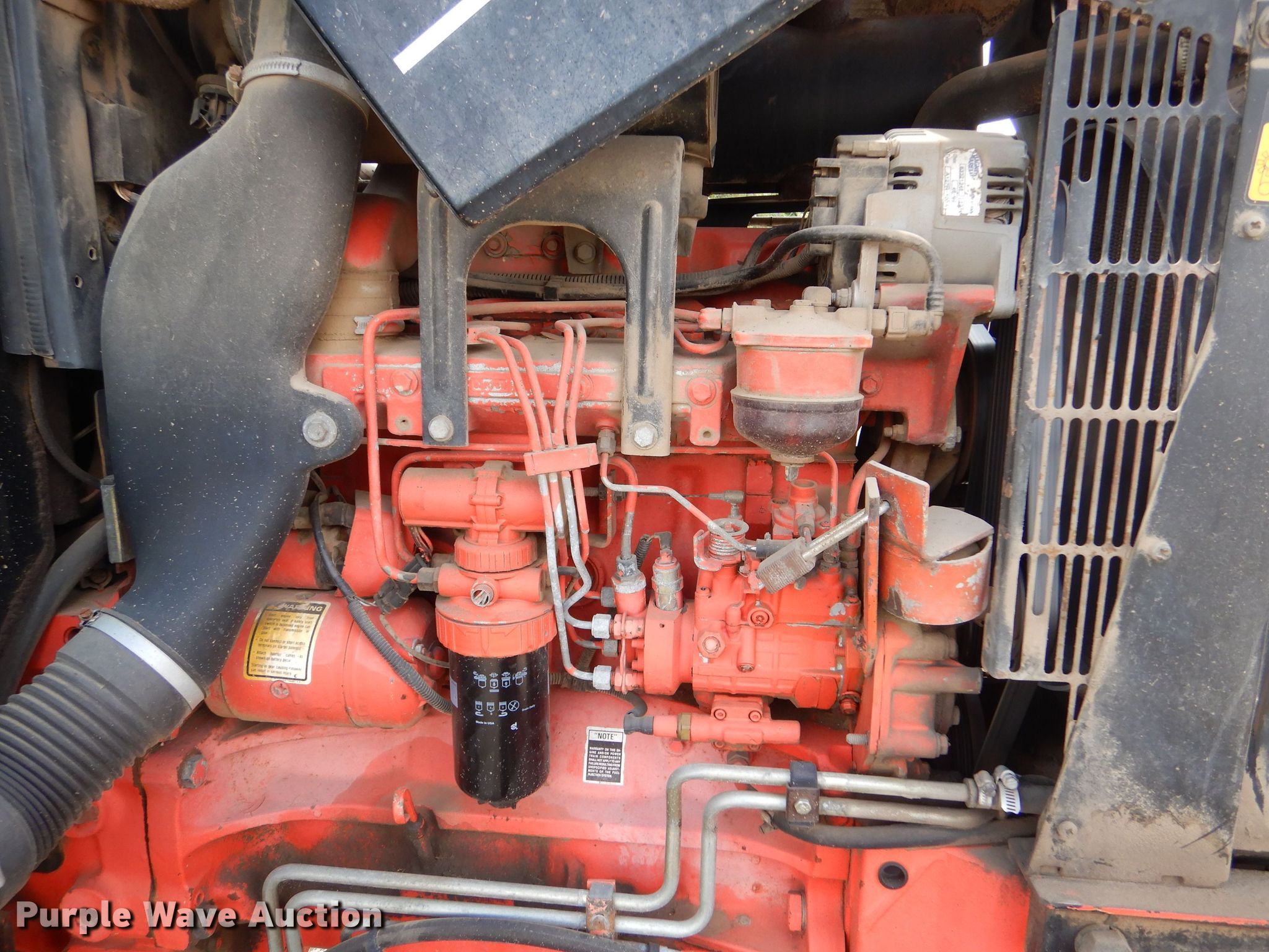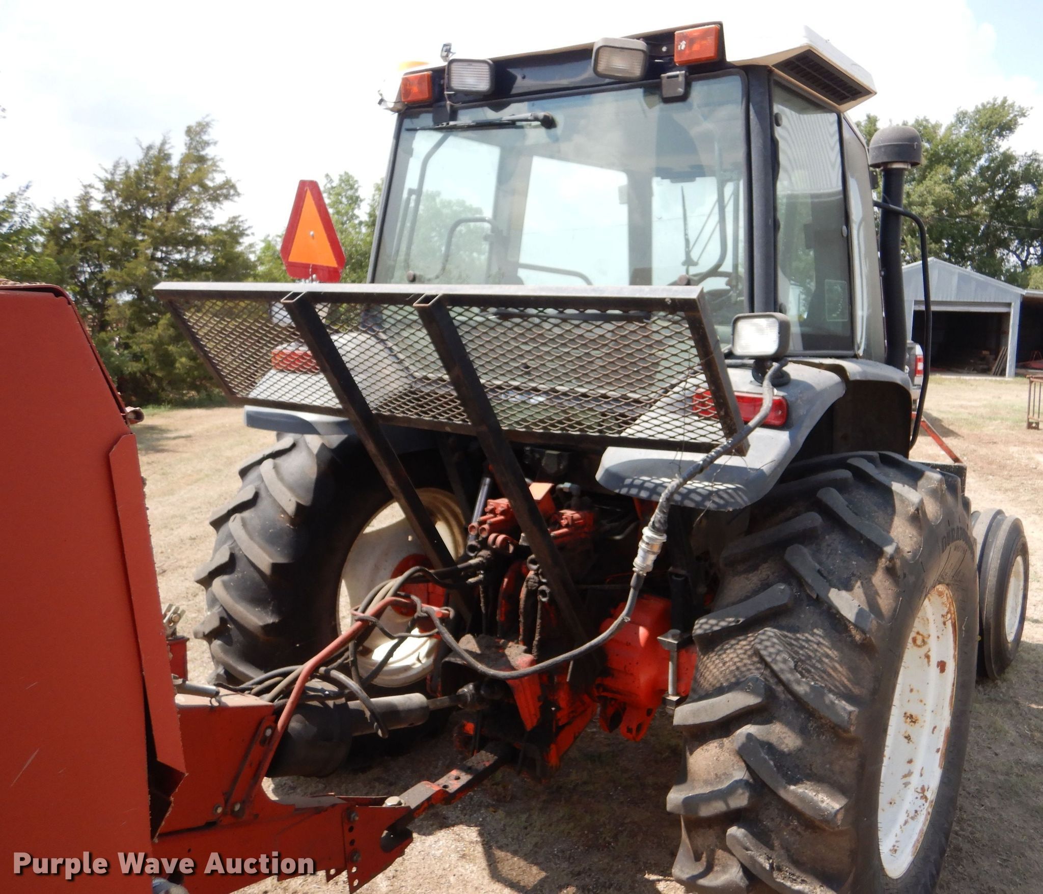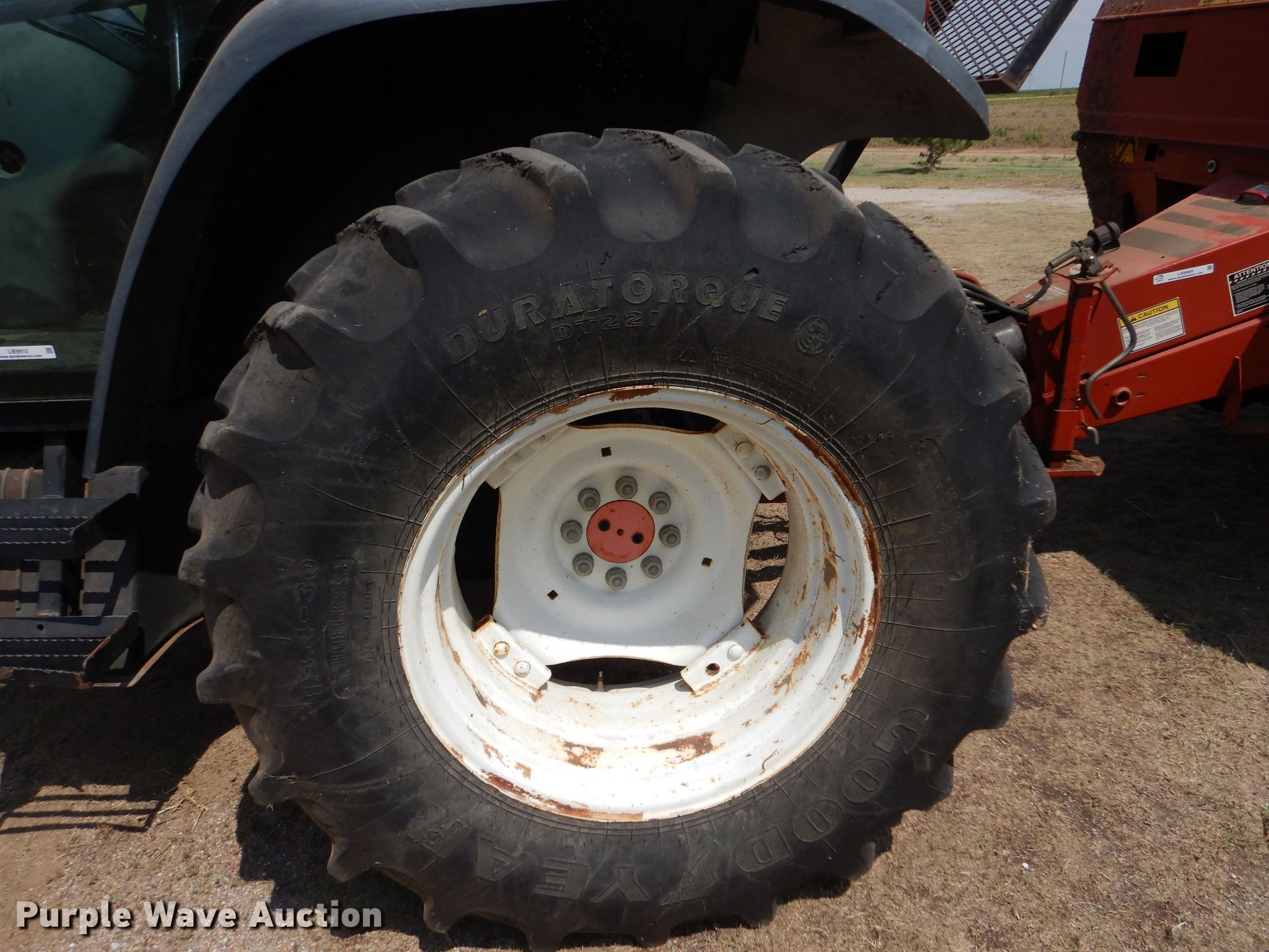 2000 New Holland TS100 tractor. Hours: 4,876 on meter, Serial: 138689B. Engine New Holland 450T, Displacement: 5.0L, Cylinders: 4, Fuel type: Diesel. Transmission Synchro, 12F - 12R, Differential lock. Operators station AC, Heat. Features PTO: 1000, Three point Top link, Seven pin outlet, Hydraulic remote sets Rear: 4. Tires Front: 10.00-16, Rear: 18.4-30. Notes Baler not included. Dodge City, KS 67801