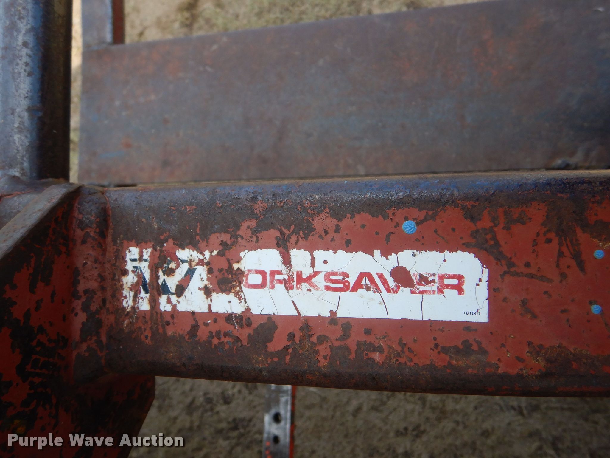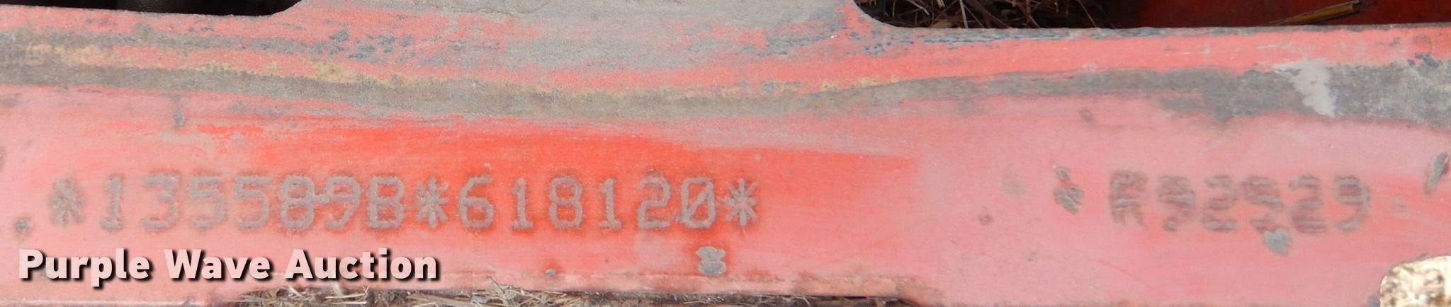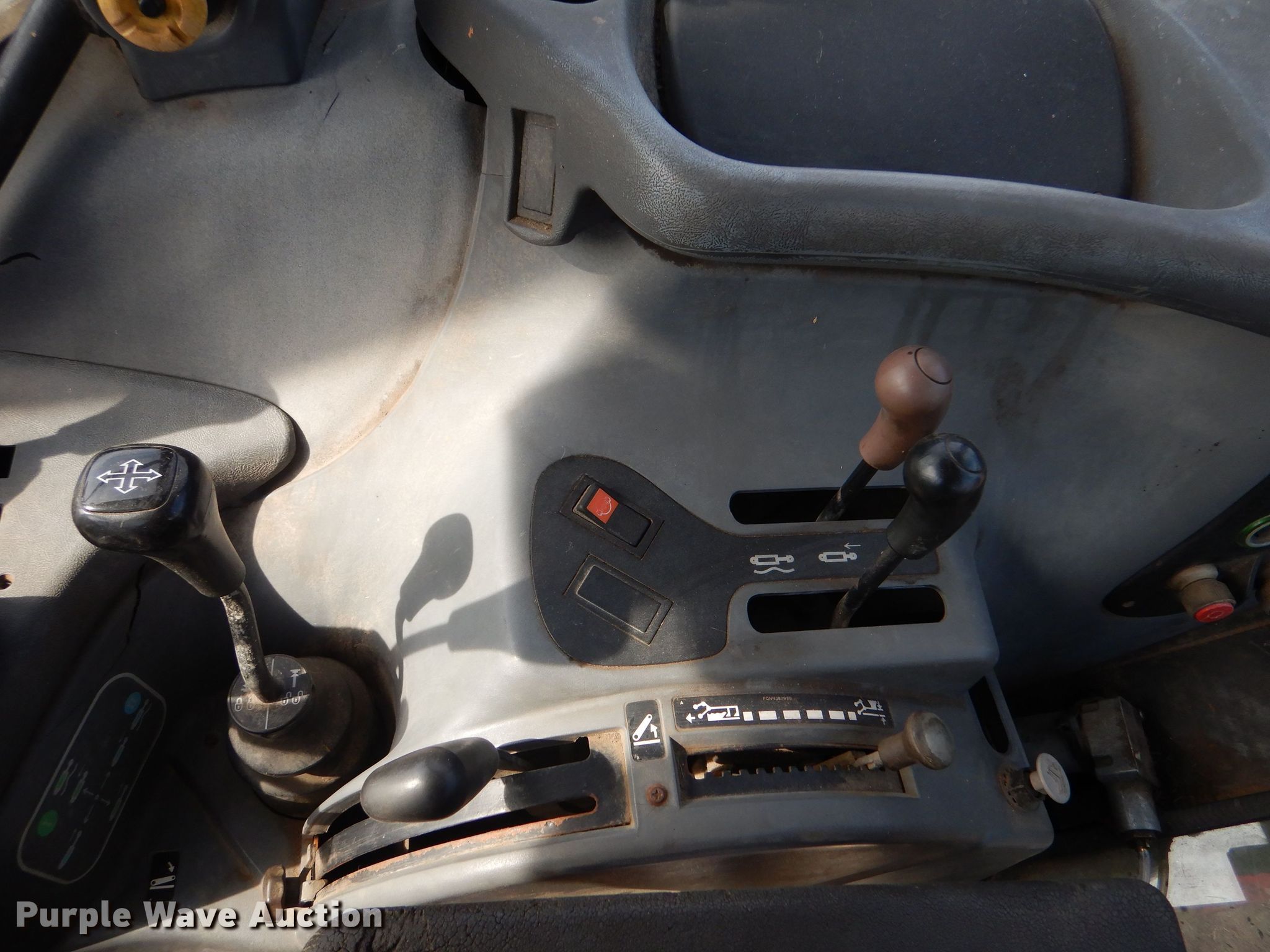 2000 New Holland TS100 tractor. Hours: 5,620 on meter, Serial: 135589B. Engine New Holland 450T, Displacement: 5.0L, Cylinders: 4, Fuel type: Diesel. Transmission Synchro, 12F - 12R, Differential lock. Operators station AC, Heat. Features PTO: 540, Three point Top link, Seven pin outlet, Hydraulic remote sets Rear: 4, Bale forks WorkSaver, Length: 52", Hitch: Three point. Tires Front: 11L-16, Rear: 18.4-30. Dodge City, KS 67801