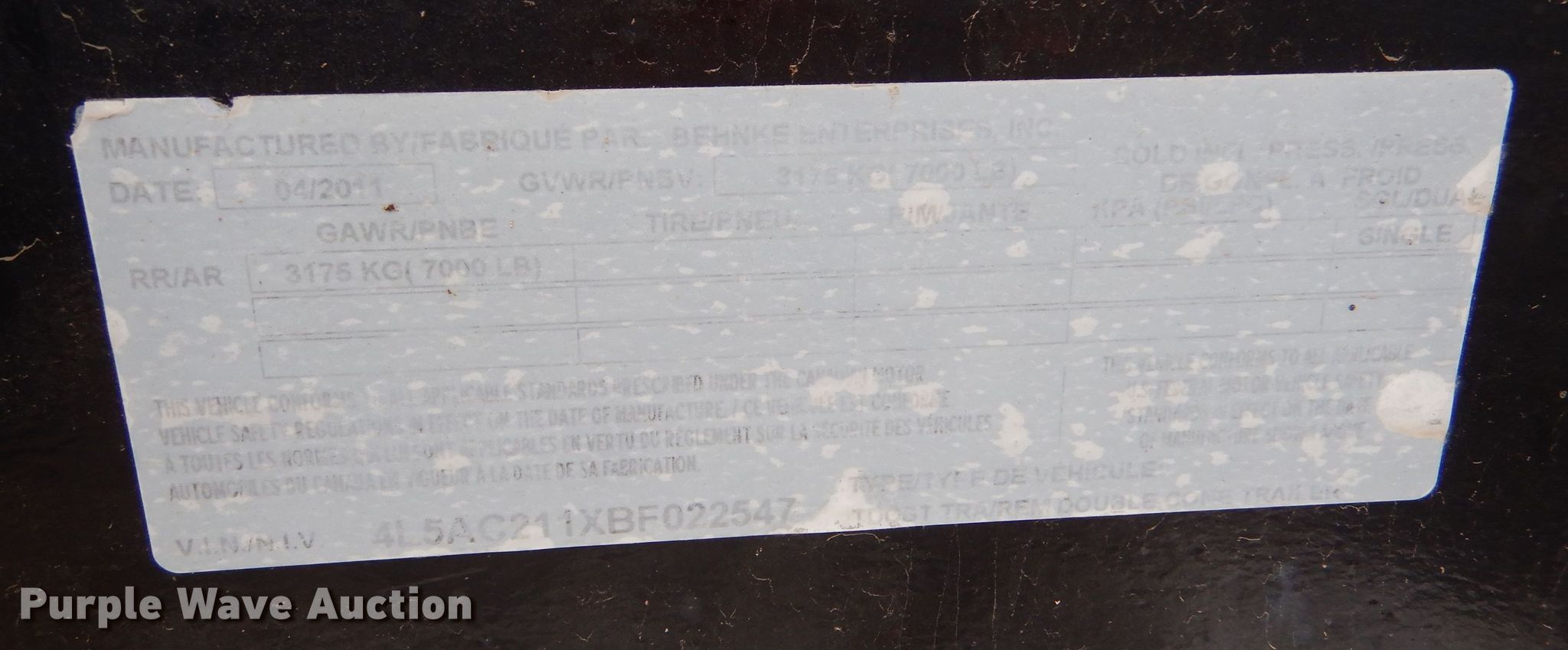 Purple Wave is selling a used Tank Trailer in Kansas. This item is a 2011 Behnke cone bottom nurse tank trailer with the following: VIN: 4L5Ac211XBF022547