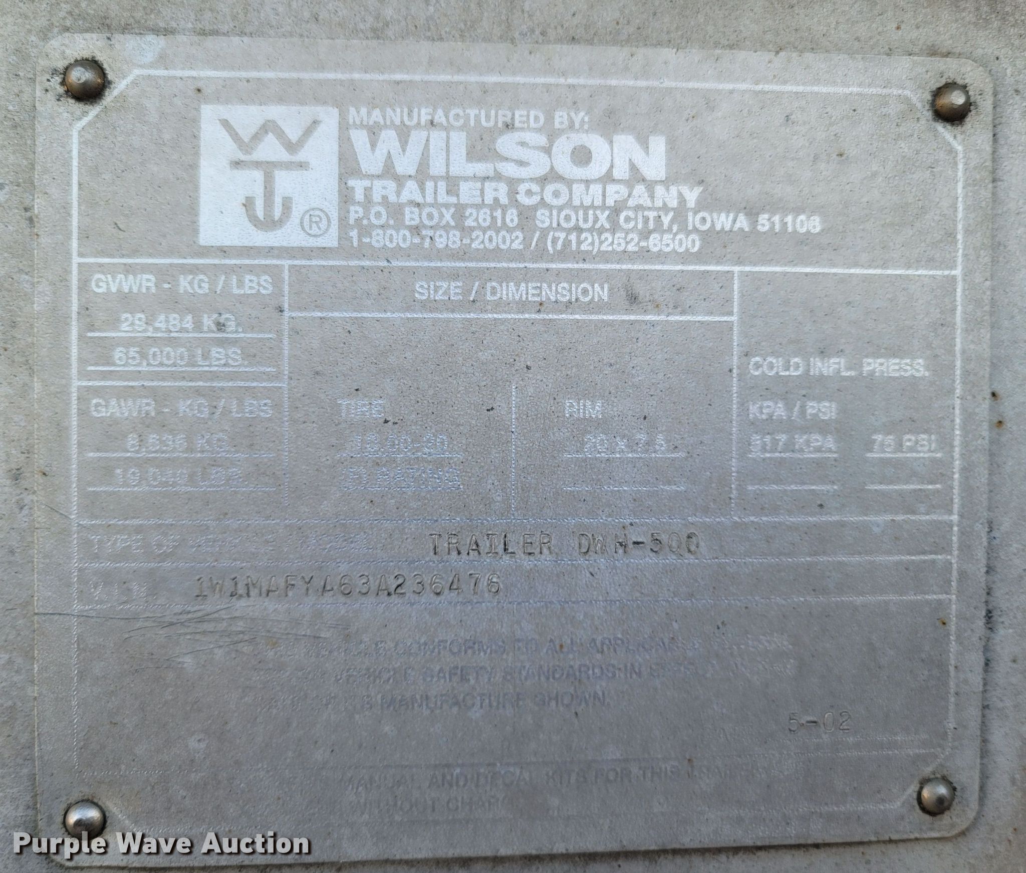 Purple Wave is selling a used Grain or Commodity Trailer in Missouri. This item is a 2003 Wilson DWH-500 grain trailer with the following: VIN: 1W1MAFYA63A236476