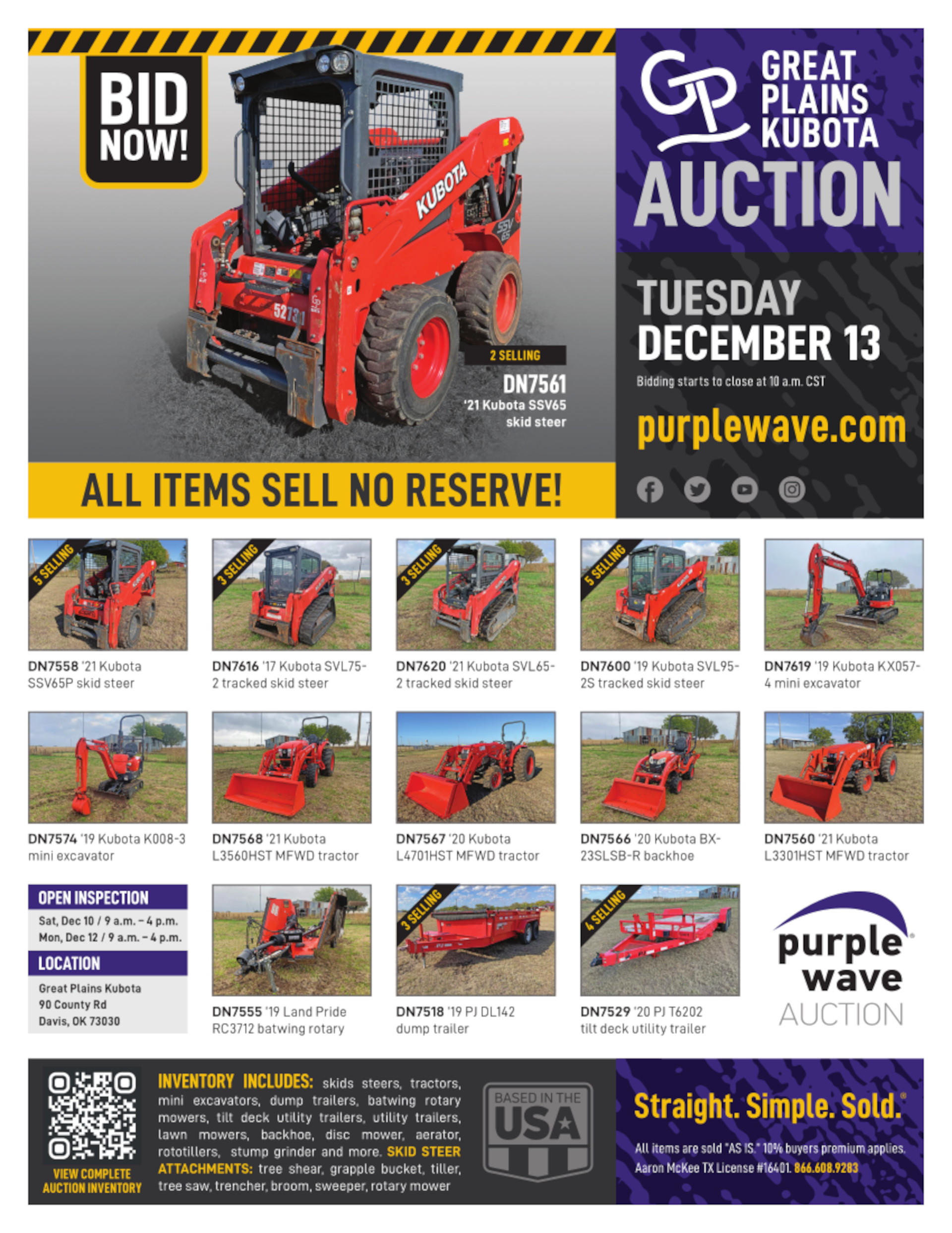 SOLD! Great Plains Kubota Auction | 12-13-2022