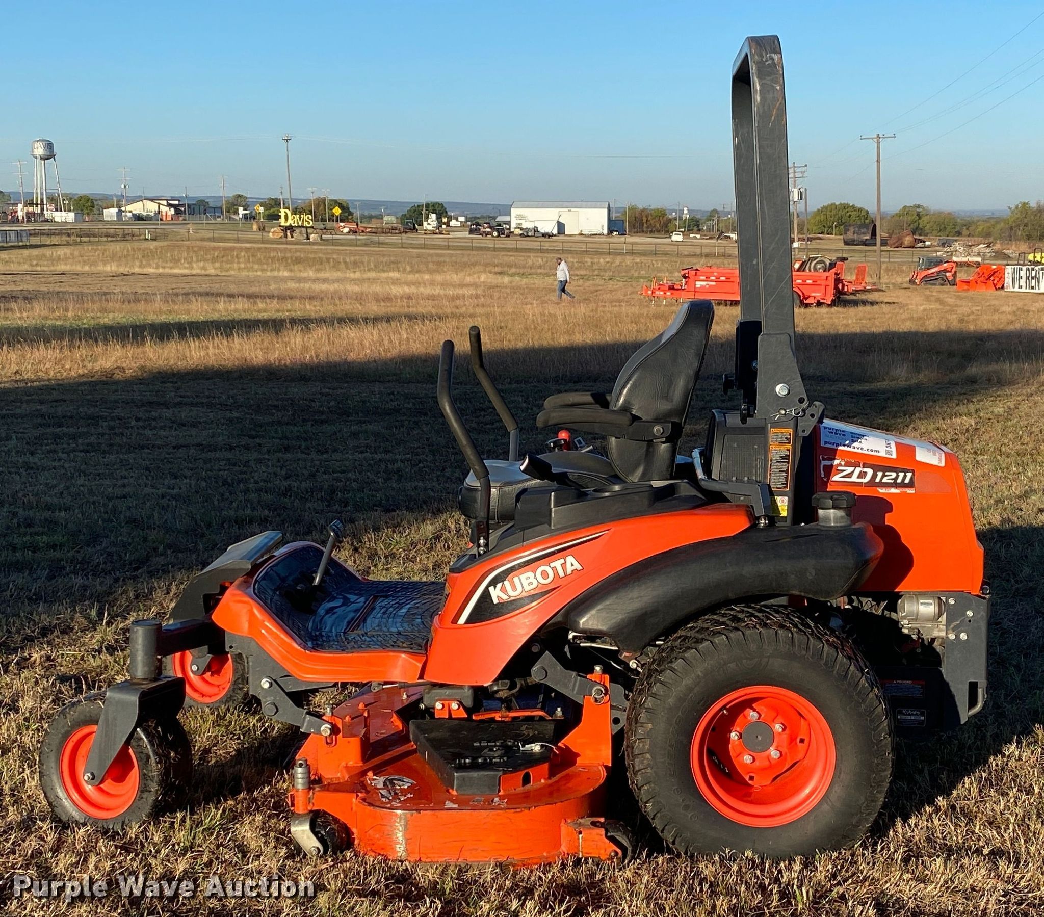 Purple Wave is selling a used Commercial Turf Mower in Oklahoma. This item is a Kubota ZD1211 ZTR lawn mower with the following: Hours: 404 on meter, Cutting width: 60", Serial: 32445