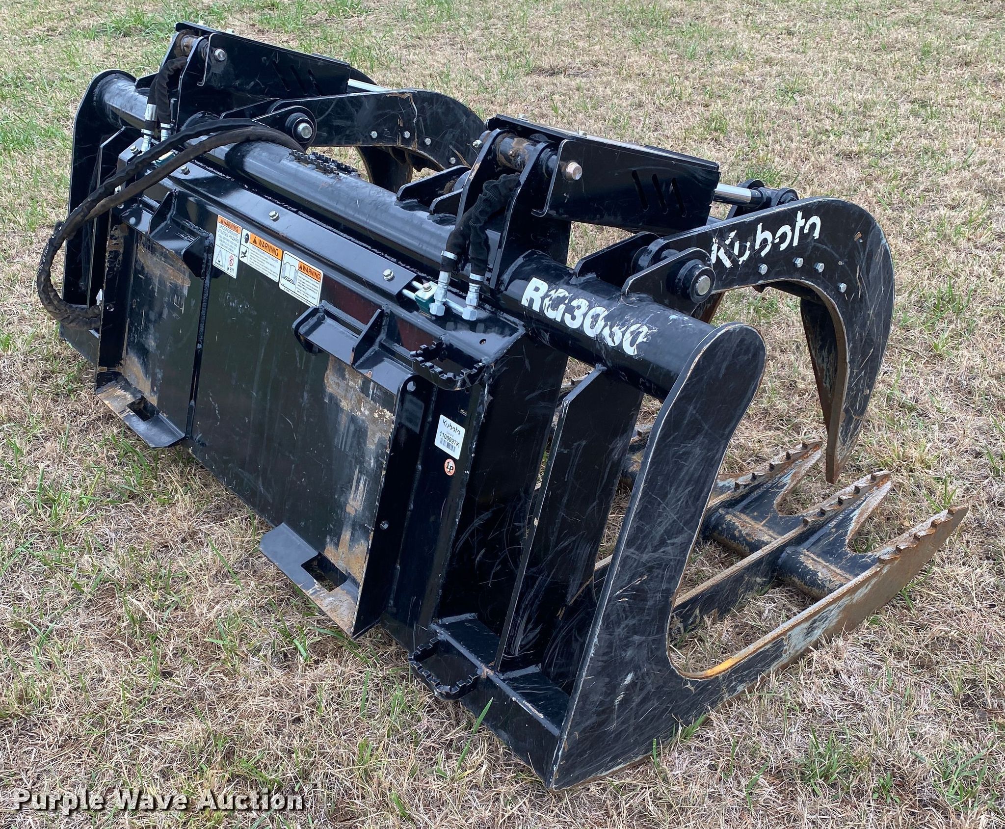 Purple Wave is selling a used Skid Steer Attach. in Oklahoma. This item is a 2021 Kubota 80"W skid steer rock grapple bucket with the following: Serial: 1100097K