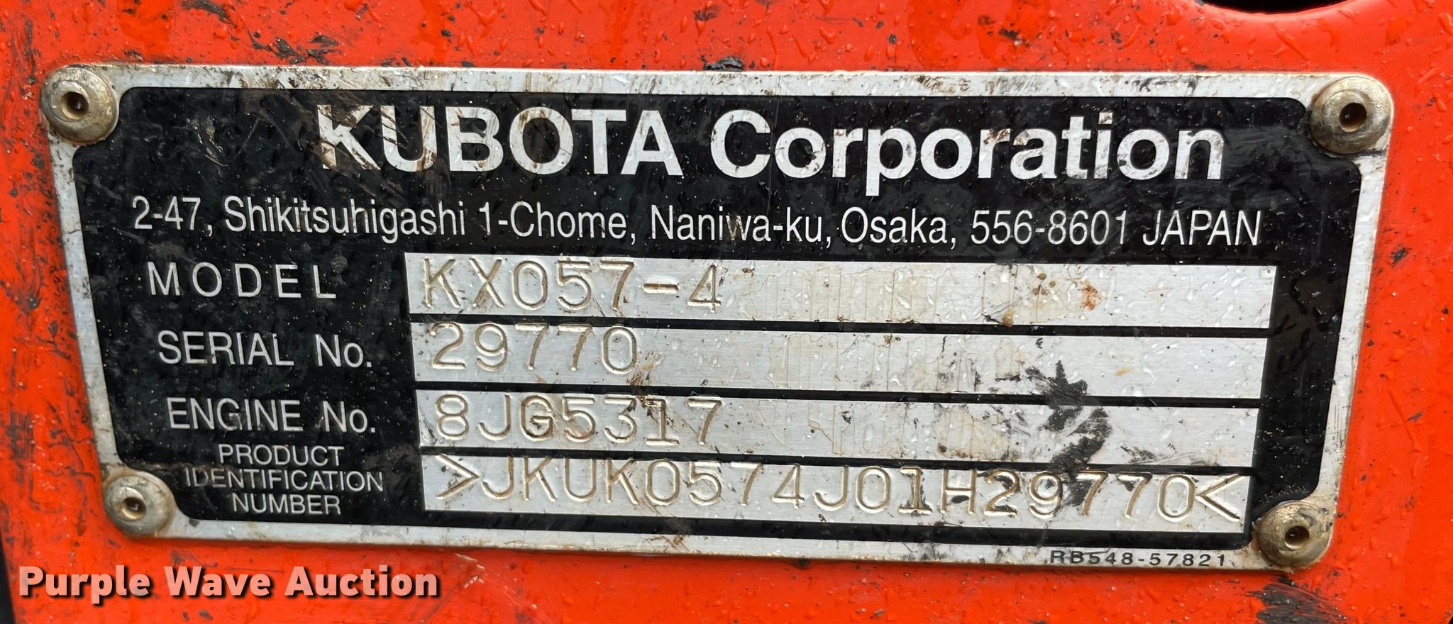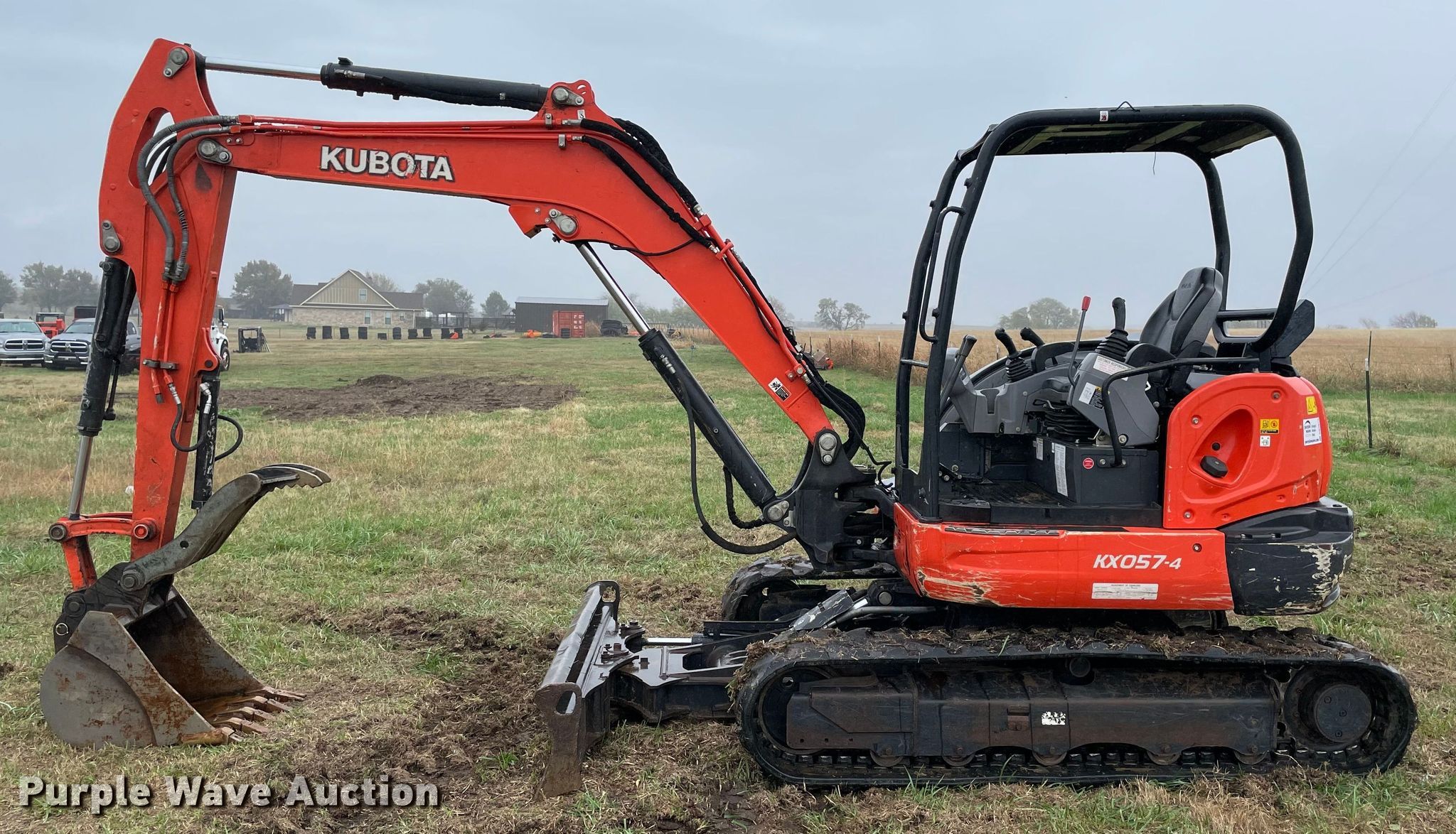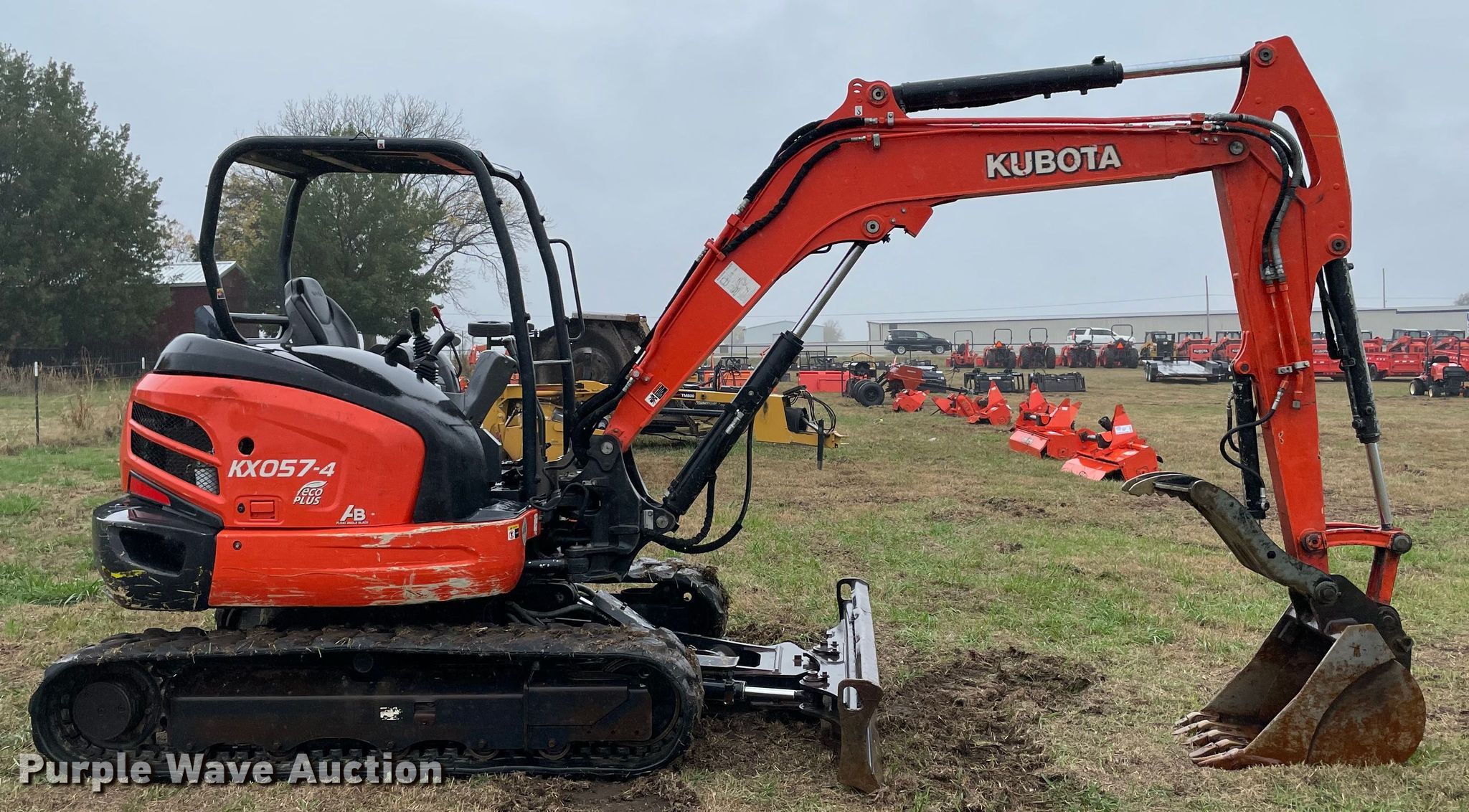 Purple Wave is selling a used Mini Excavator in Oklahoma. This item is a 2019 Kubota KX057-4 mini excavator with the following: Hours: 1,329 on meter, Serial: 29770