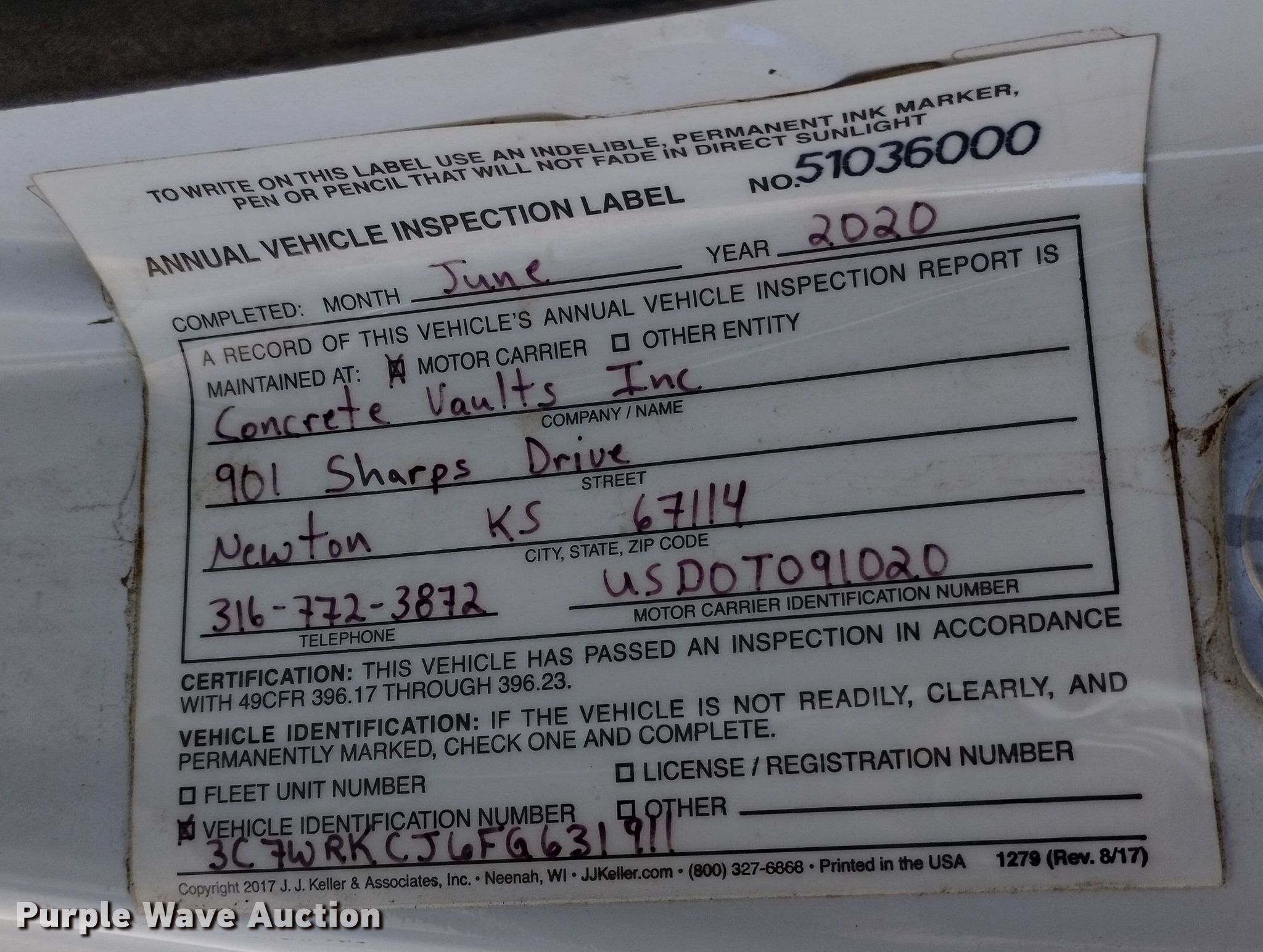 Purple Wave is selling a used Truck Chassis in Colorado. This item is a 2015 Dodge Ram 4500 truck cab and chassis with the following: Miles: 190,767 on odometer, VIN: 3C7WRKCJ6FG631911