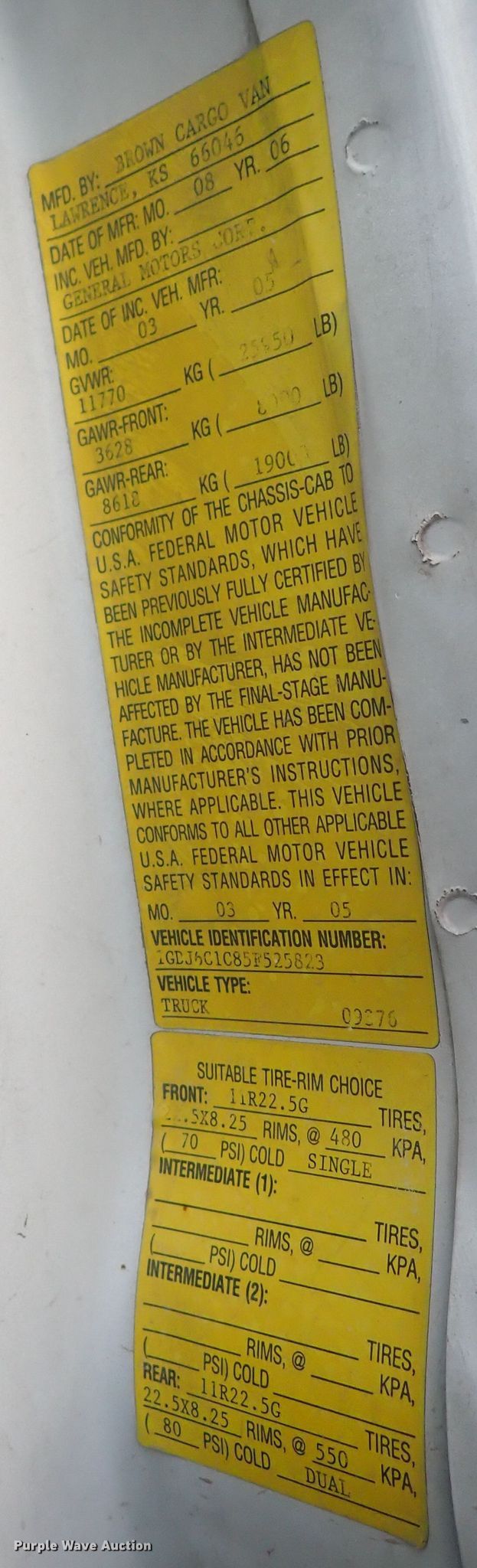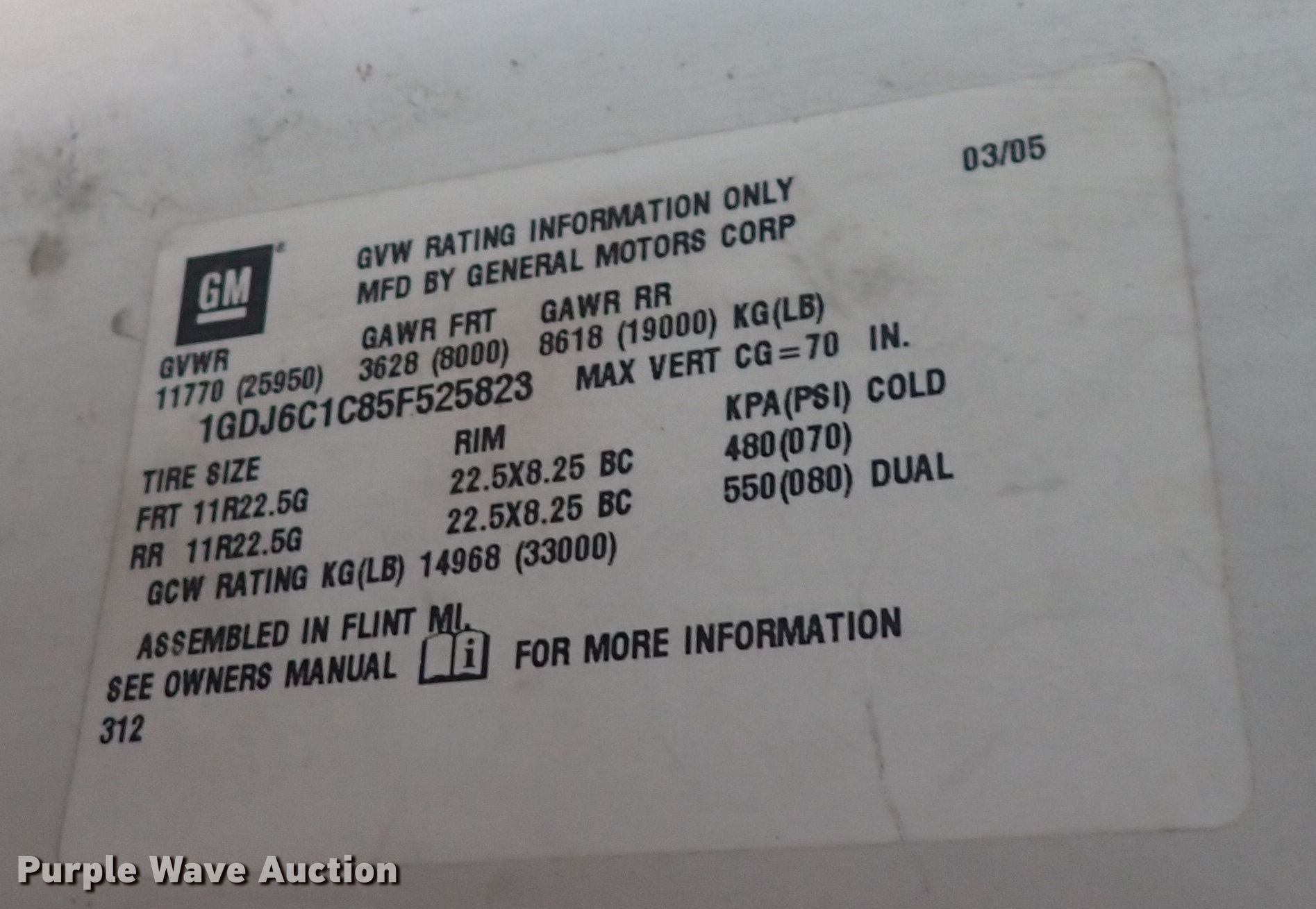 - VIN: 1GDJ6C1C85F525823