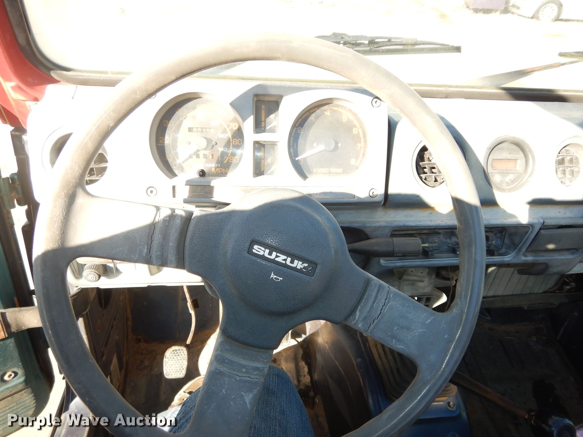 1986 Suzuki Samurai SUV. Miles: 66,536 on odometer, VIN: JS3JC51CXG4102590. Engine Displacement: 1.3L L4 SOHC, Cylinders: 4, Fuel type: Gas. Transmission Manual, Speed: 5, Four wheel drive. Interior AC, Heat. Tires Size: 235/75R15. Notes Soft top removed but included. Kansas title. Junction City, KS 66441