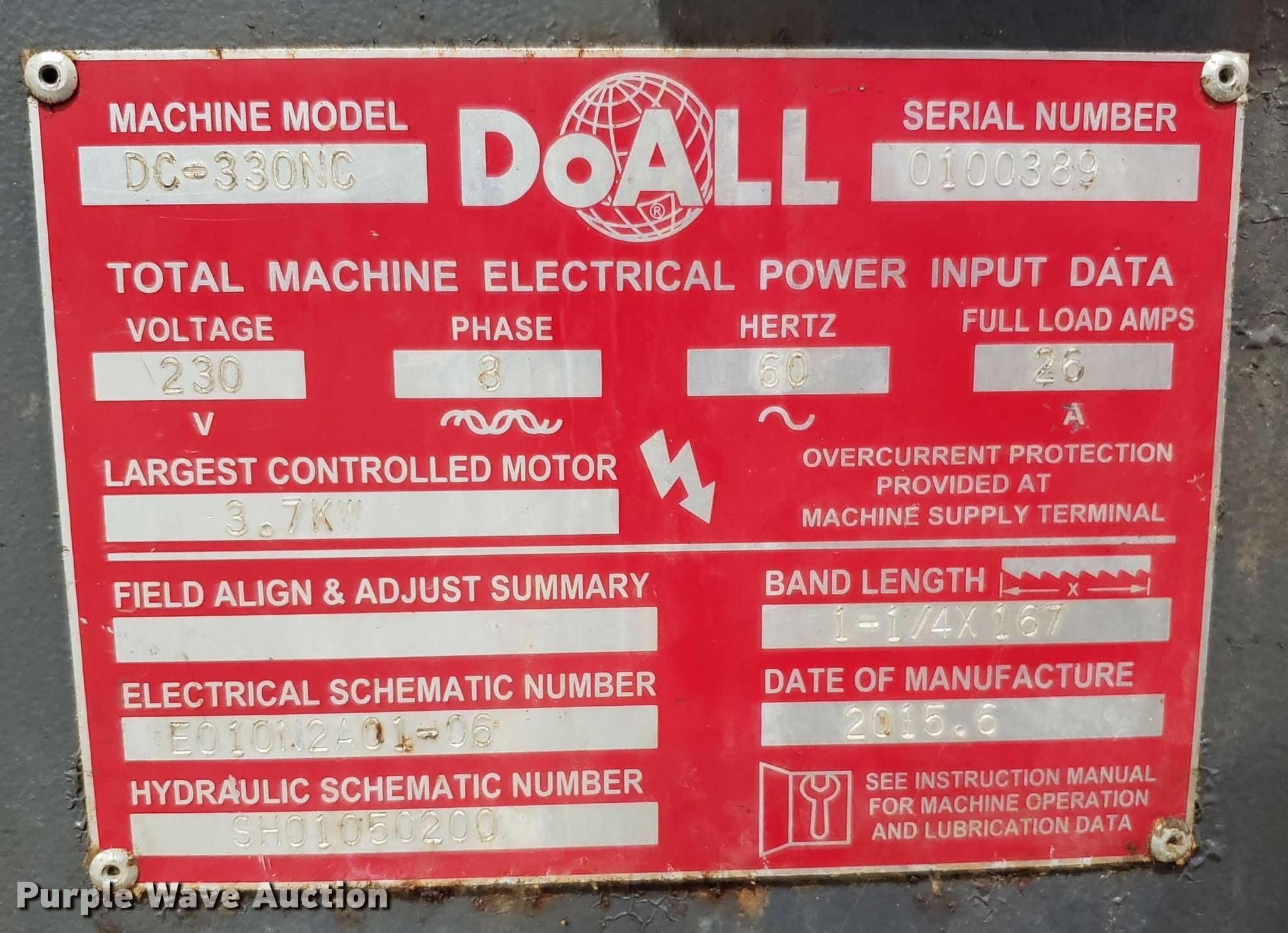 This 2015 Do All DC-330NC bandsaw will sell to the highest bidder regardless of price.
