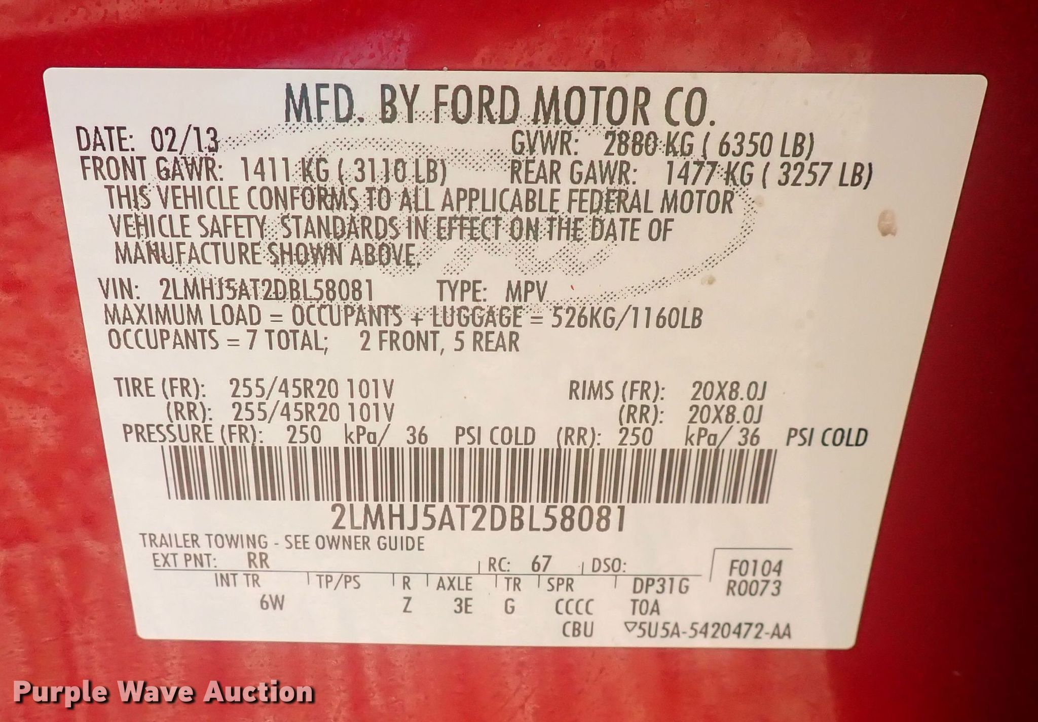 Purple Wave is selling a used Passenger Vehicle in Kansas. This item is a 2013 Lincoln MKT SUV with the following: Miles: 143,802 on odometer, VIN: 2LMHJ5AT2DBL58081