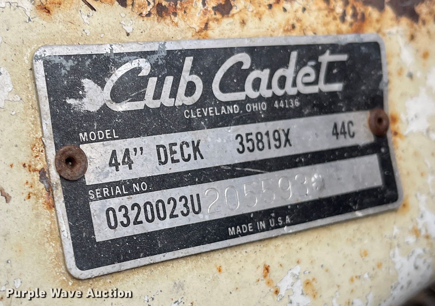 Purple Wave is selling a used Lawn Mower in Kansas. This item is a Cub Cadet 782 lawn mower with the following: Hours: 2,230 on meter, Cutting width: 44", Serial: 2050601U740502