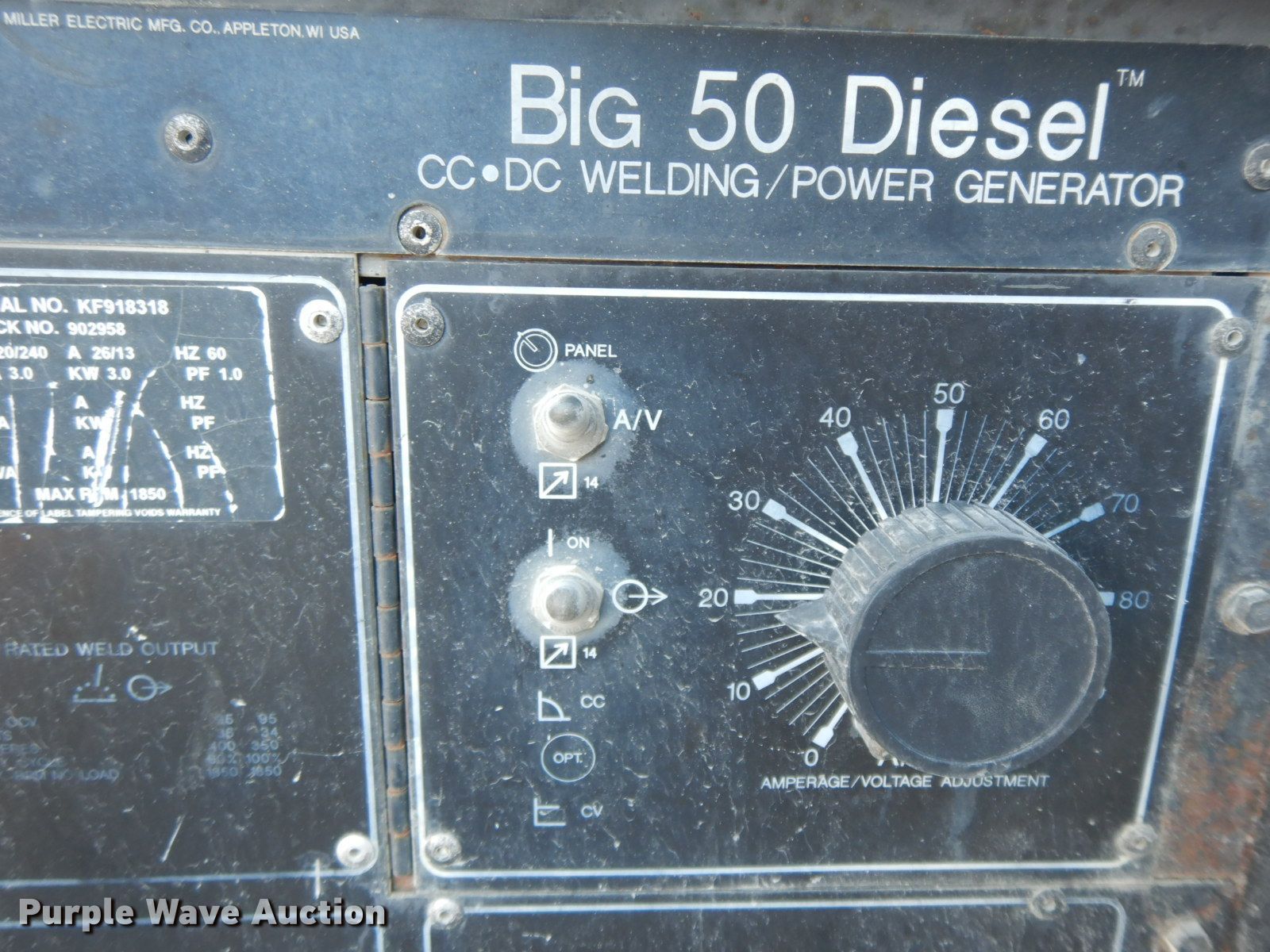 Purple Wave is selling a used Welder (Manual) in Kansas. This item is a Miller Big 50 welder with the following: Hours: 6,679 on meter, Serial: KF918318