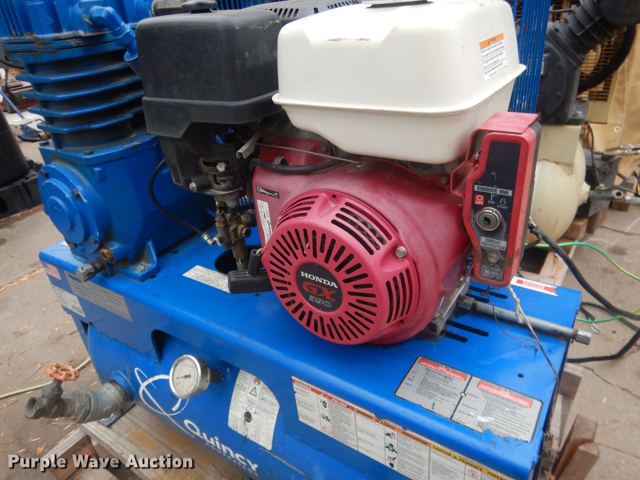 Quincy air compressor. Serial: UTZ500219. Engine Honda GX390, Fuel type: Gas. Notes No battery. 1001 North Madison Street. Lexington, NE 68850